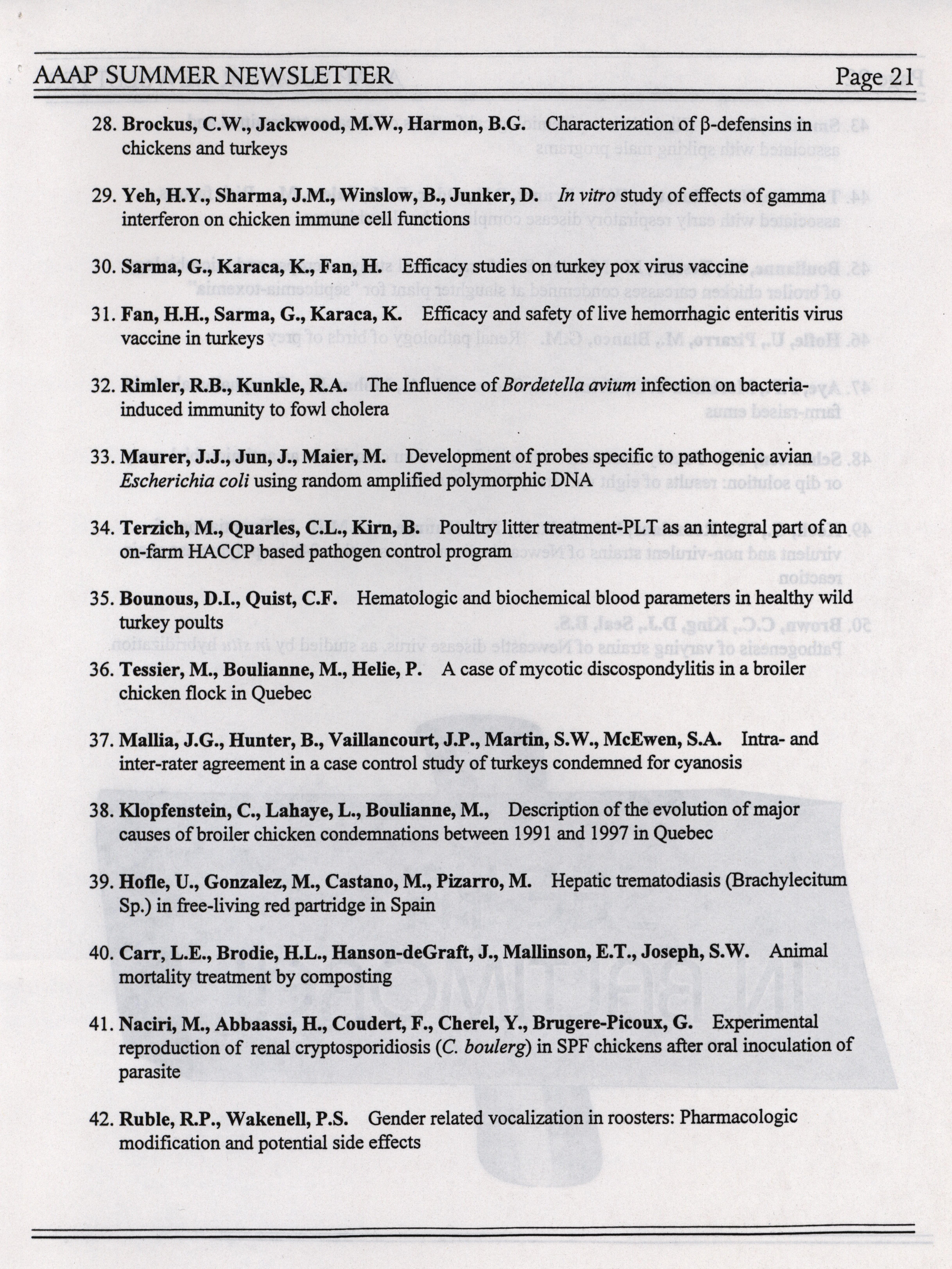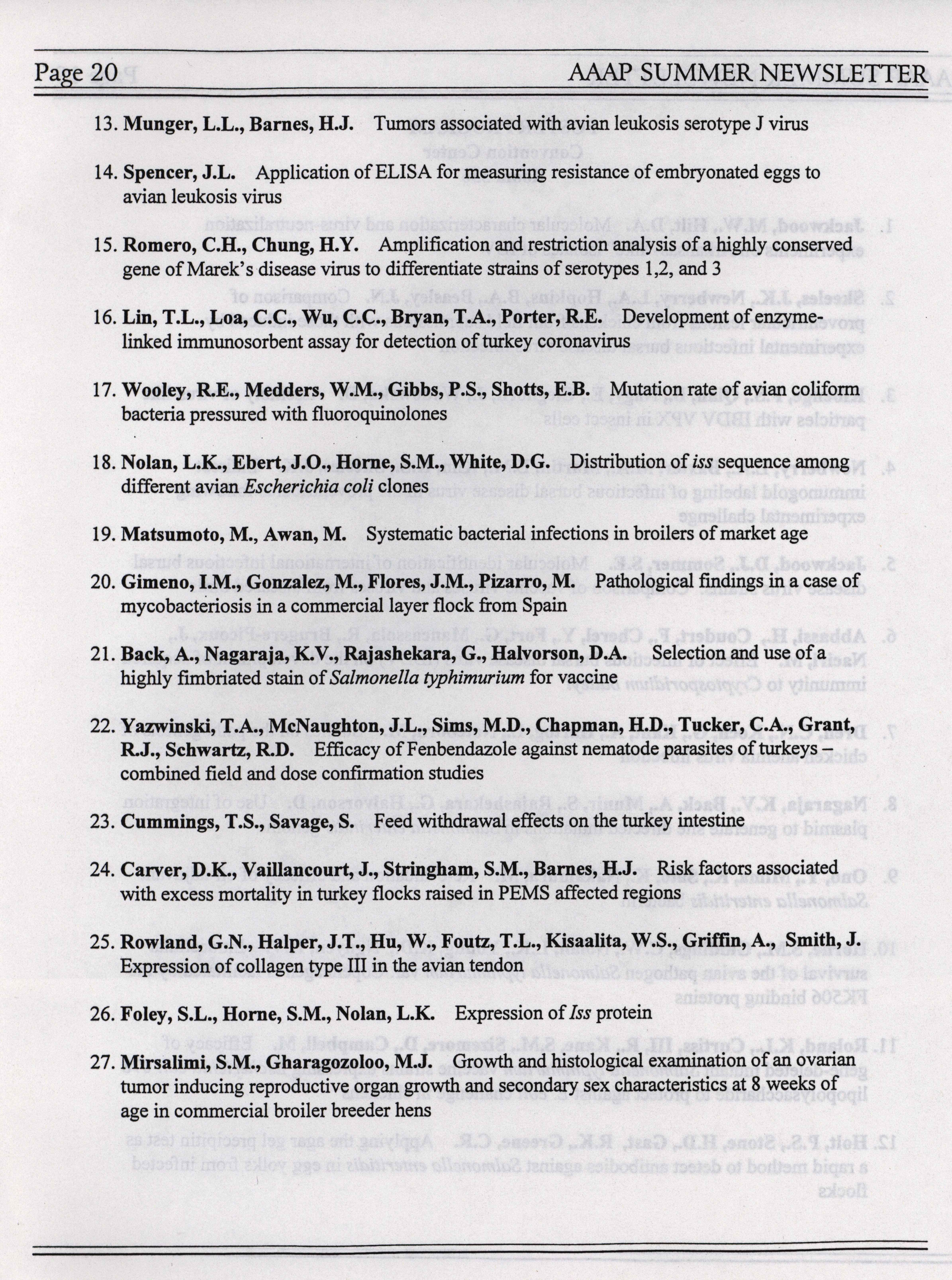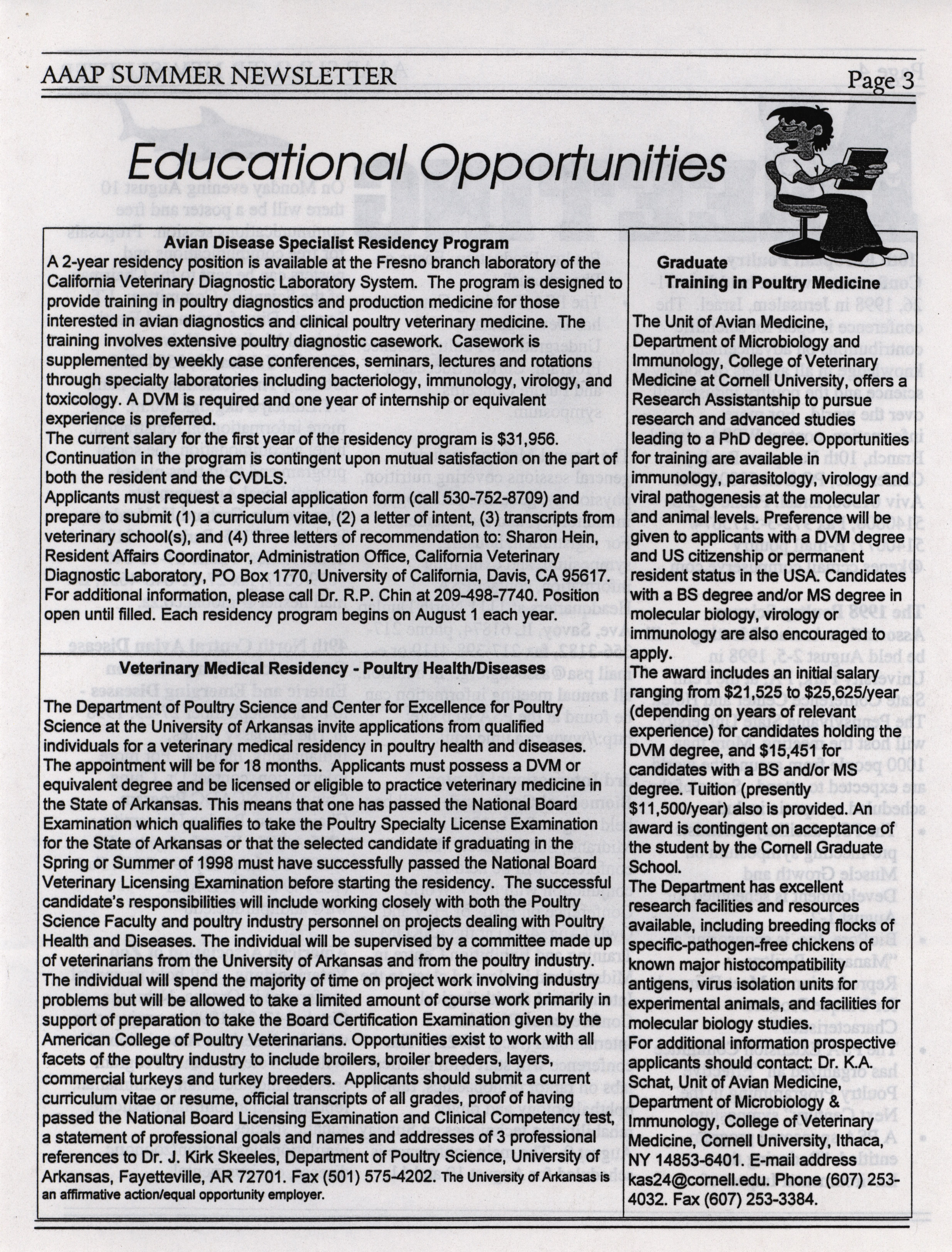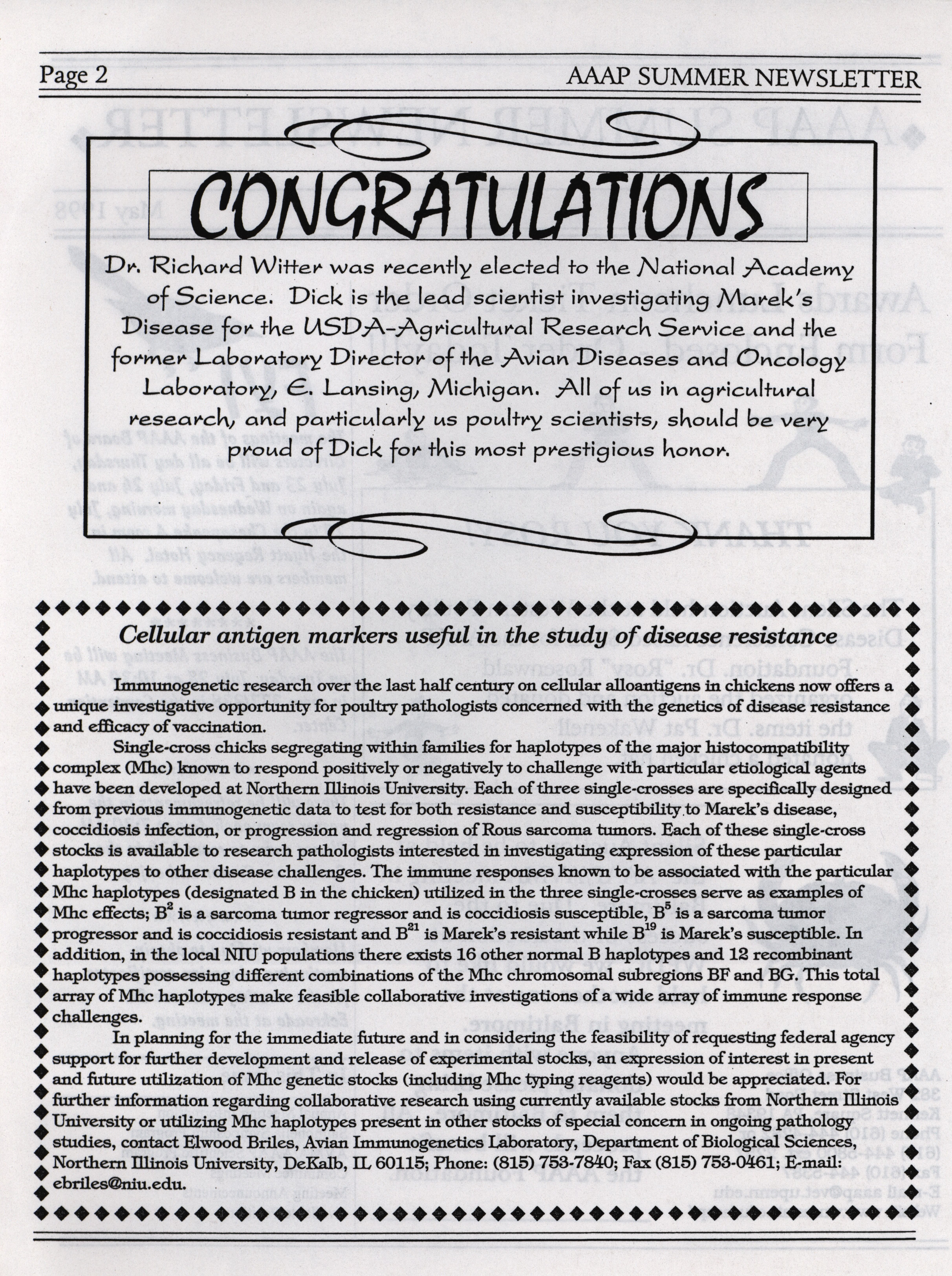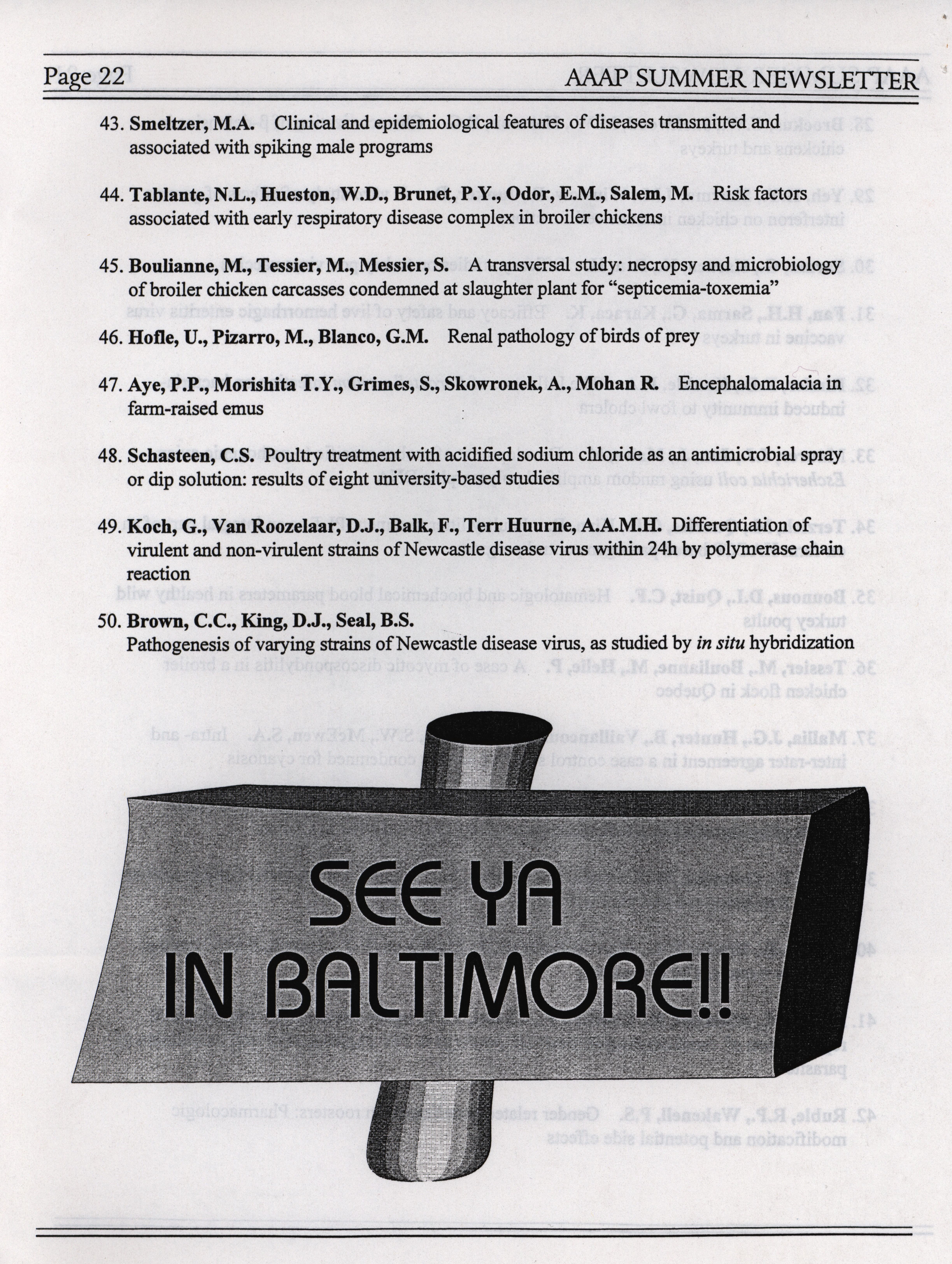 - "AAAP summer newsletter, May 1999", American Association of Avian Pathologists Collection, Iowa State University Library Digital Collections