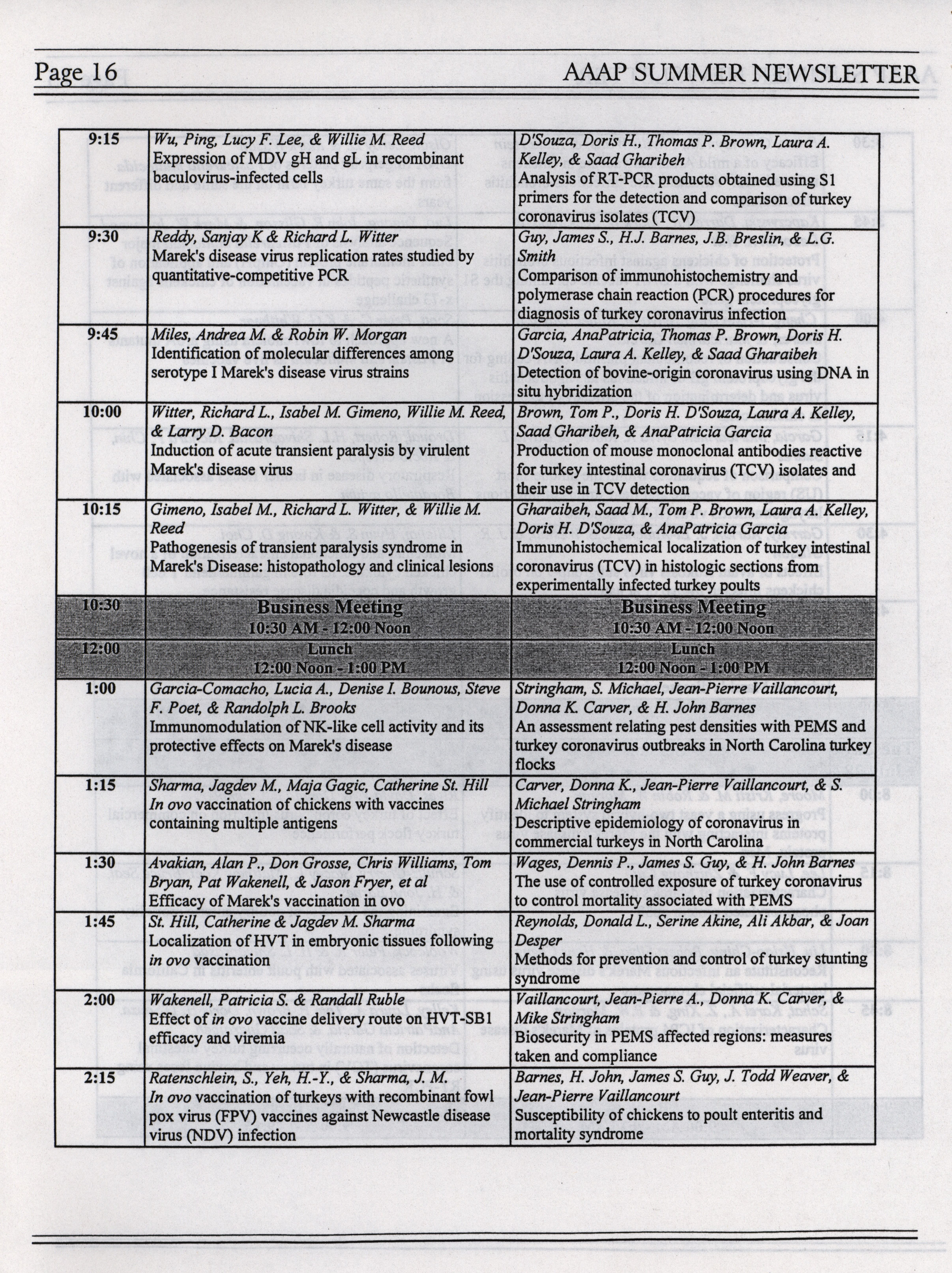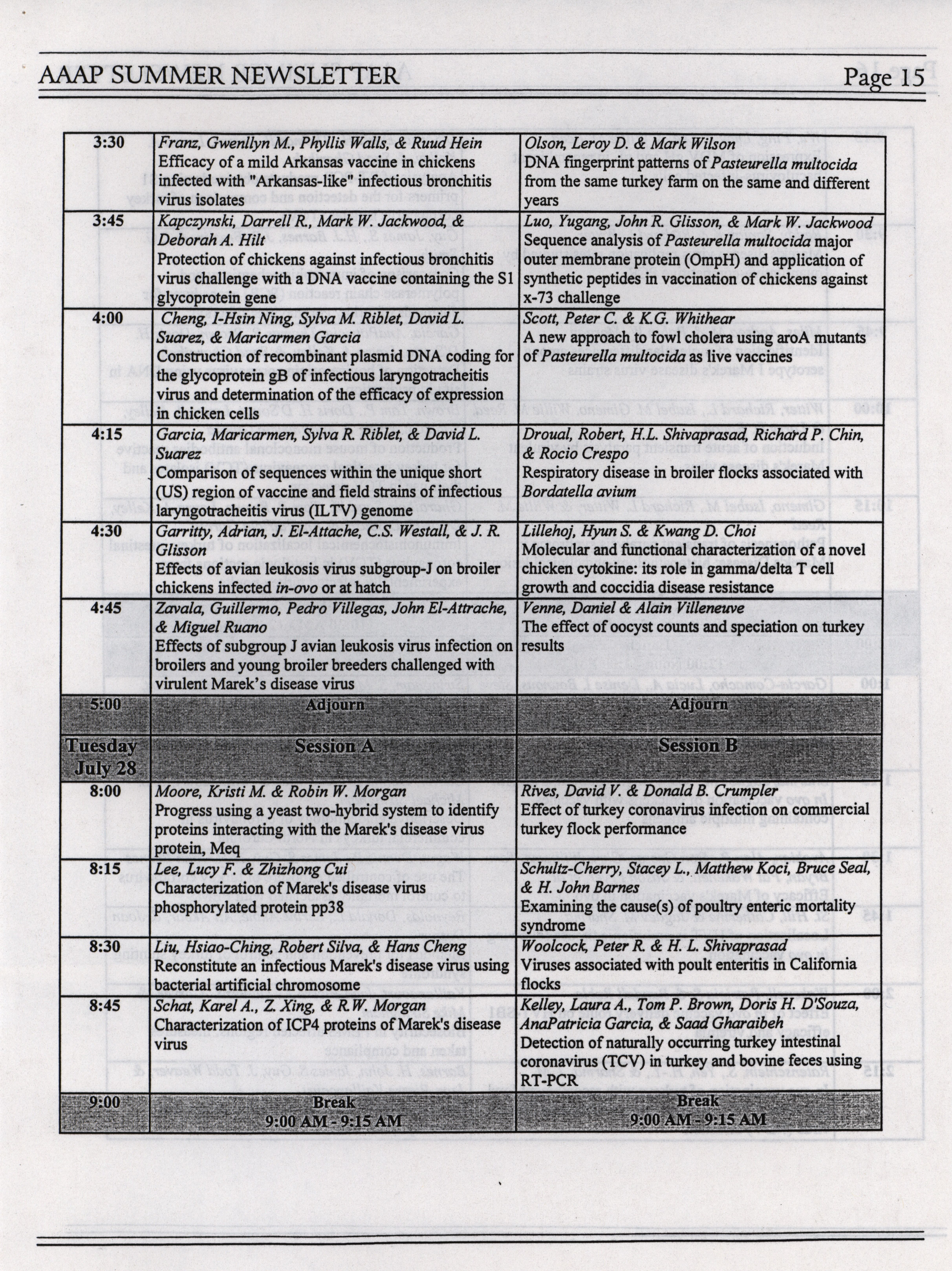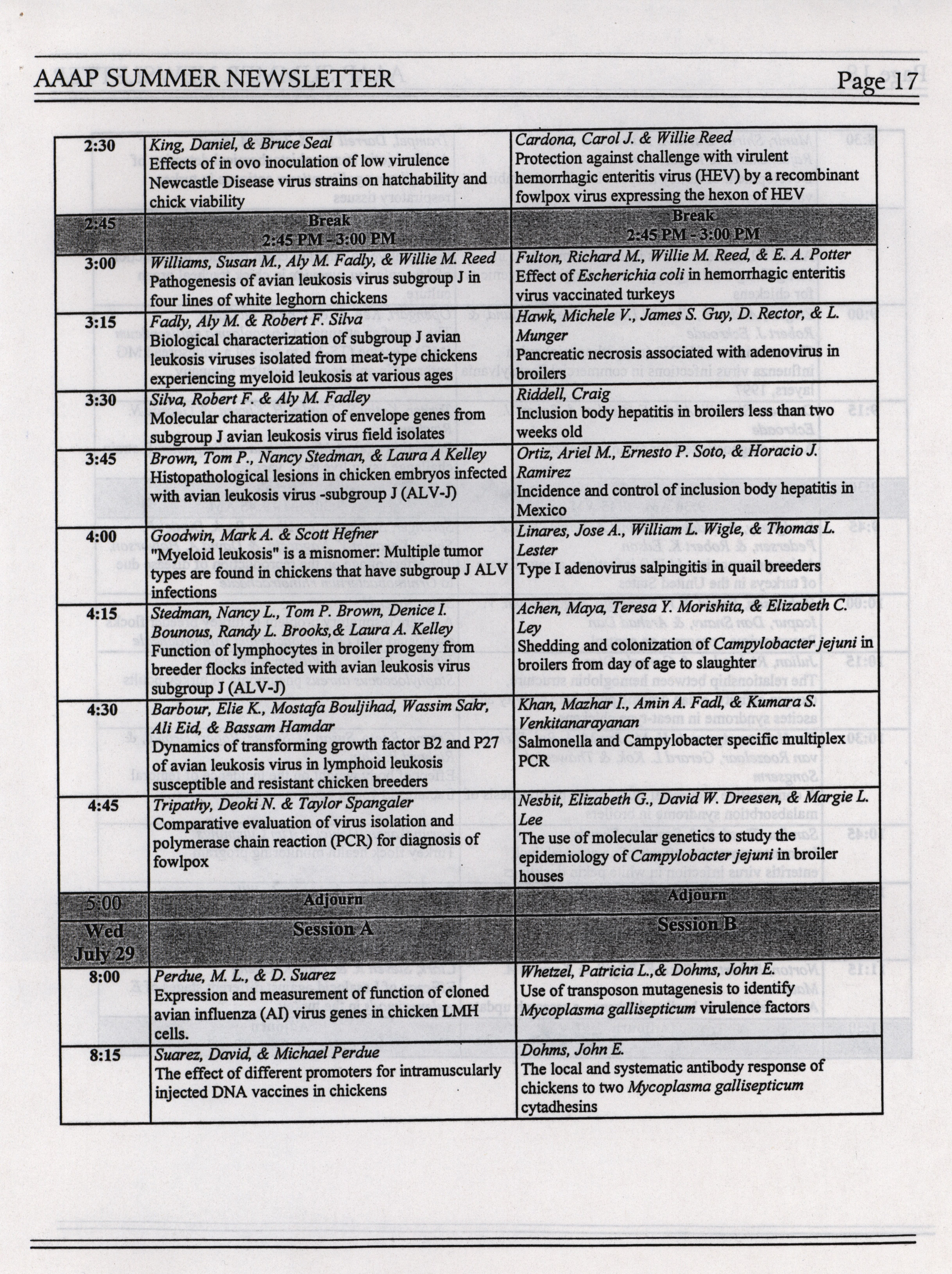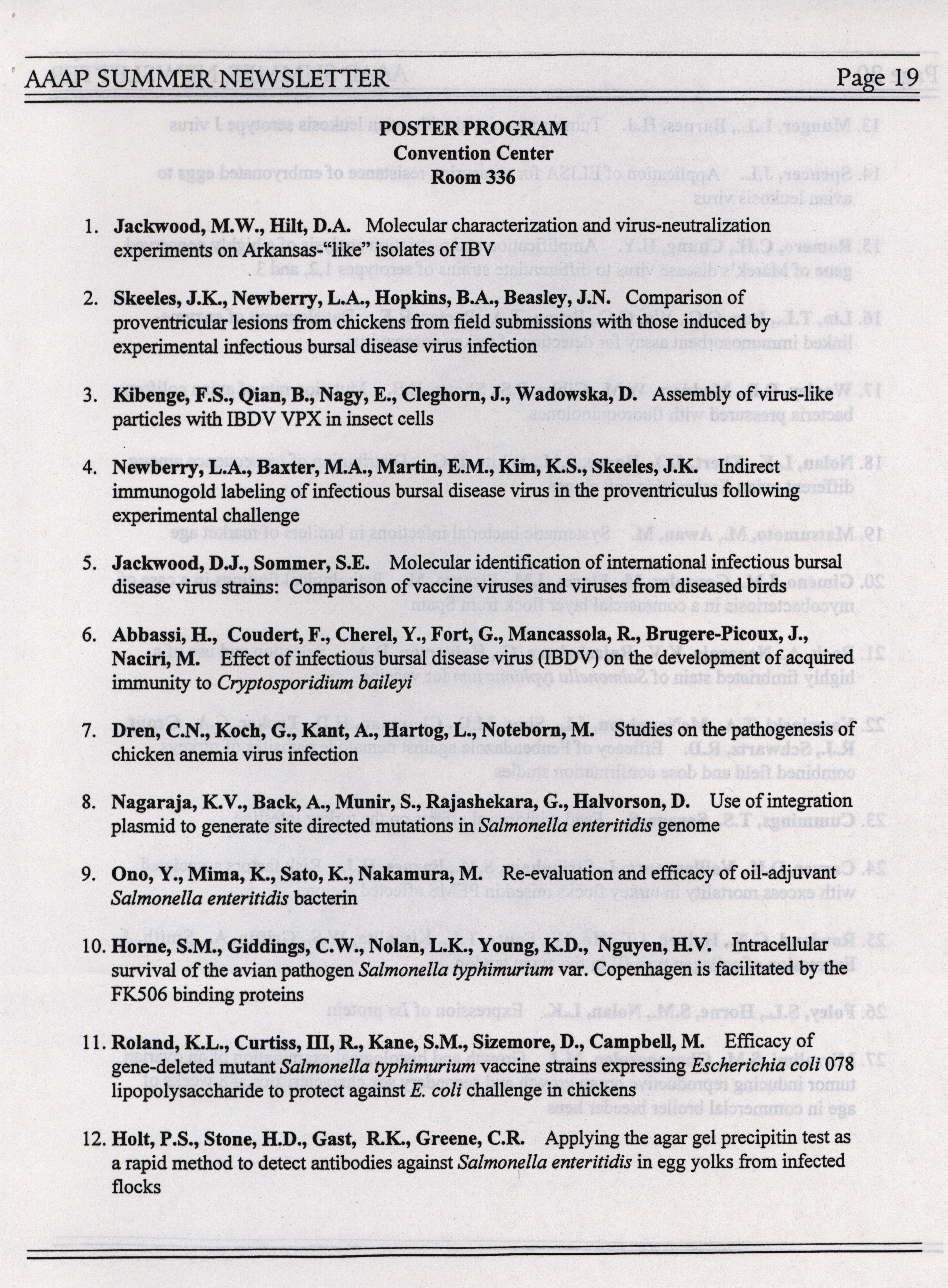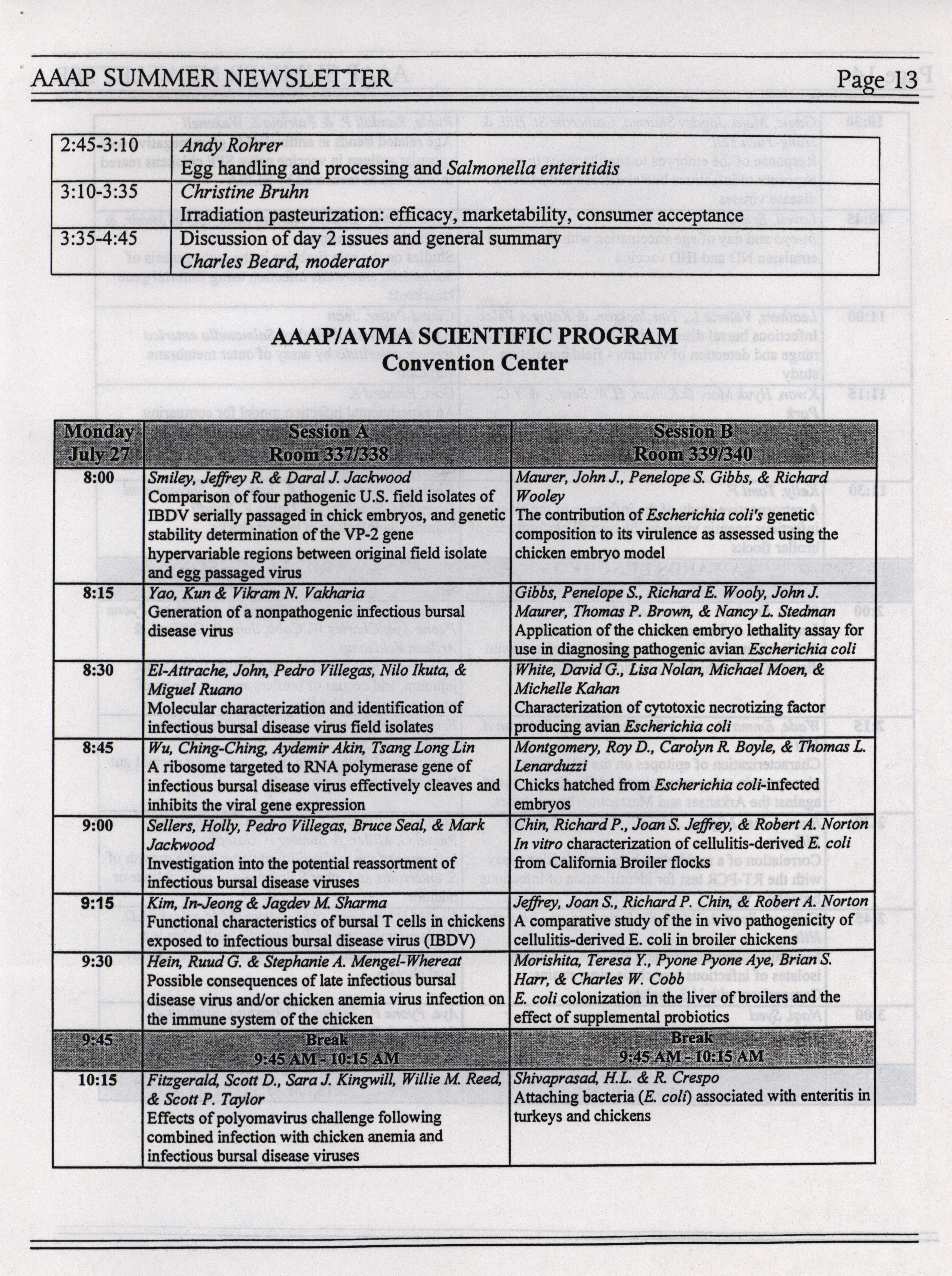 - "AAAP summer newsletter, May 1999", American Association of Avian Pathologists Collection, Iowa State University Library Digital Collections