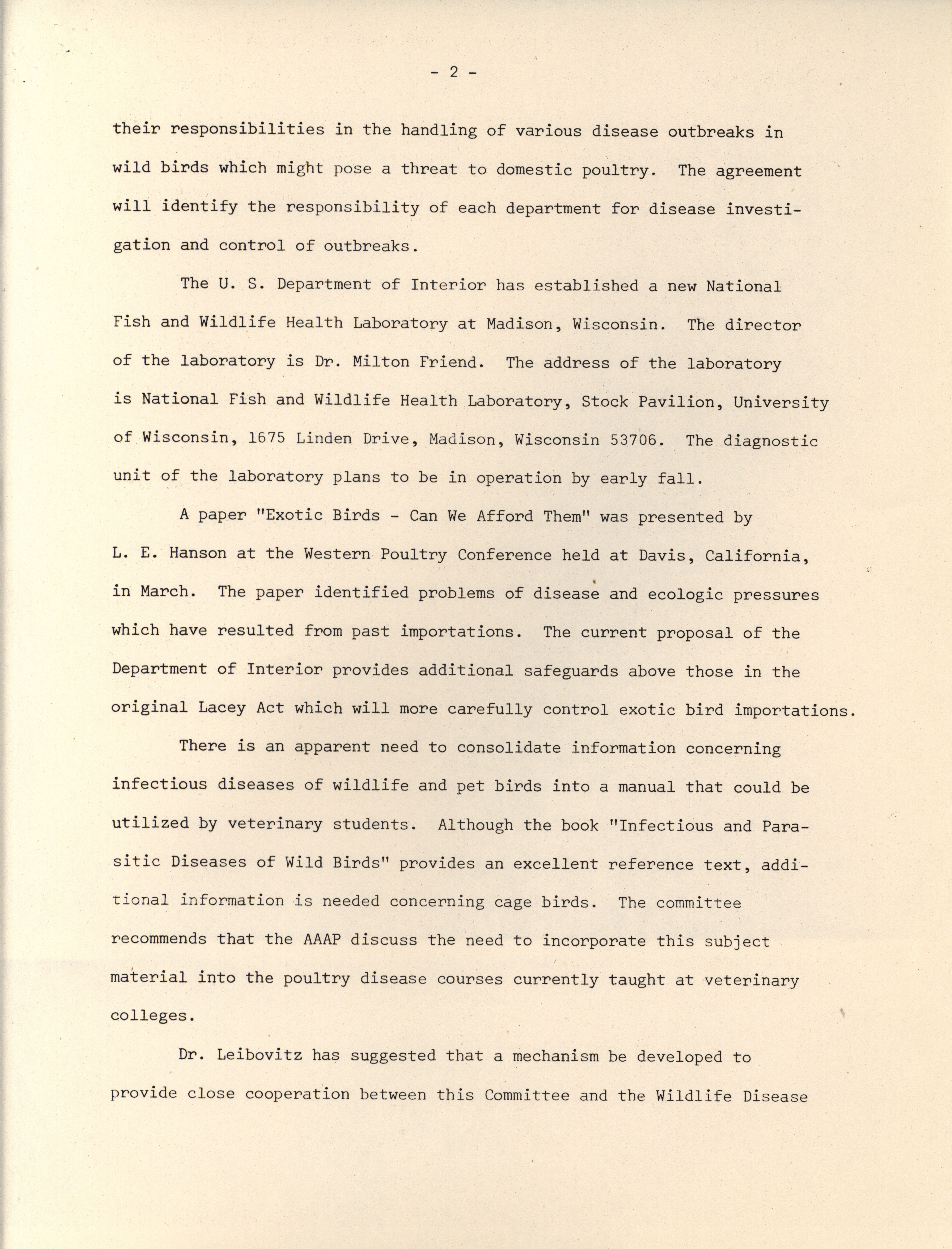 - "Annual report of the committee on diseases of wild and pet birds, 1975", American Association of Avian Pathologists Collection, Iowa State University Library Digital Collections