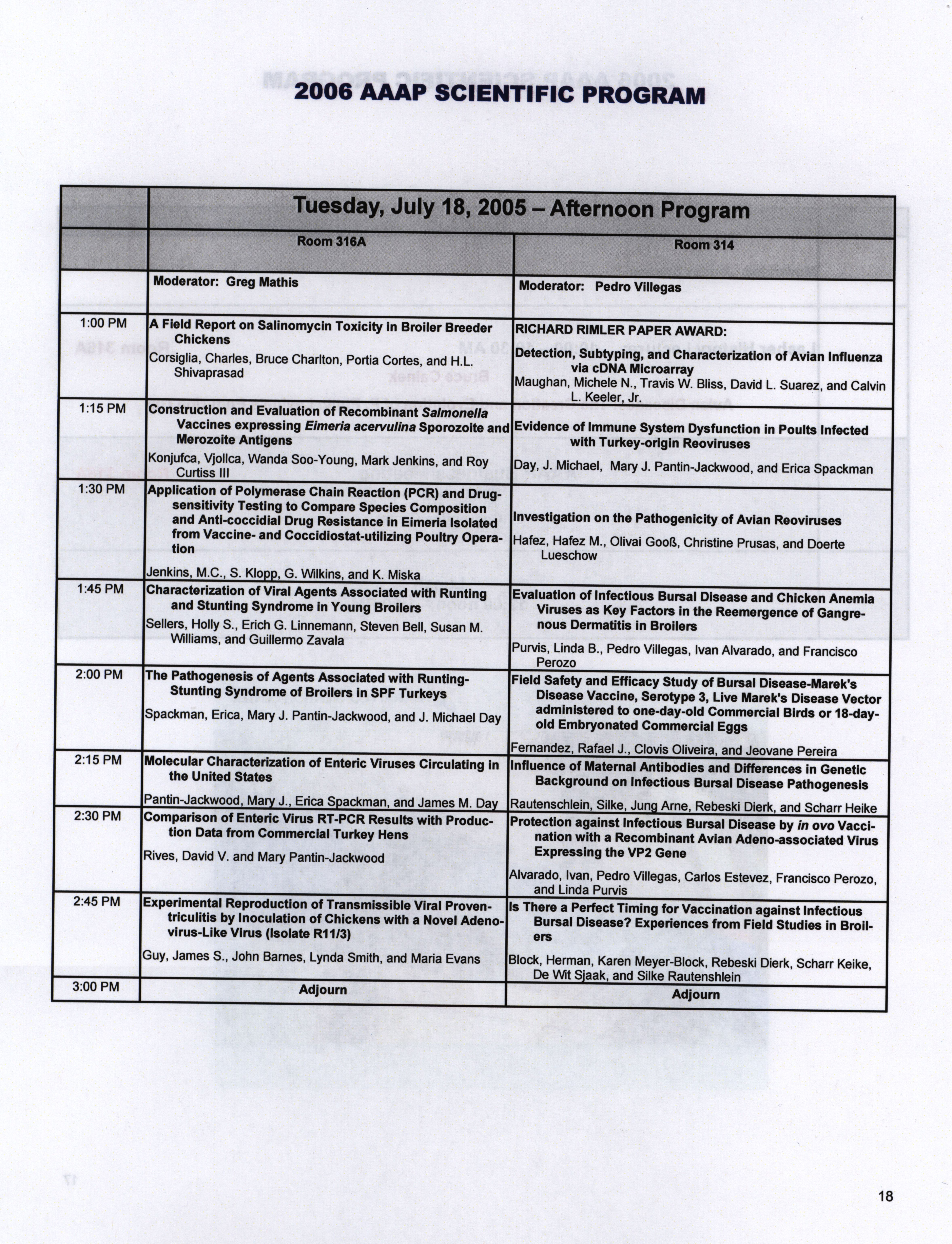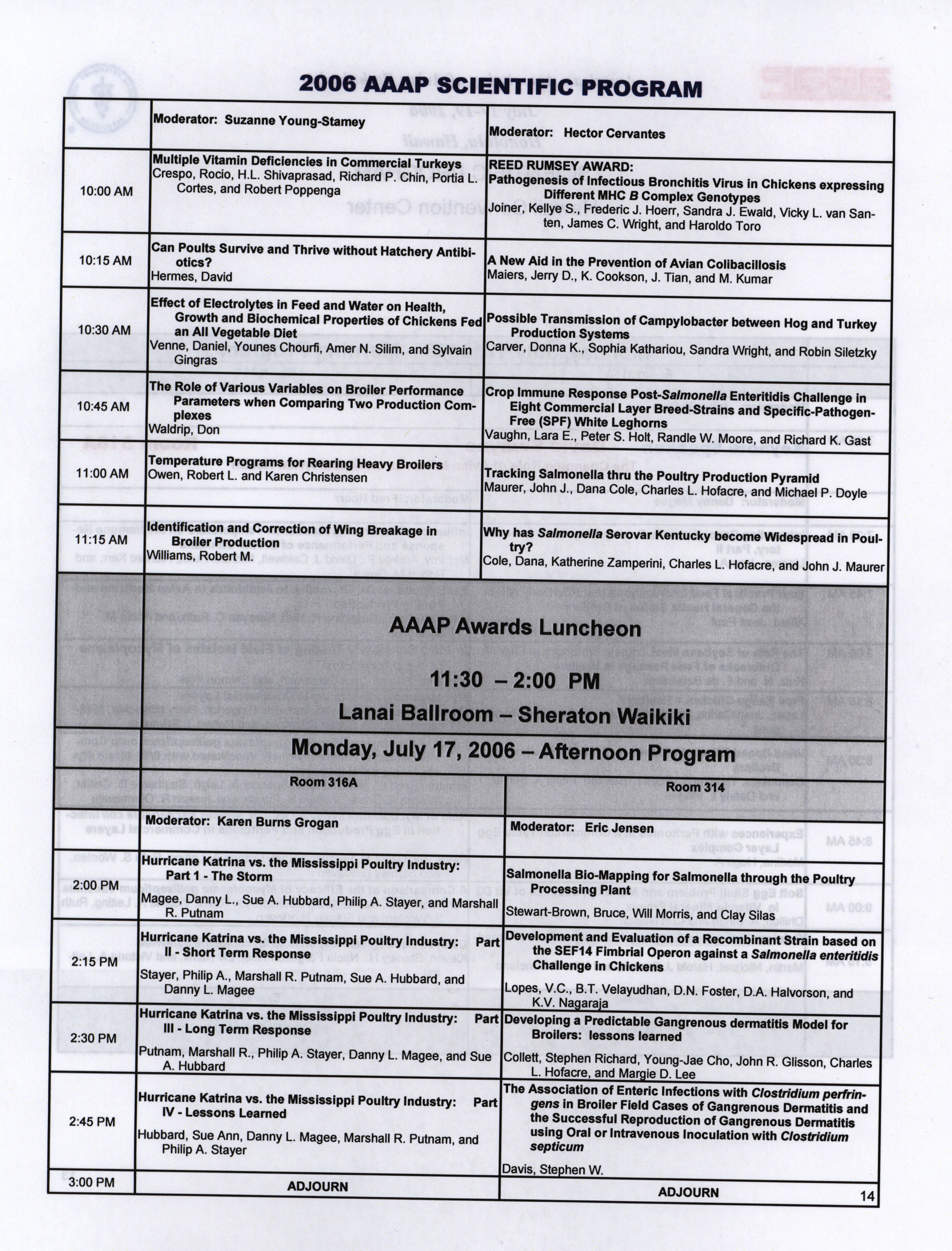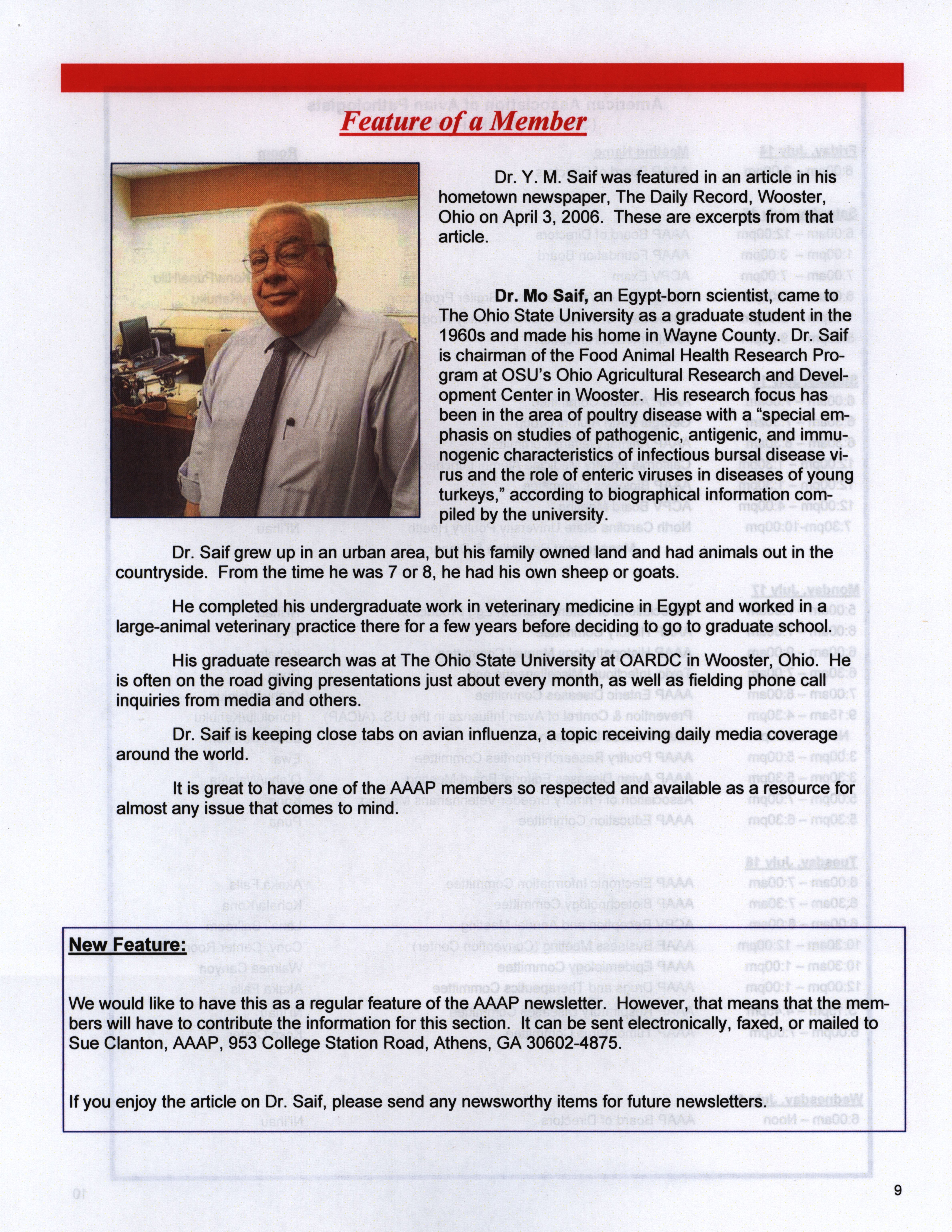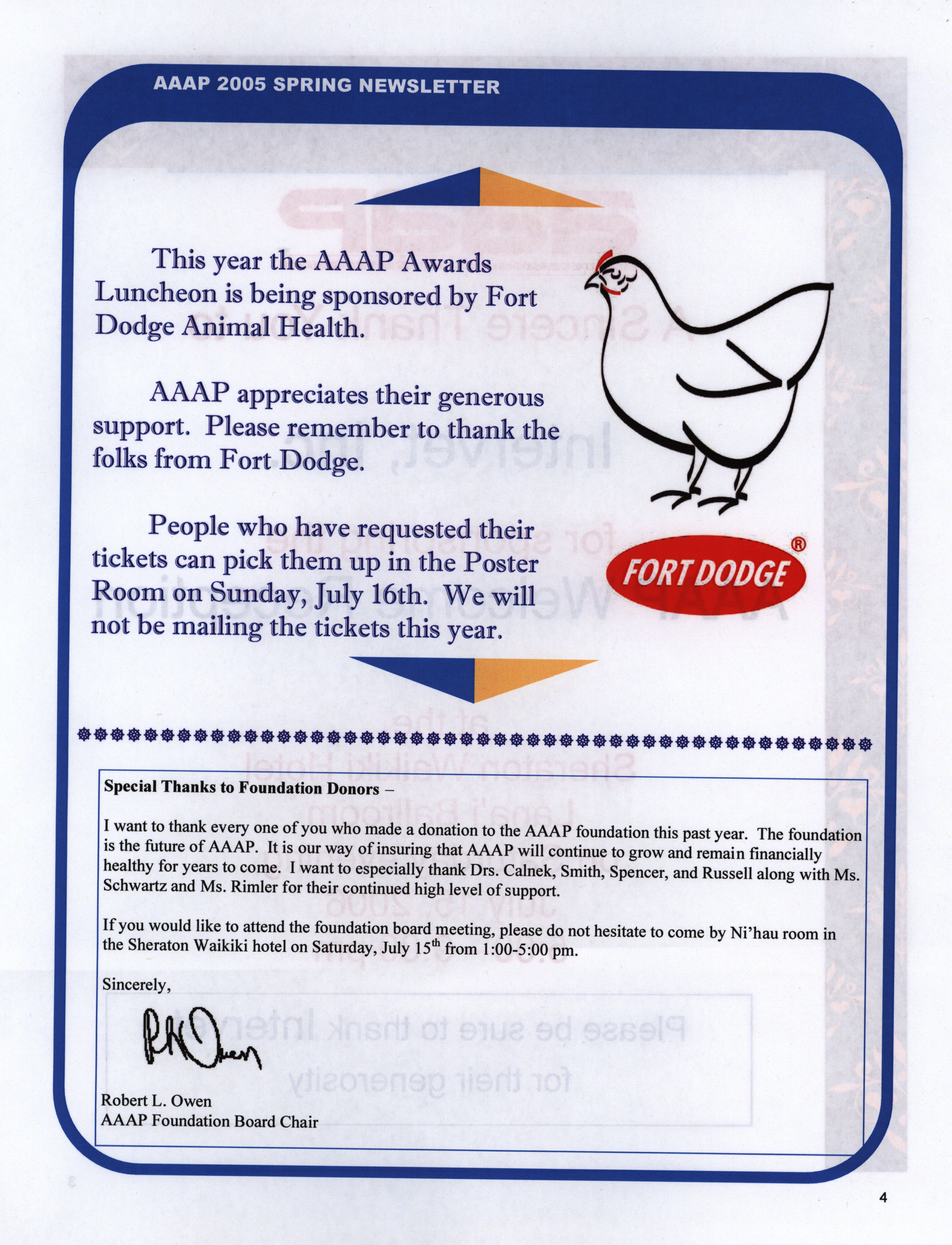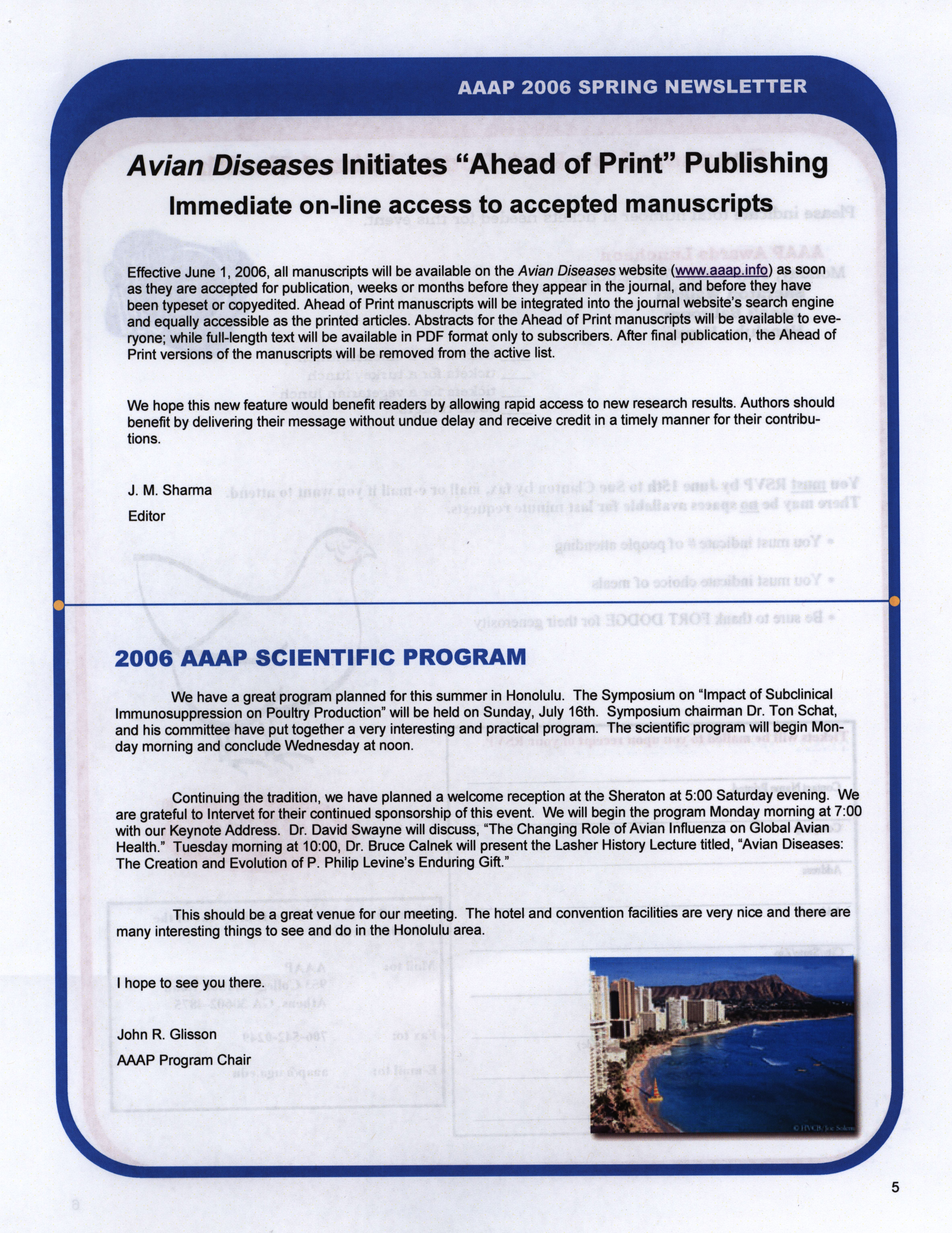 - American Association of Avian Pathologists spring newsletter, July 2006