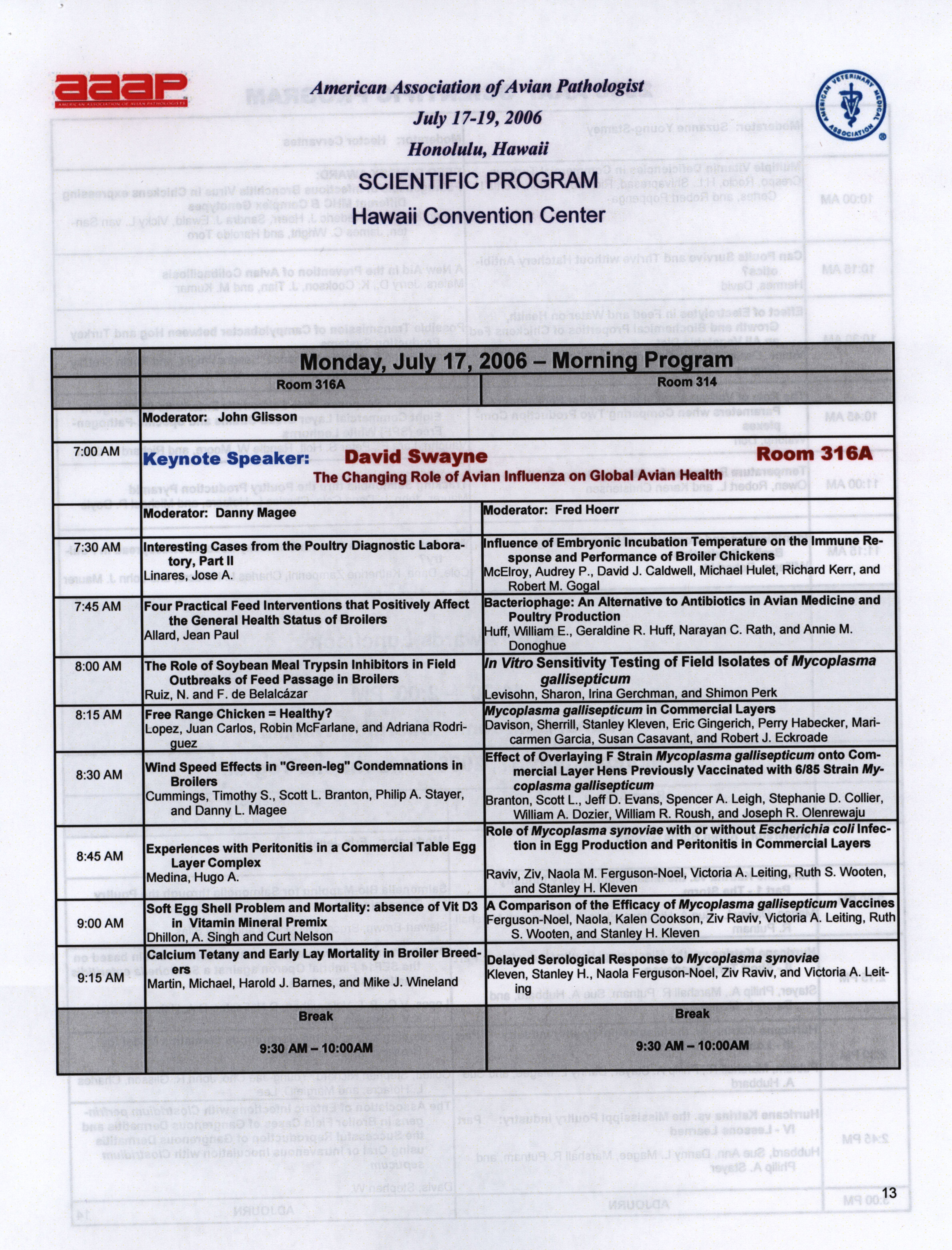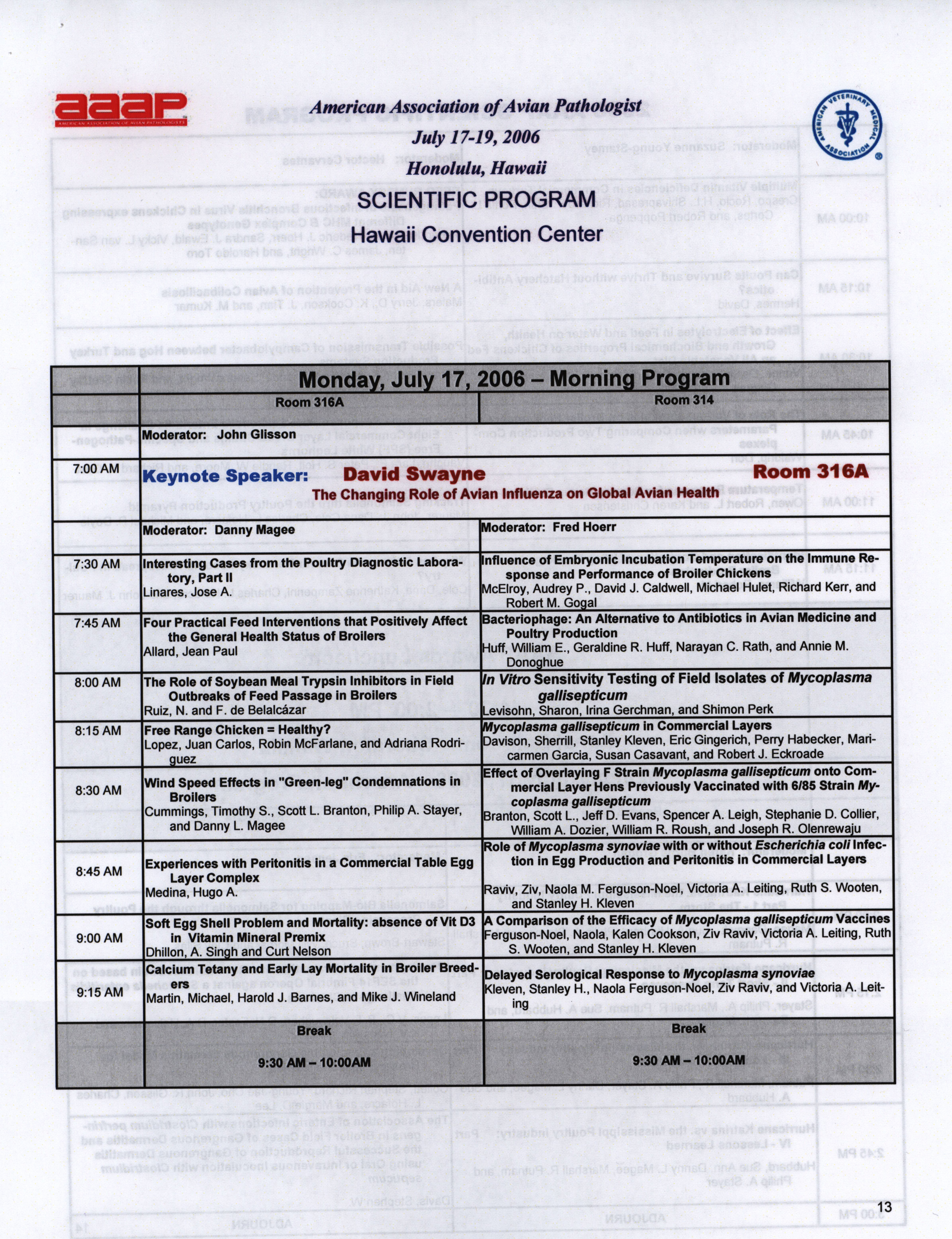 - "American Association of Avian Pathologists spring newsletter, July 2006", American Association of Avian Pathologists Collection, Iowa State University Library Digital Collections