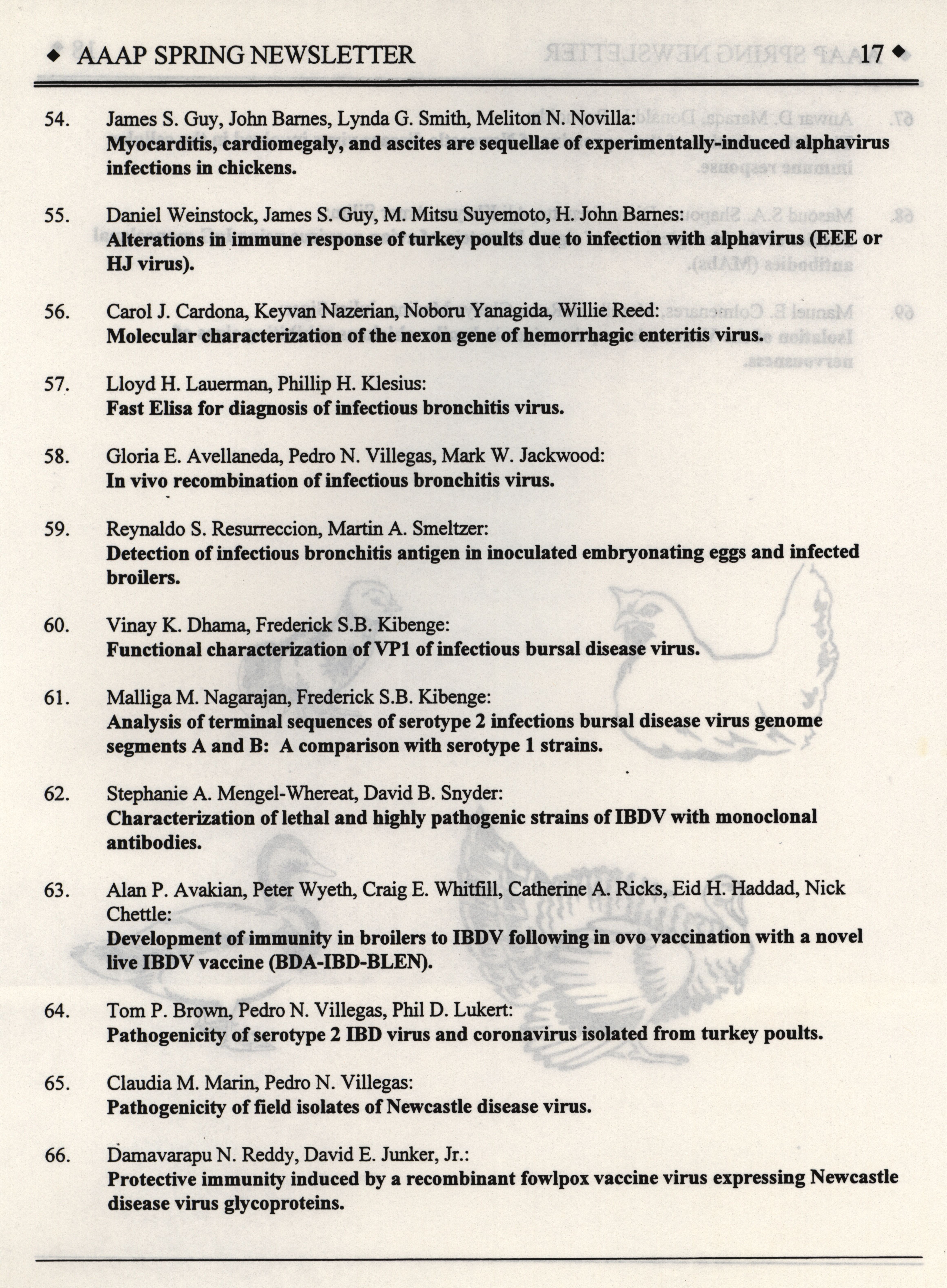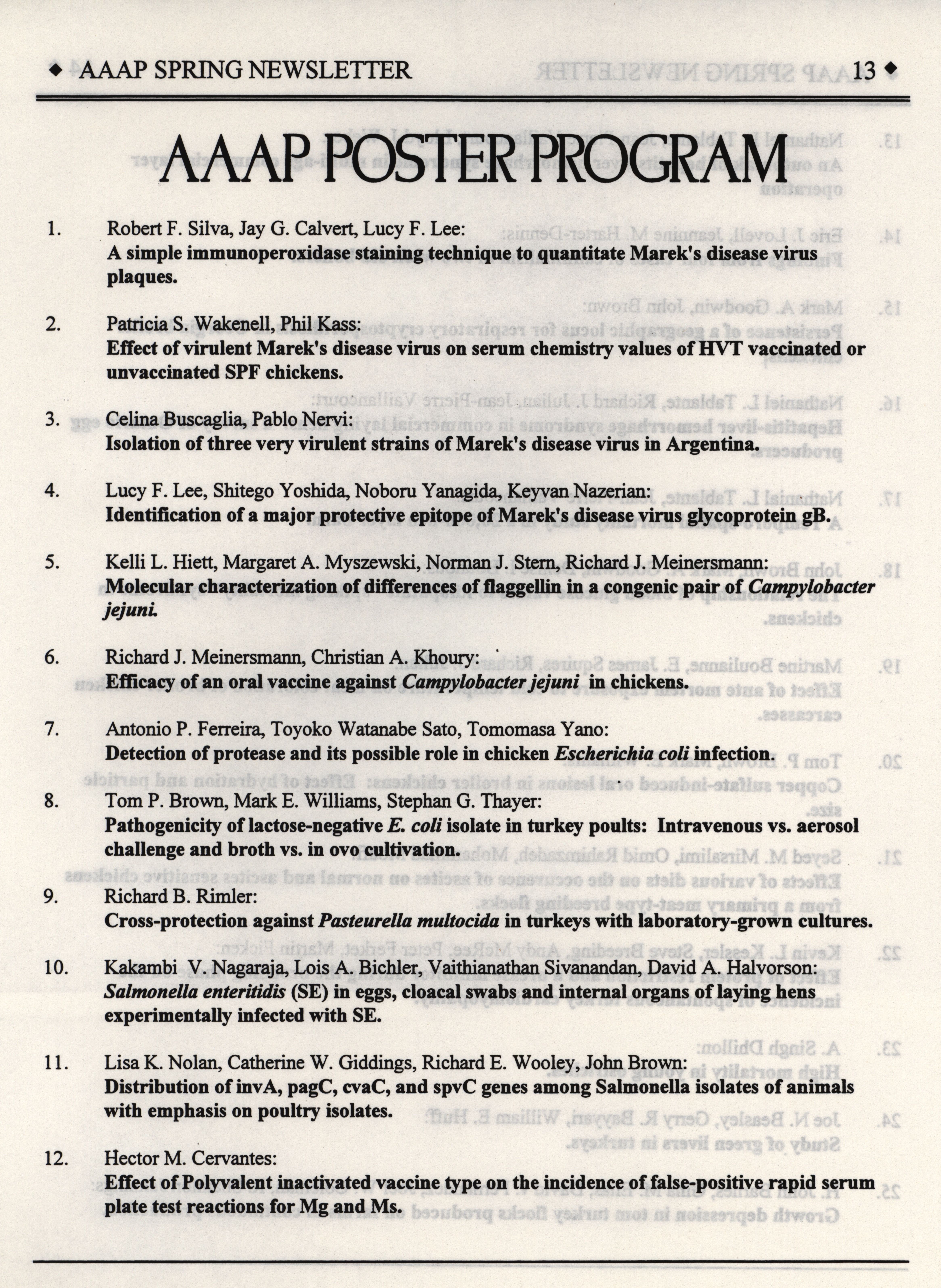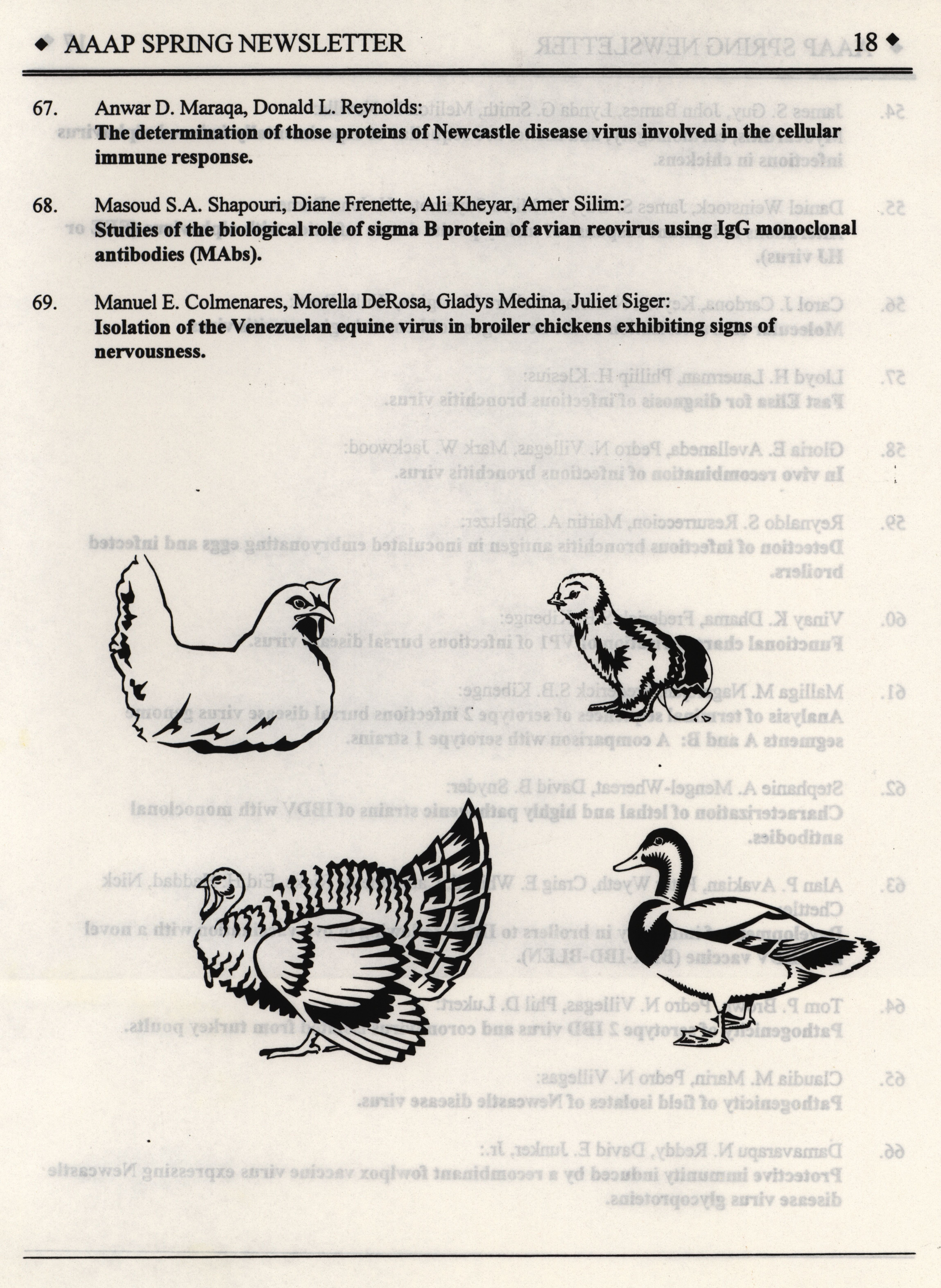 - "AAAP spring newsletter, April 1994", American Association of Avian Pathologists Collection, Iowa State University Library Digital Collections