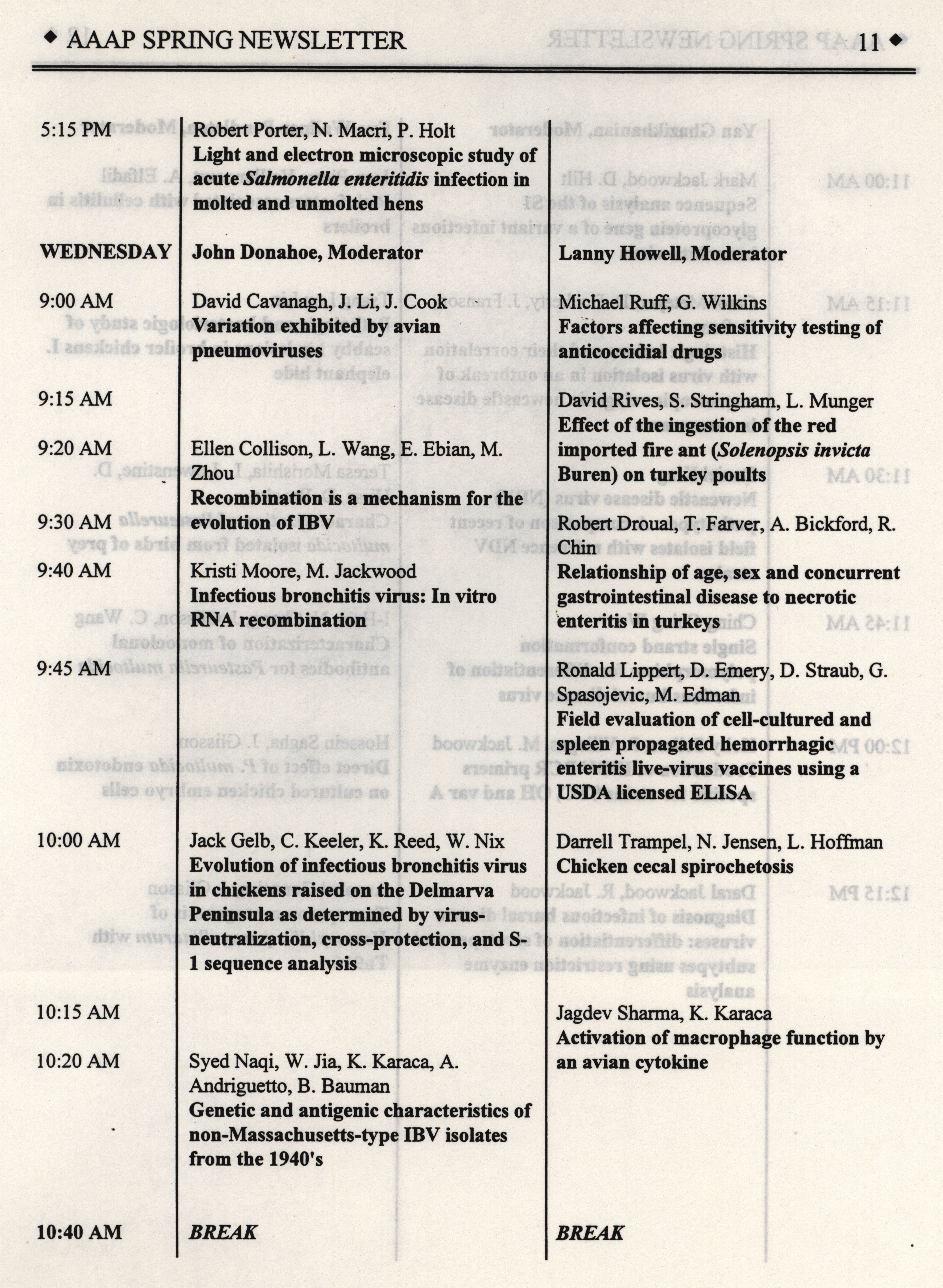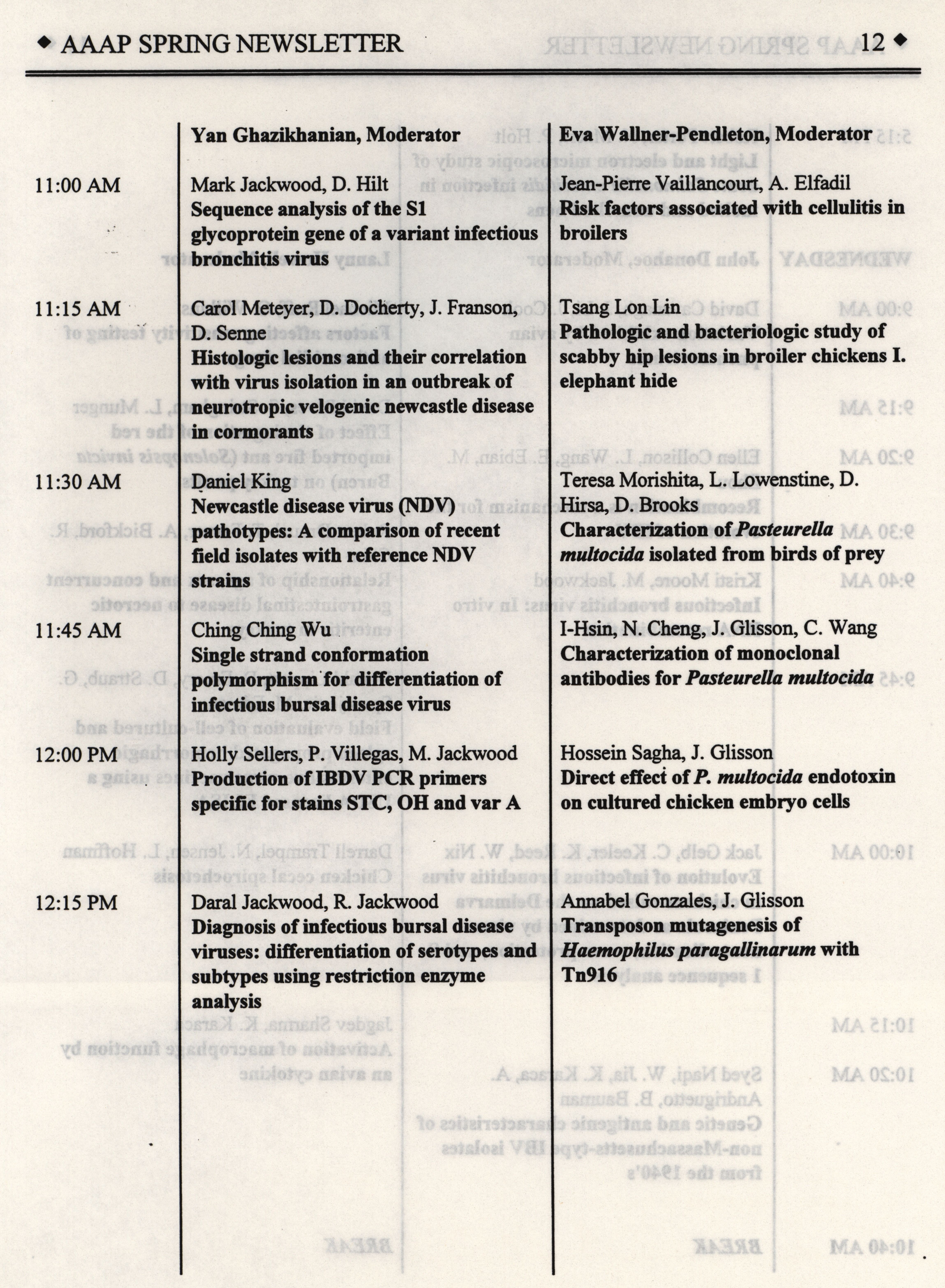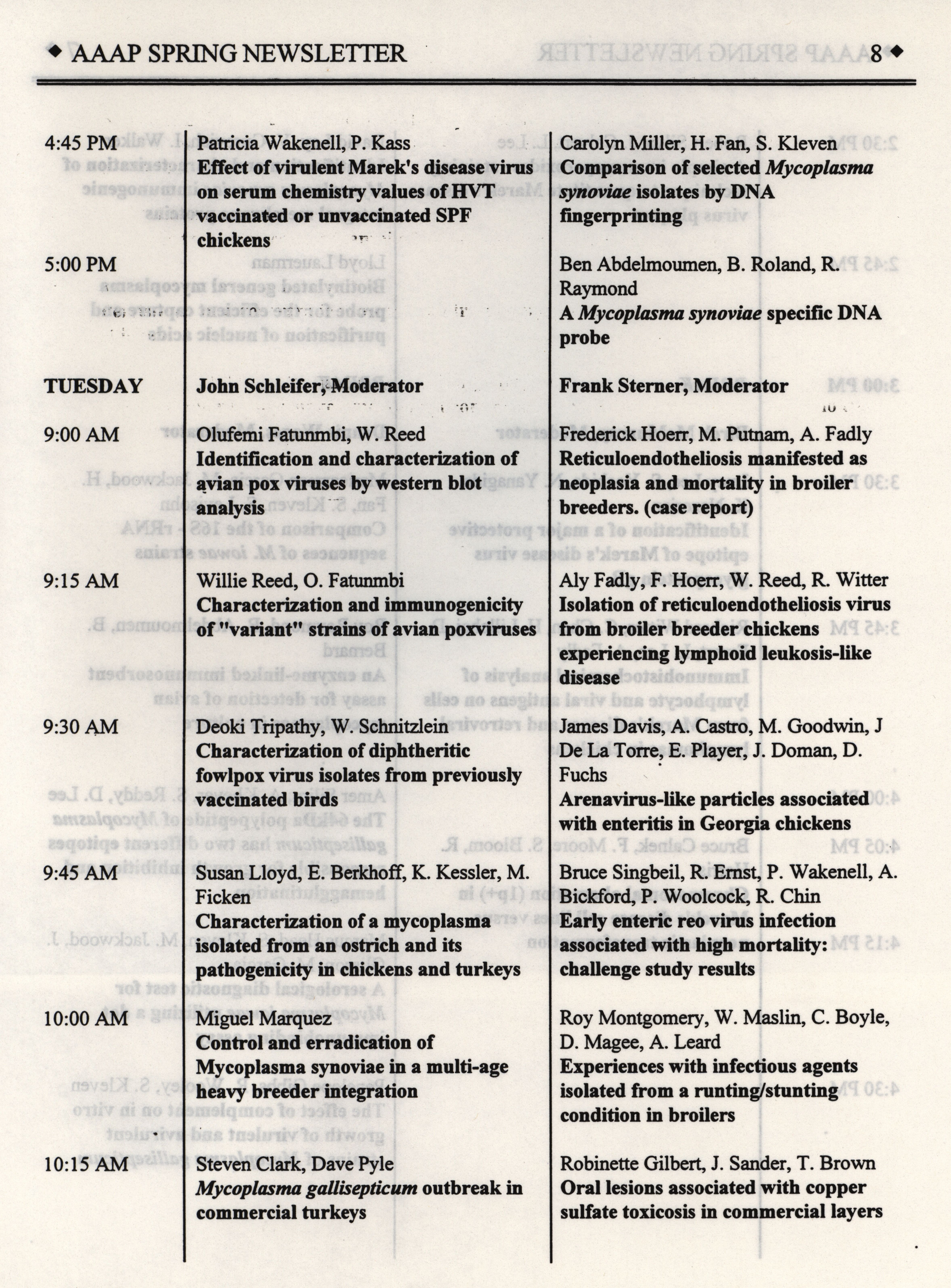 - "AAAP spring newsletter, April 1994", American Association of Avian Pathologists Collection, Iowa State University Library Digital Collections