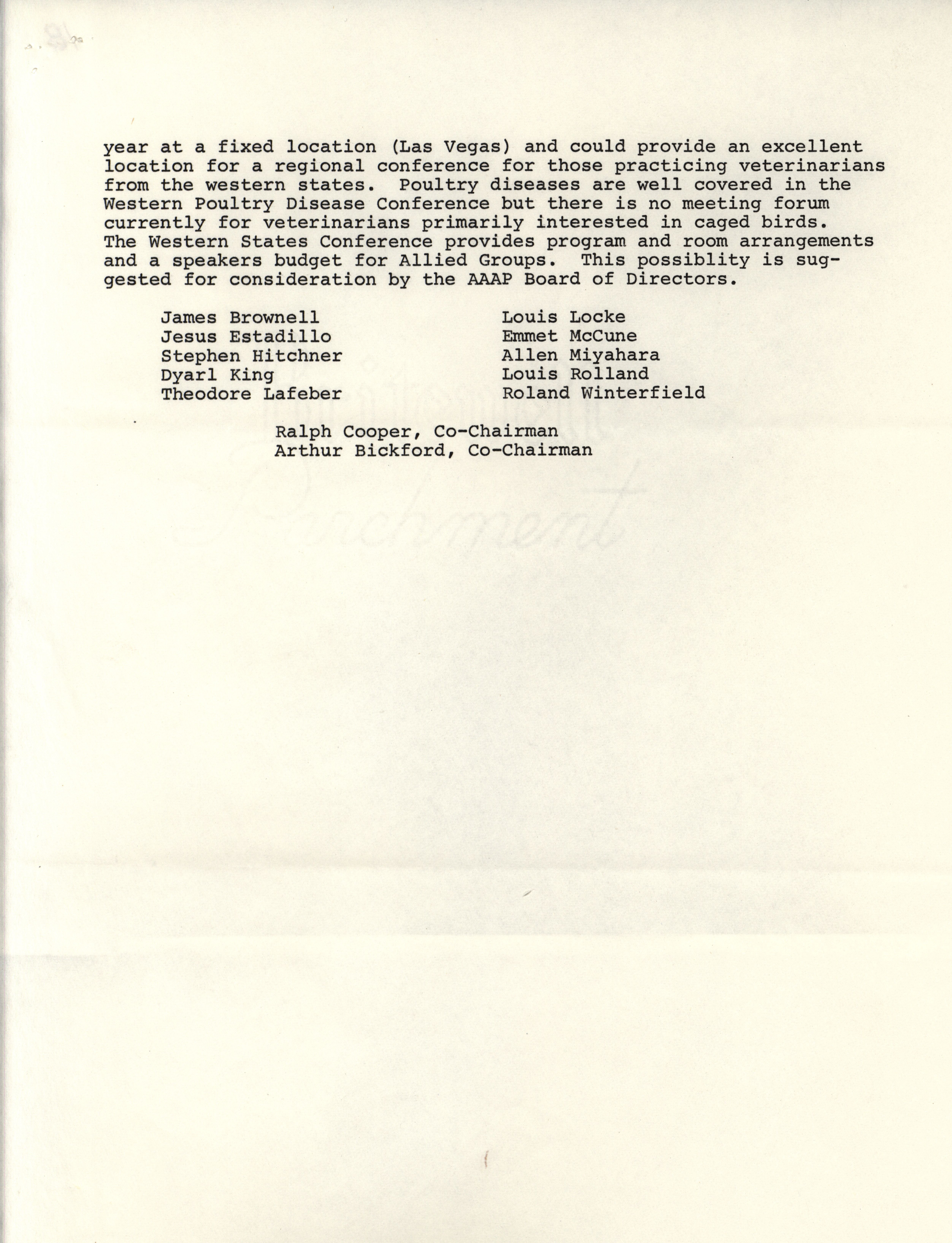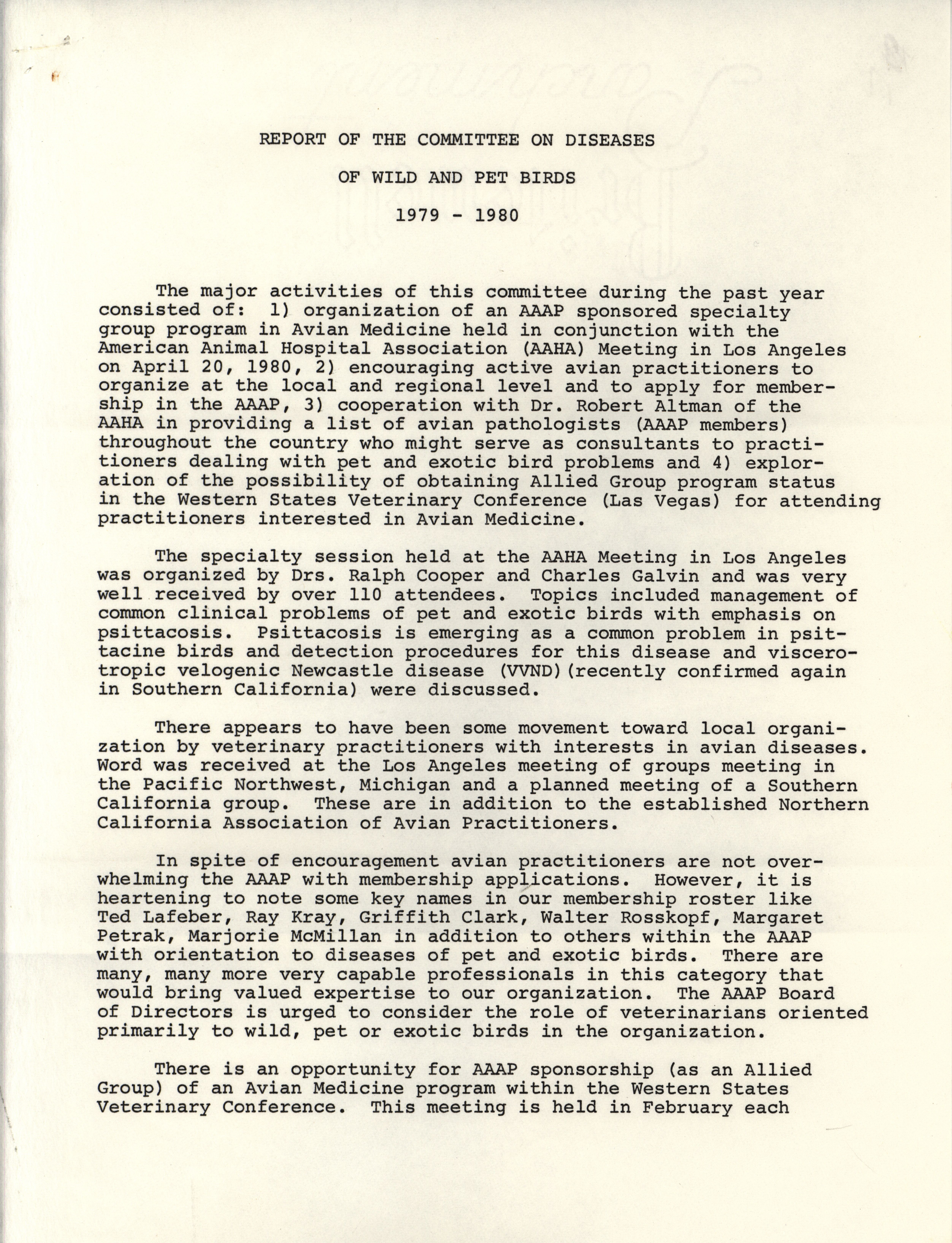 - Report of the American Association of Avian Pathologists Committee on Diseases of Wild and Pet Birds from 1980 describing the actions of the committee from the past year.