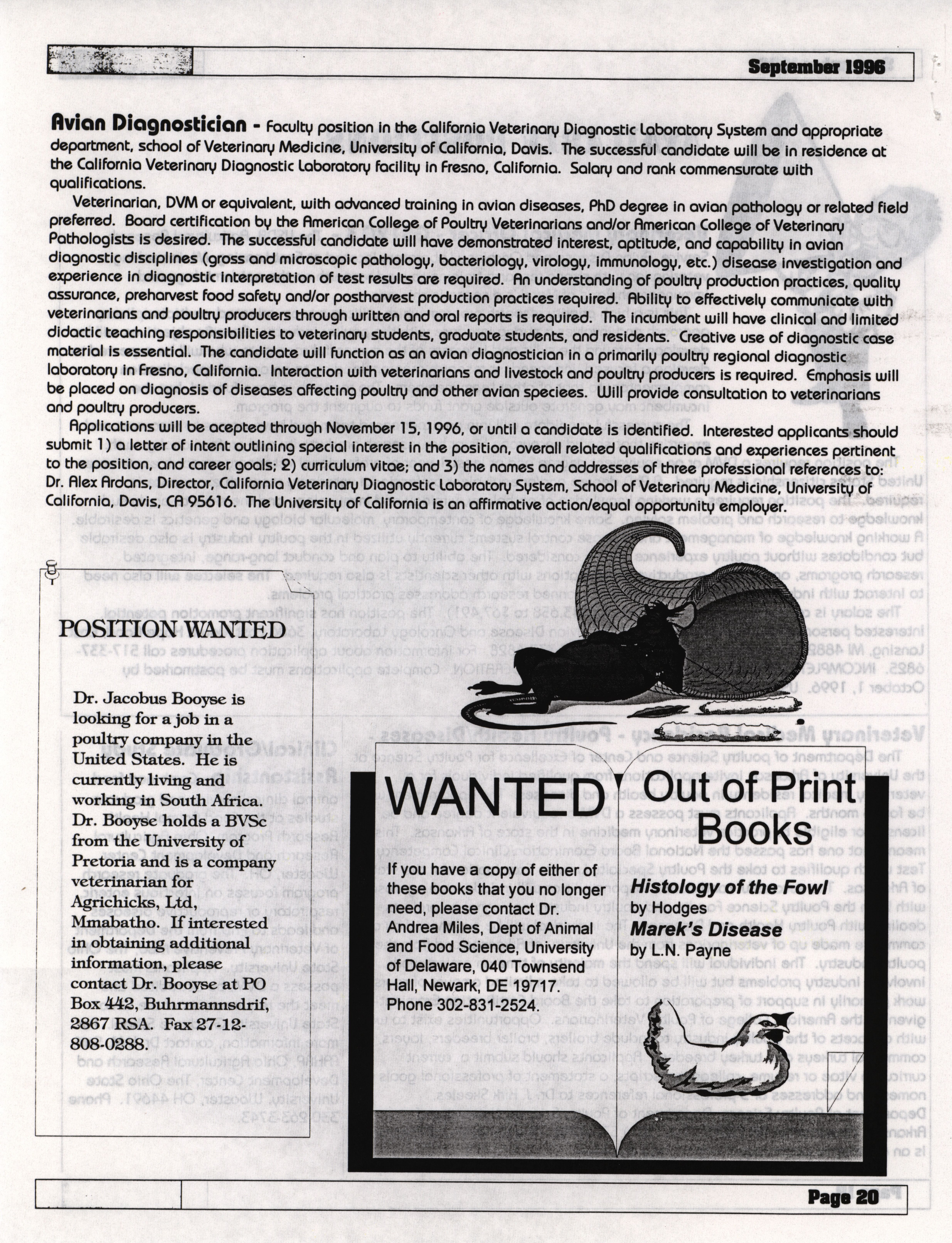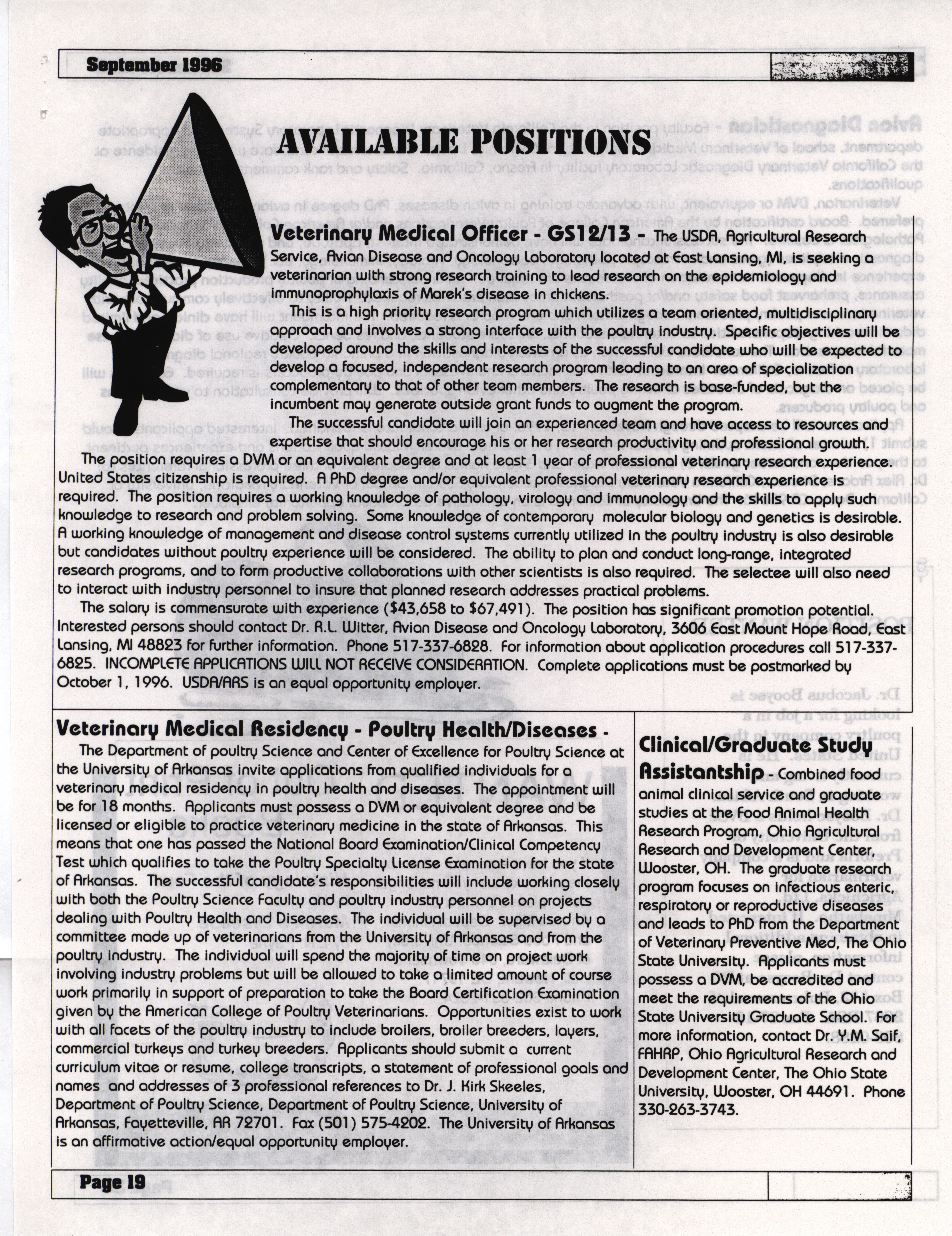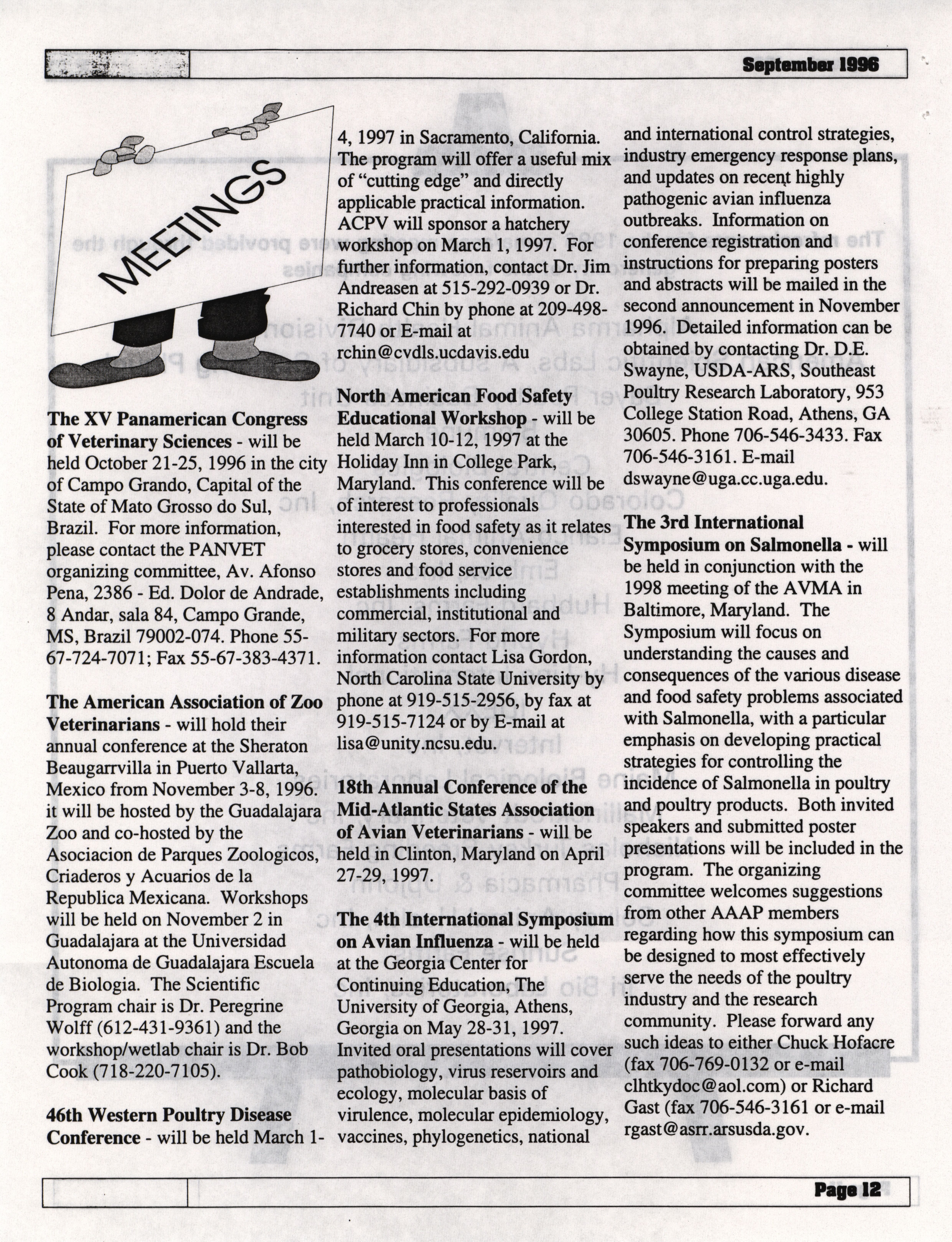 - "AAAP fall newsletter, September 1996", American Association of Avian Pathologists Collection, Iowa State University Library Digital Collections