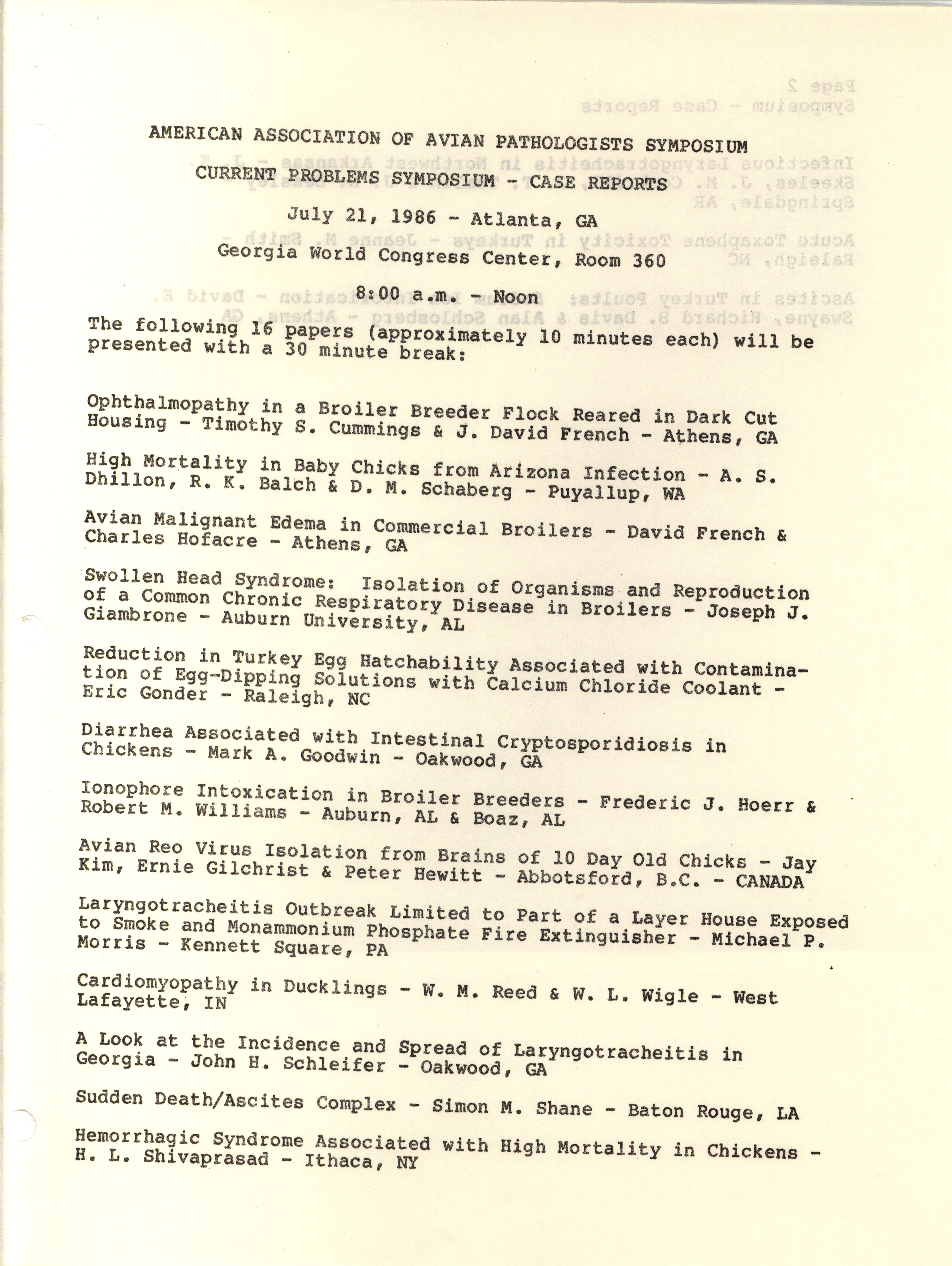 - "AAAP winter newsletter, February 14, 1986", American Association of Avian Pathologists Collection, Iowa State University Library Digital Collections