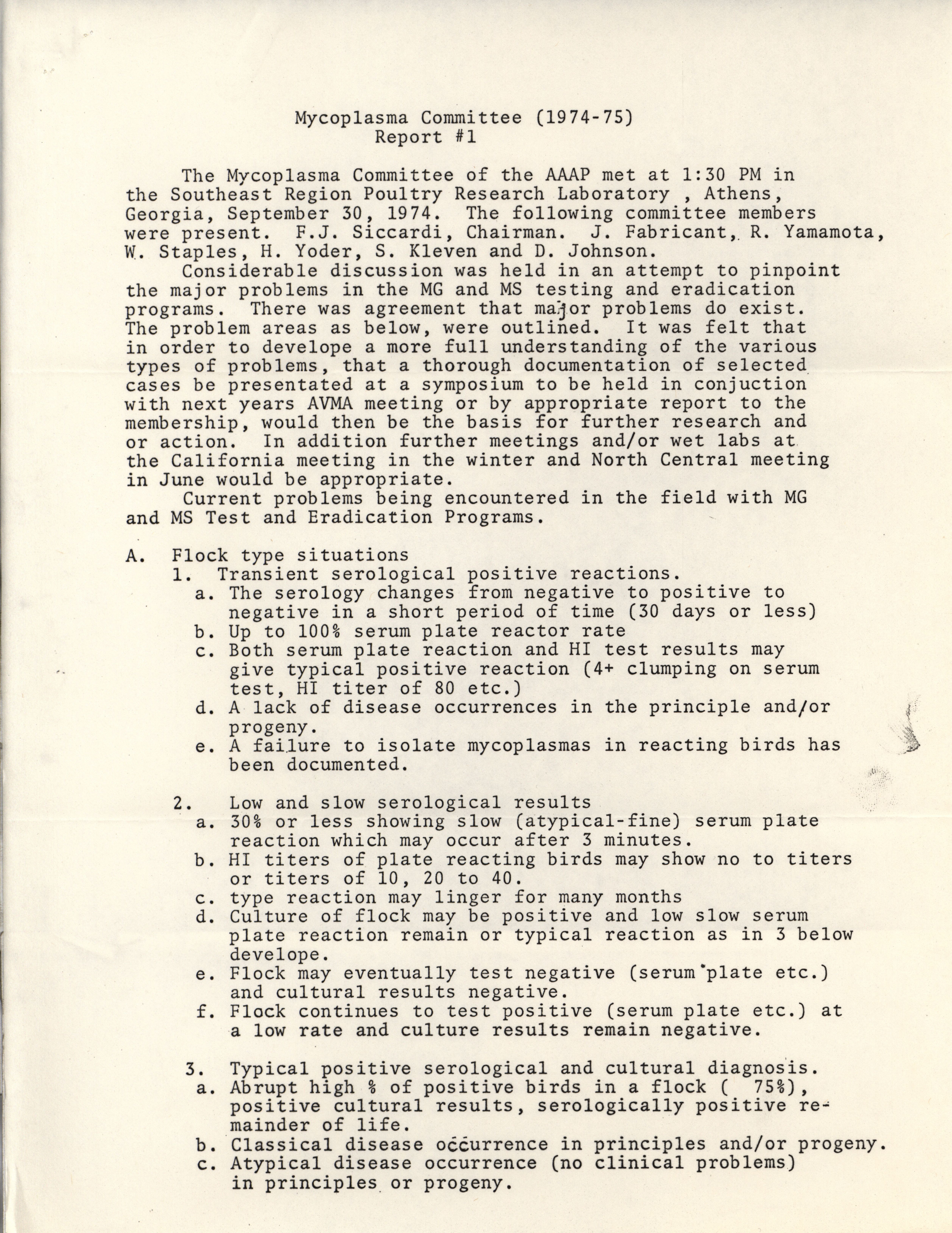 American Association of Avian Pathologists mycoplasma committee report, 1974-1975 Item Info