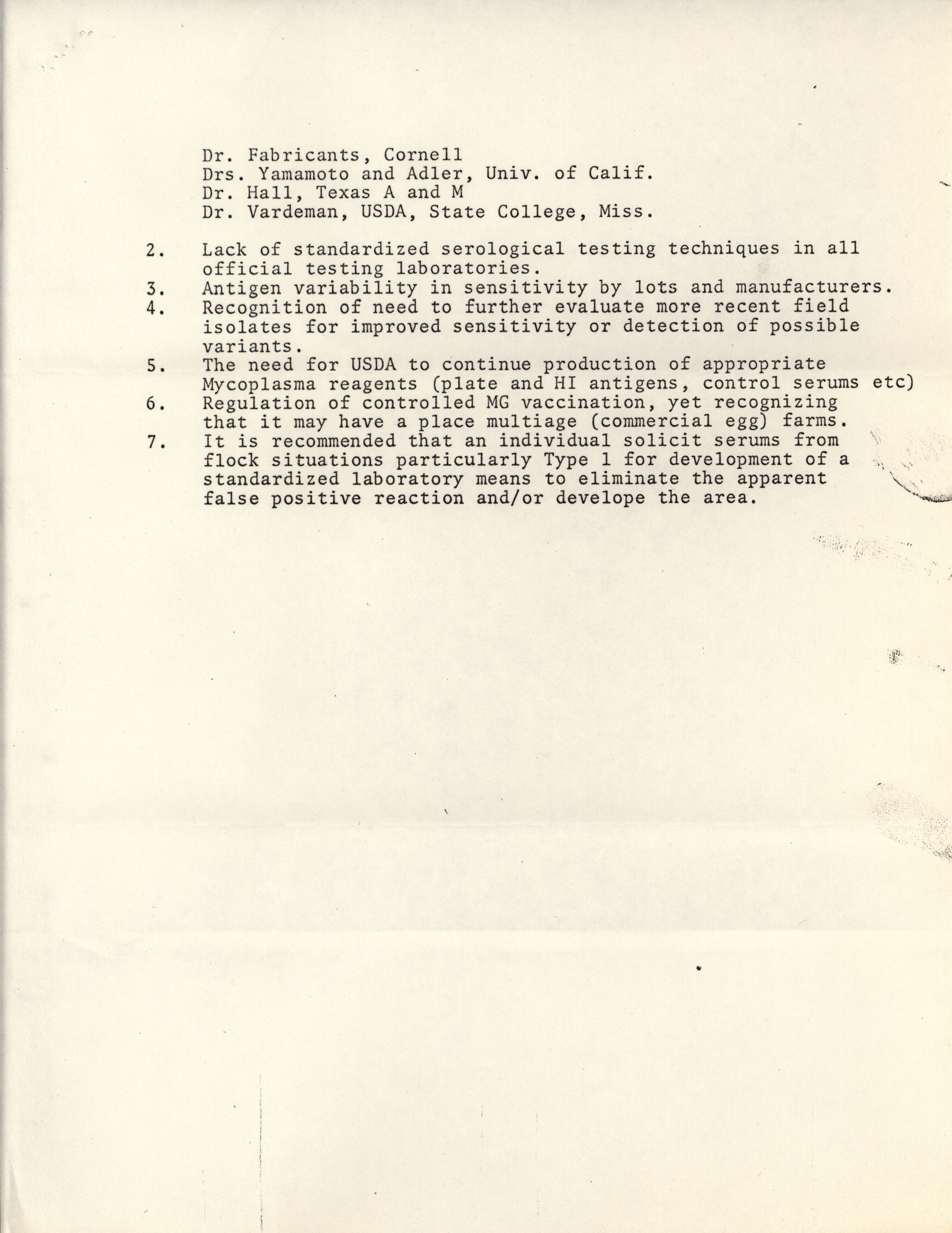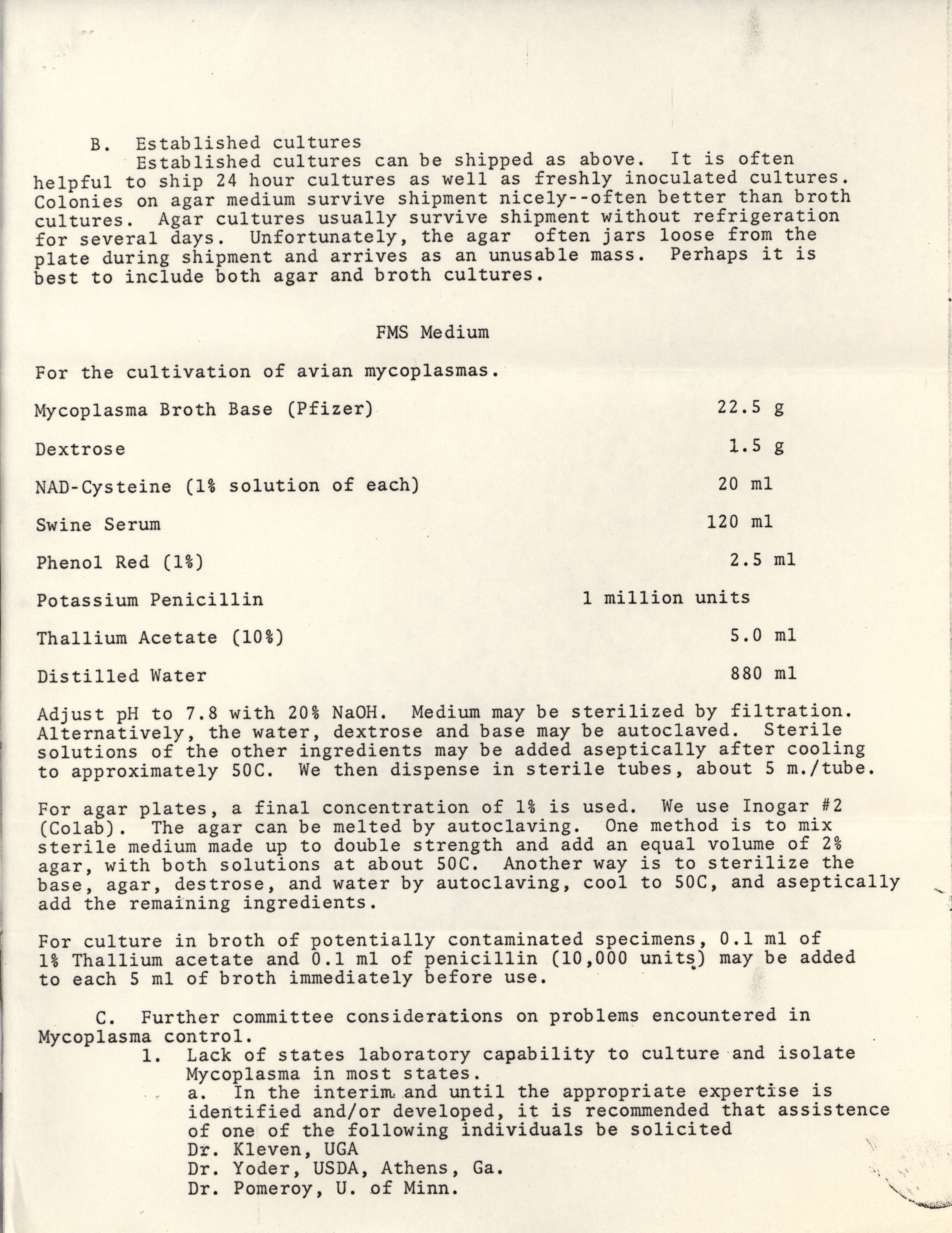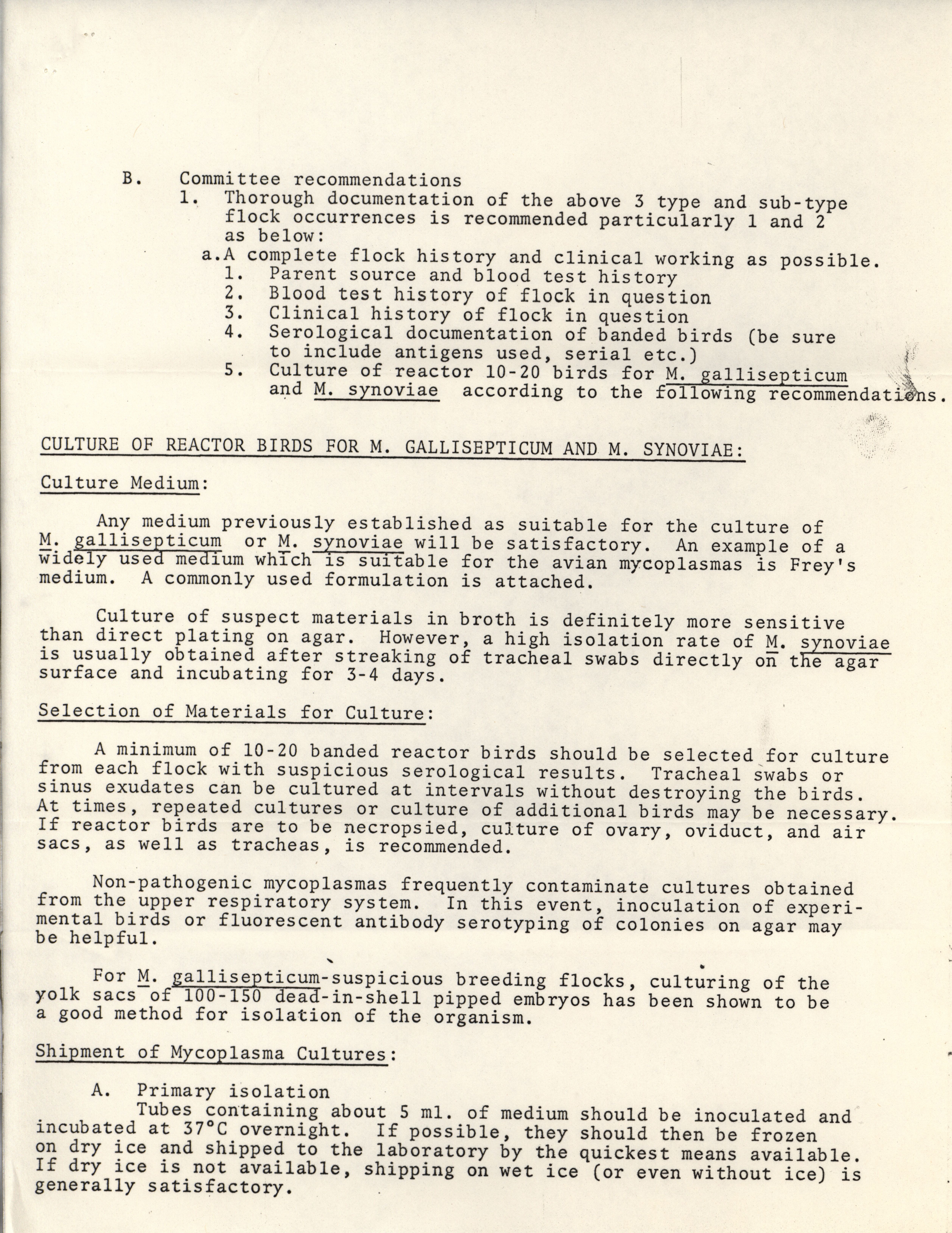 - "American Association of Avian Pathologists mycoplasma committee report, 1974-1975", American Association of Avian Pathologists Collection, Iowa State University Library Digital Collections