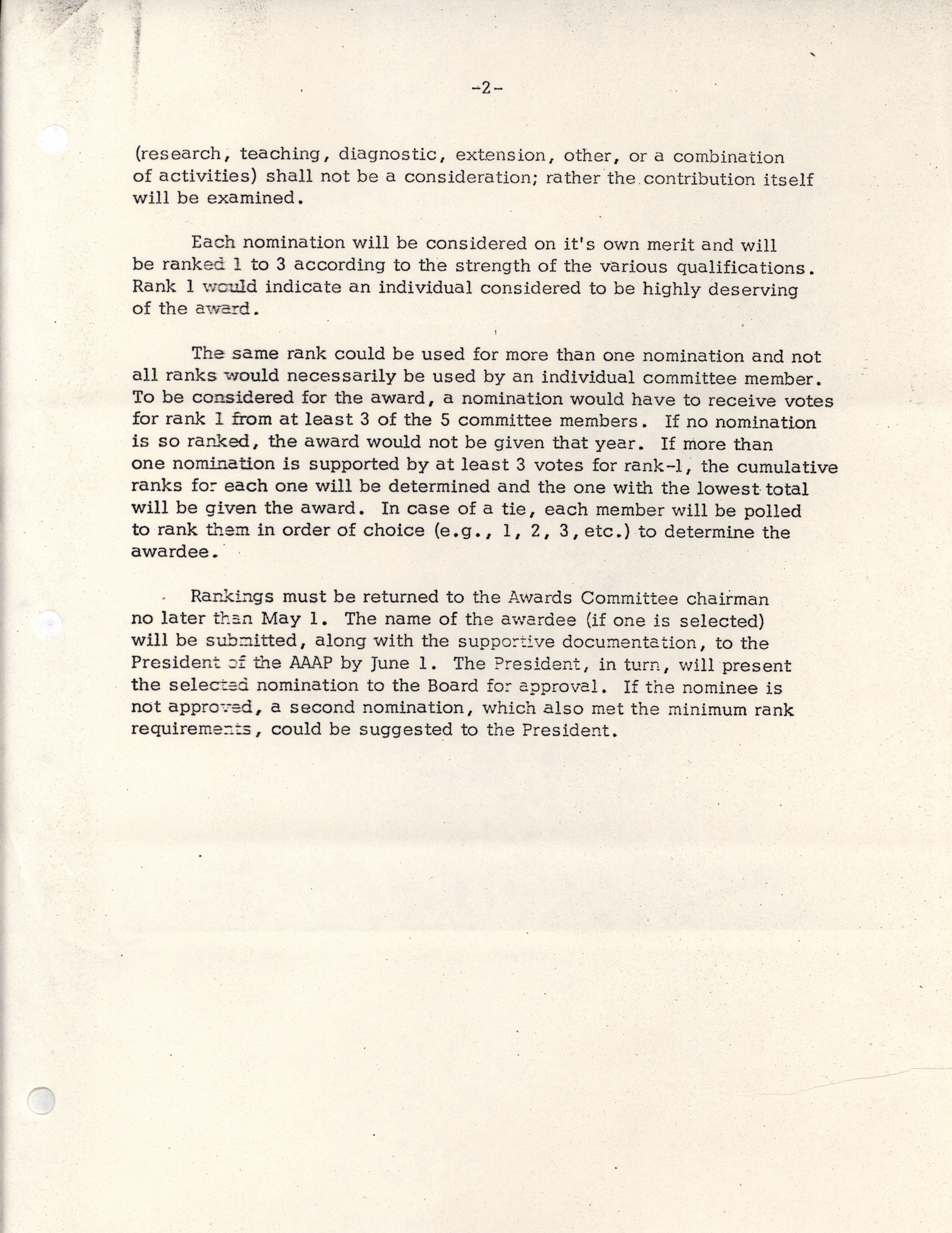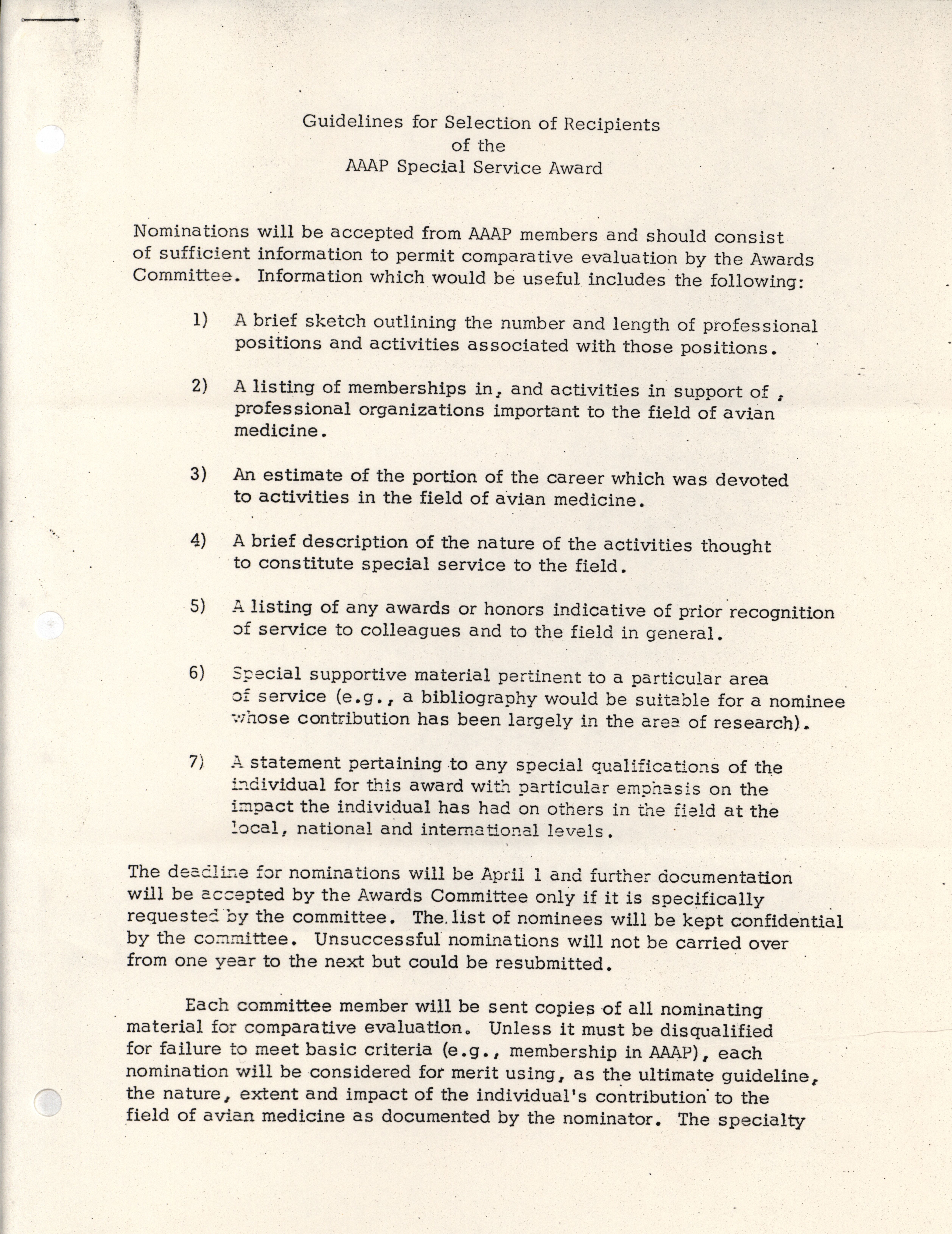 - American Association of Avian Pathologists guidelines for selection of recipients of the special service award