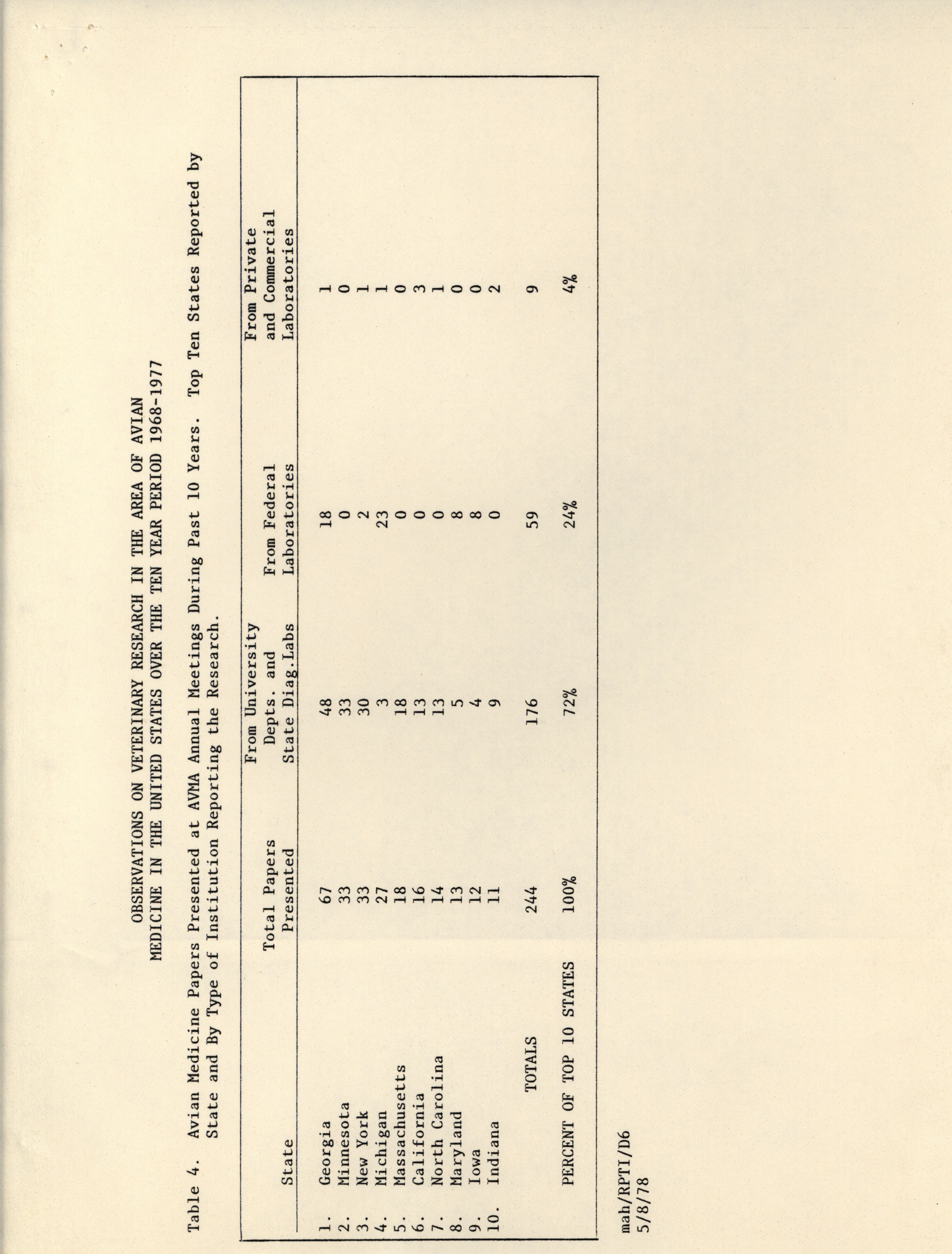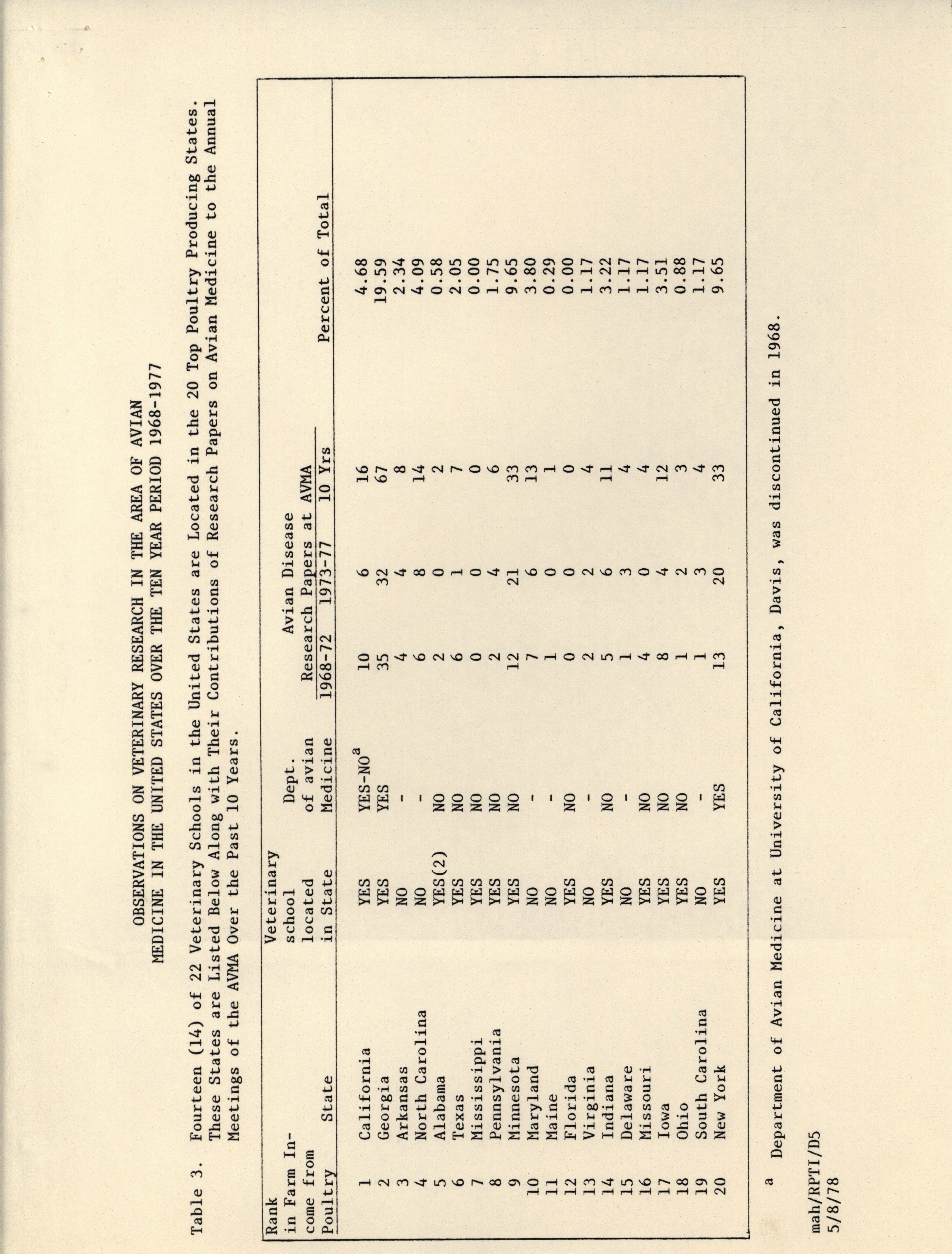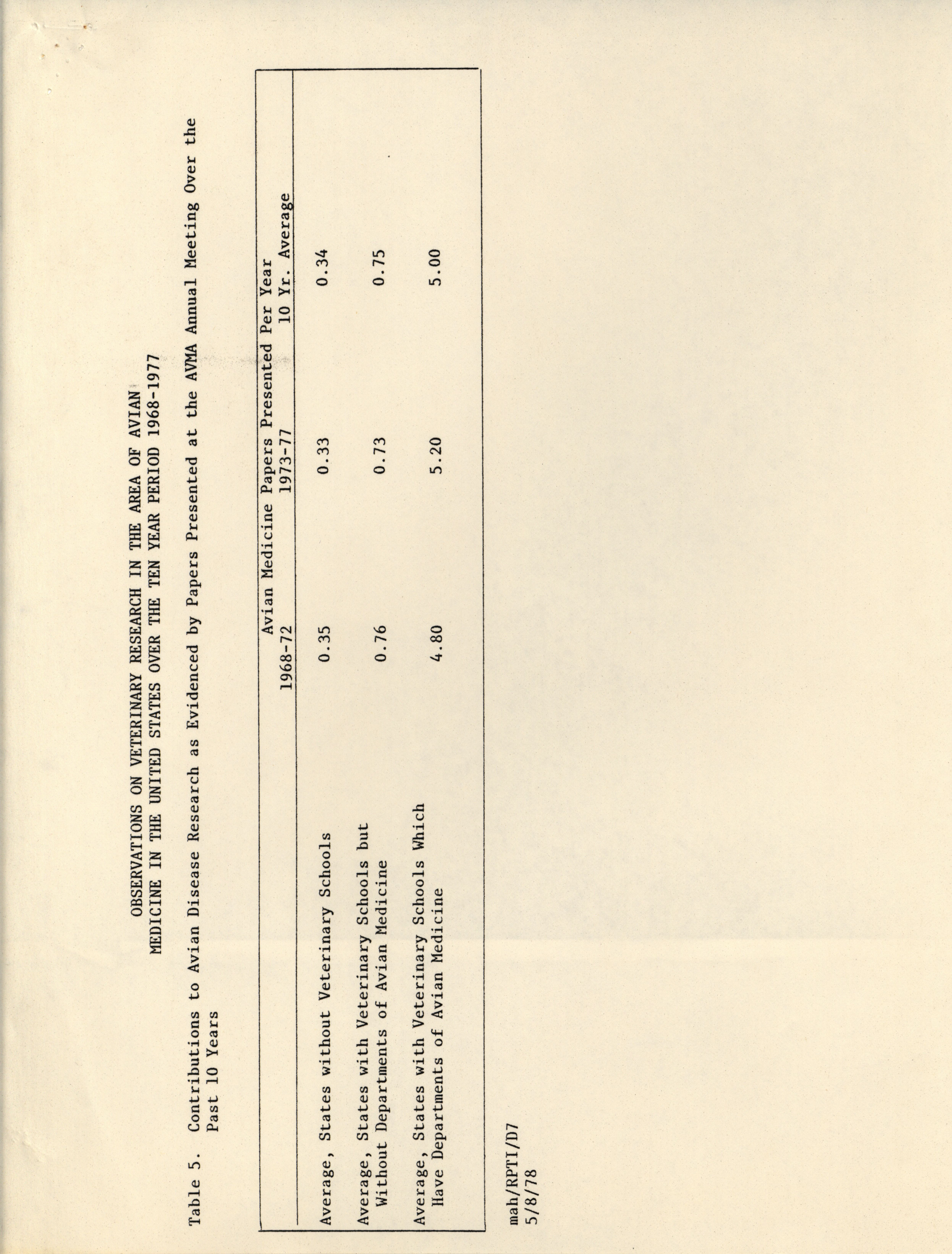 - Charts showing observations on veterinary research in the area of avian medicine in the United States over the ten-year period 1968-1977