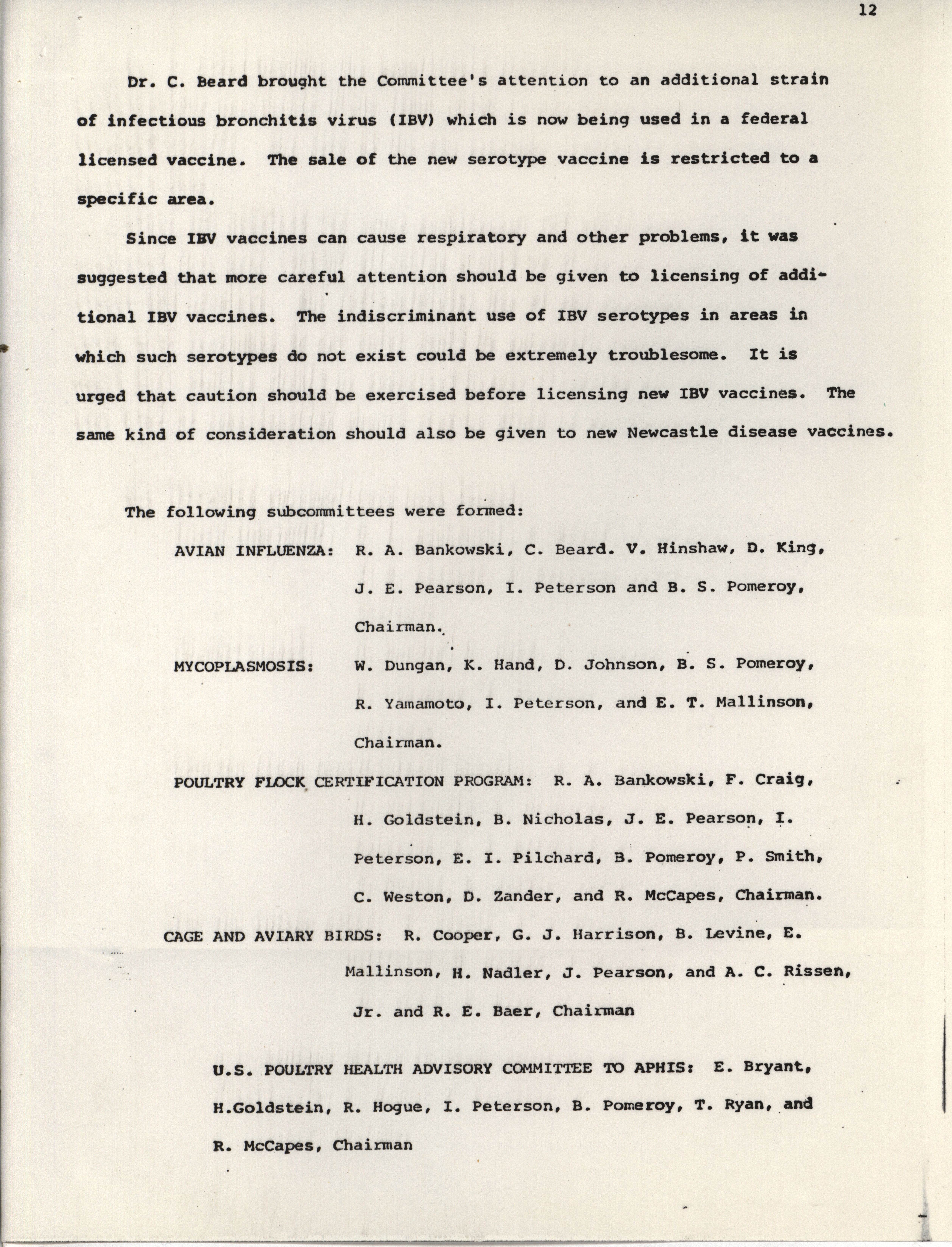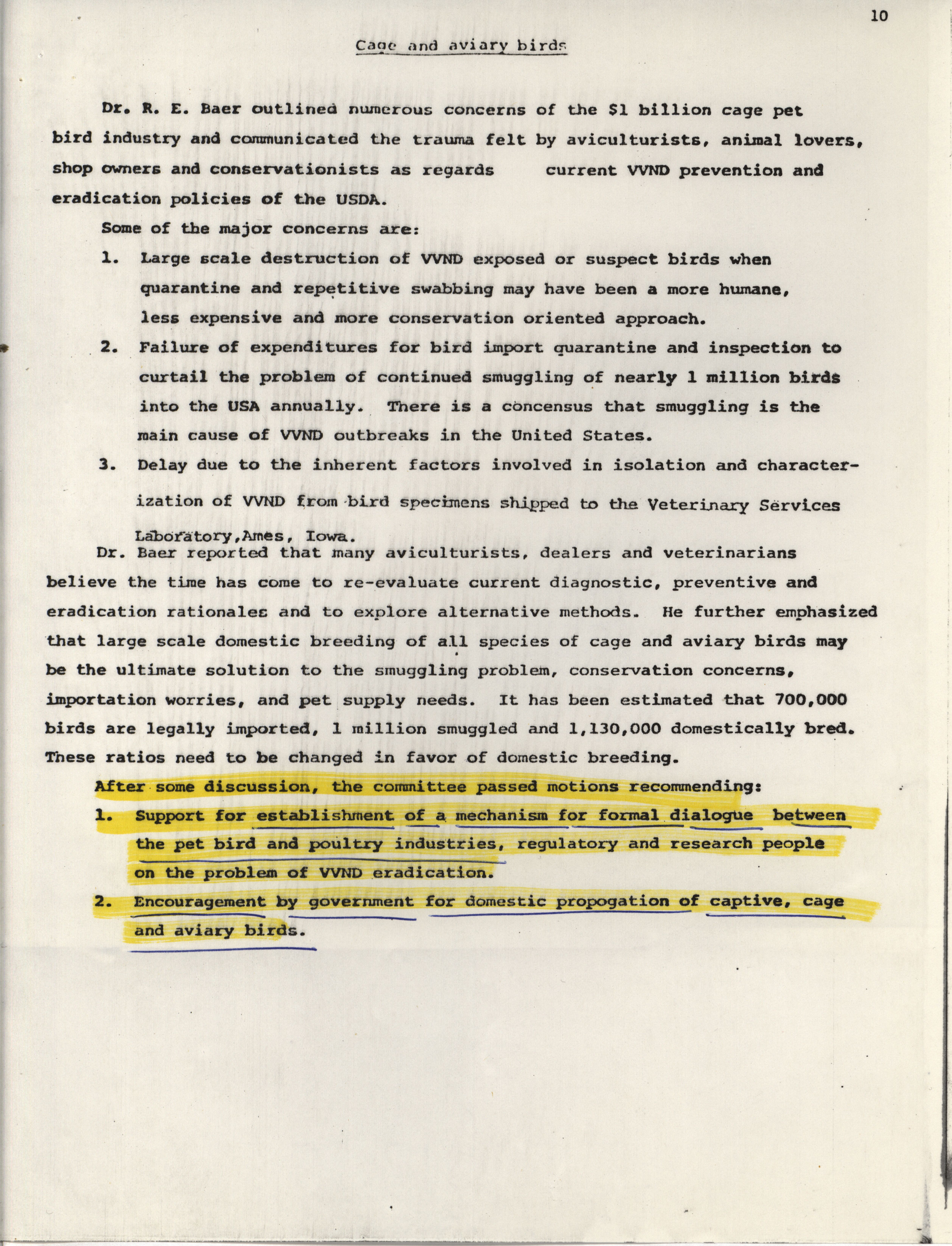 - Report describing the actions, goals and topics of research for the American Association of Avian Pathologists Cage and Aviary Birds committee.