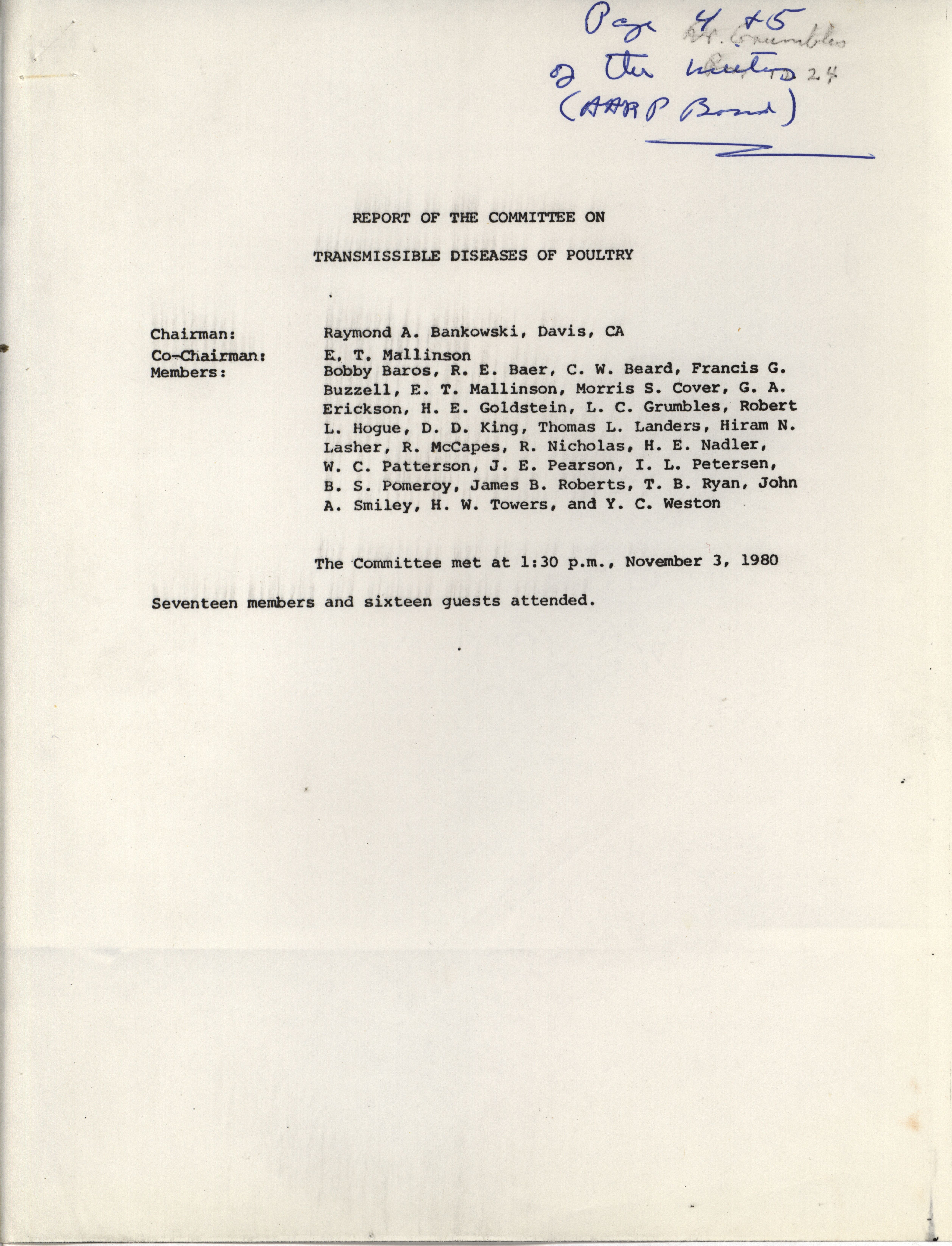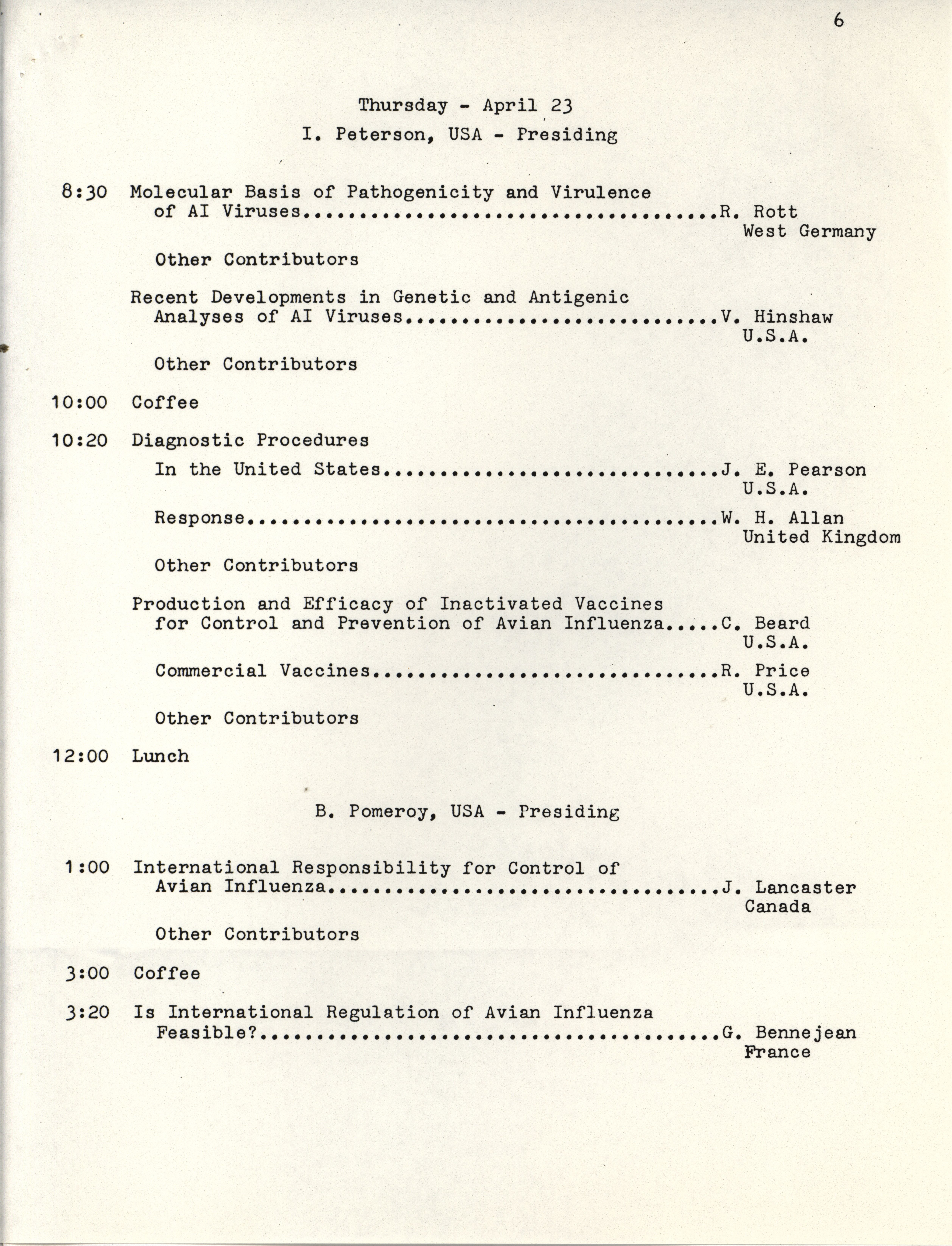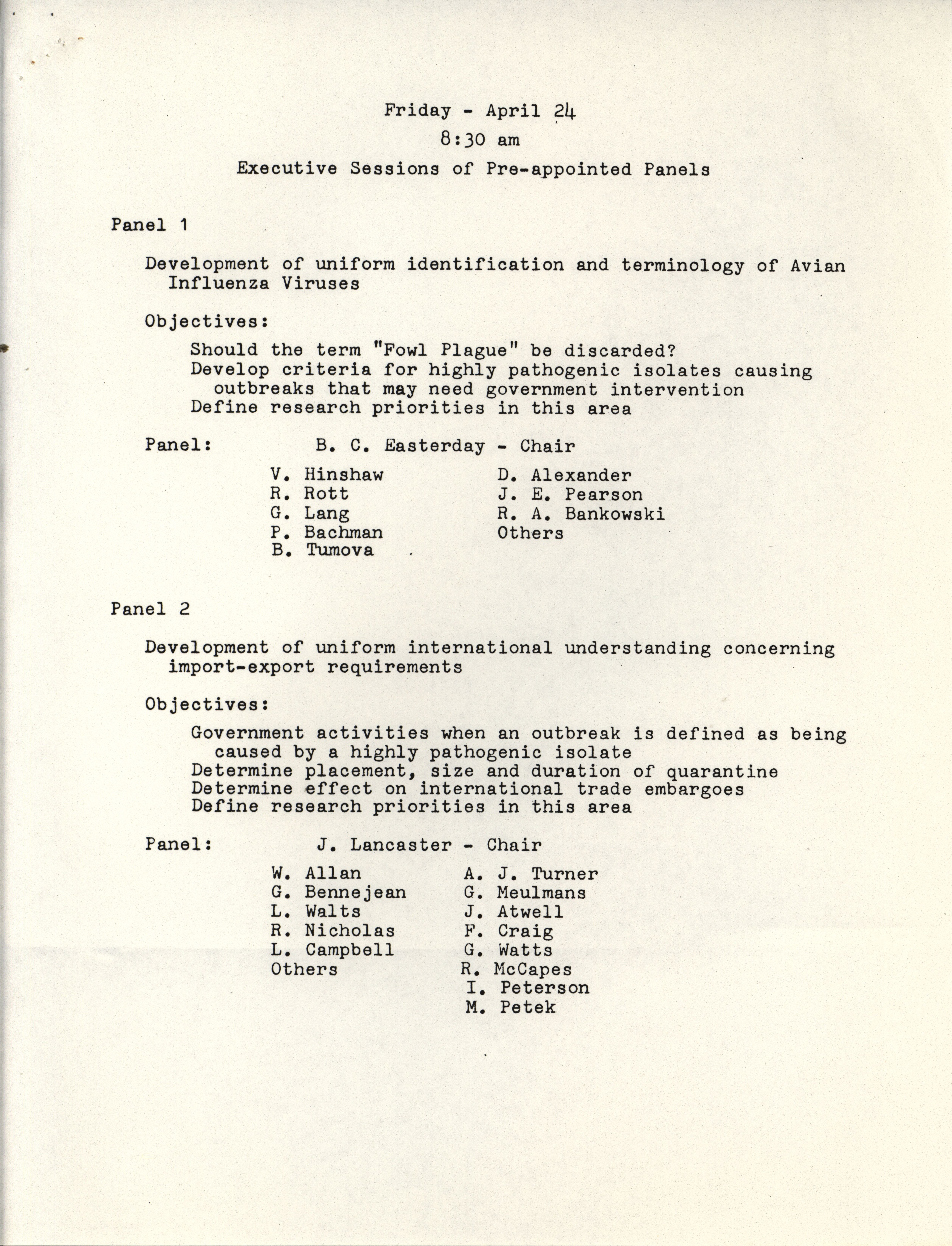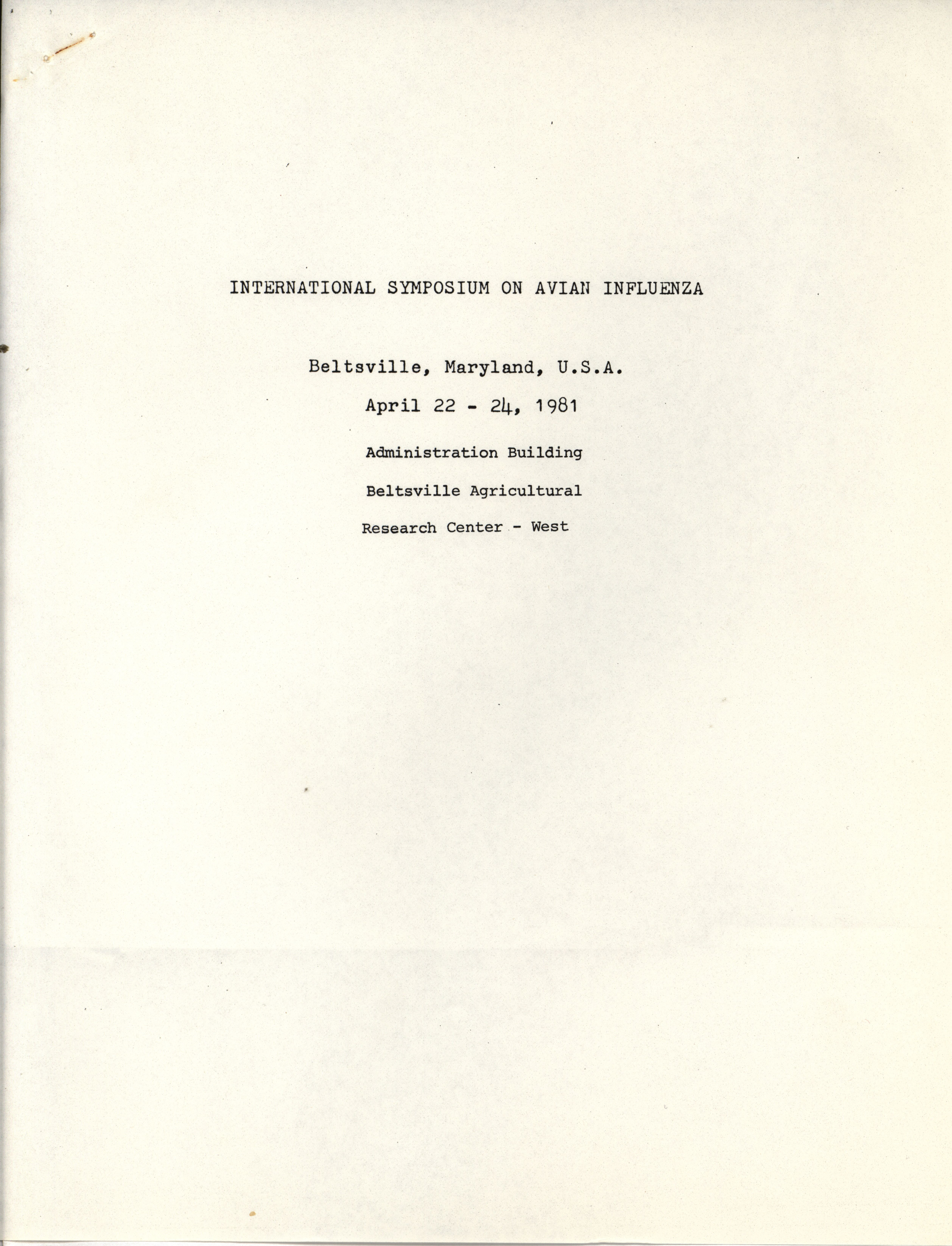 - "American Association of Avian Pathologists international symposium on avian influenza, April 22-24, 1981", American Association of Avian Pathologists Collection, Iowa State University Library Digital Collections