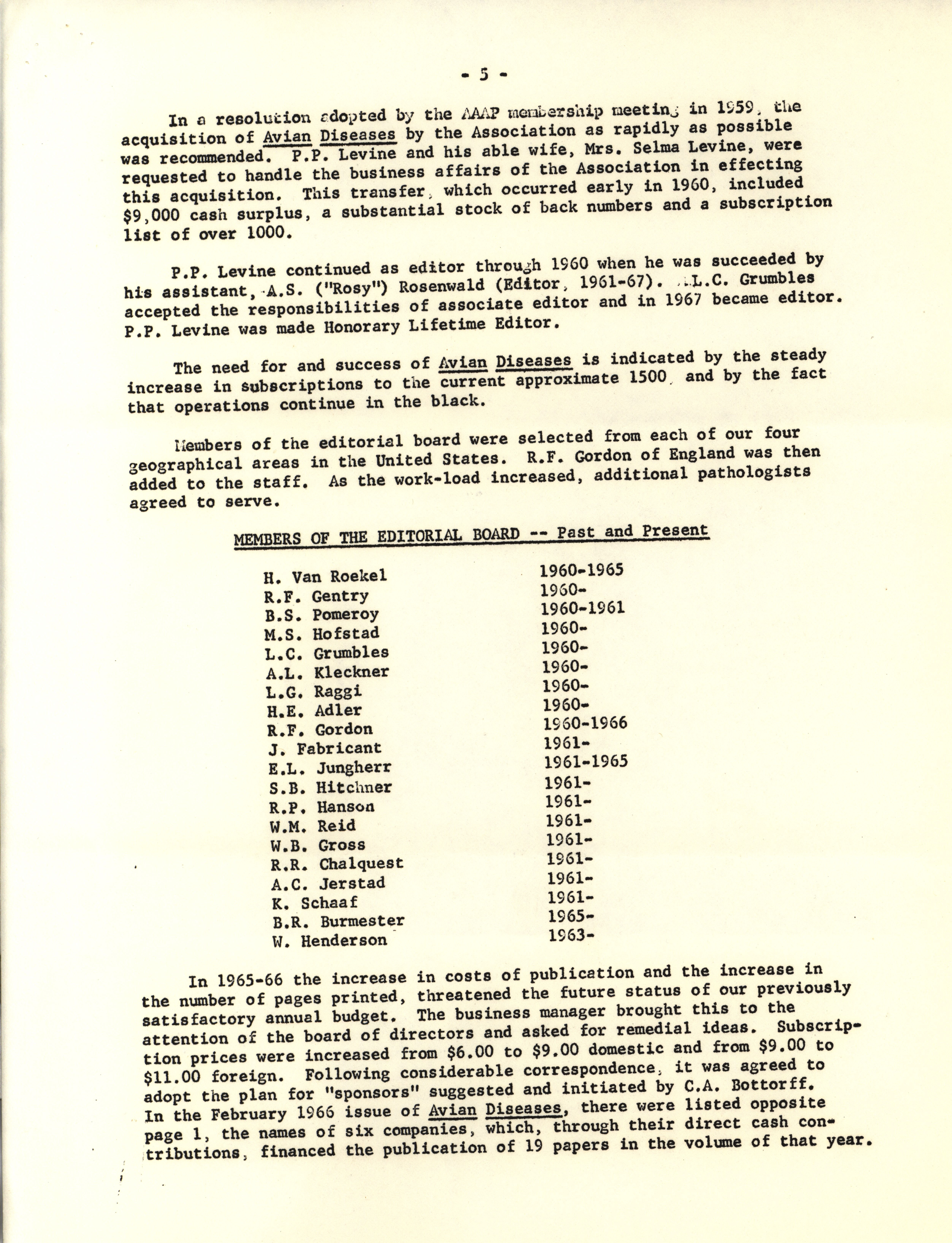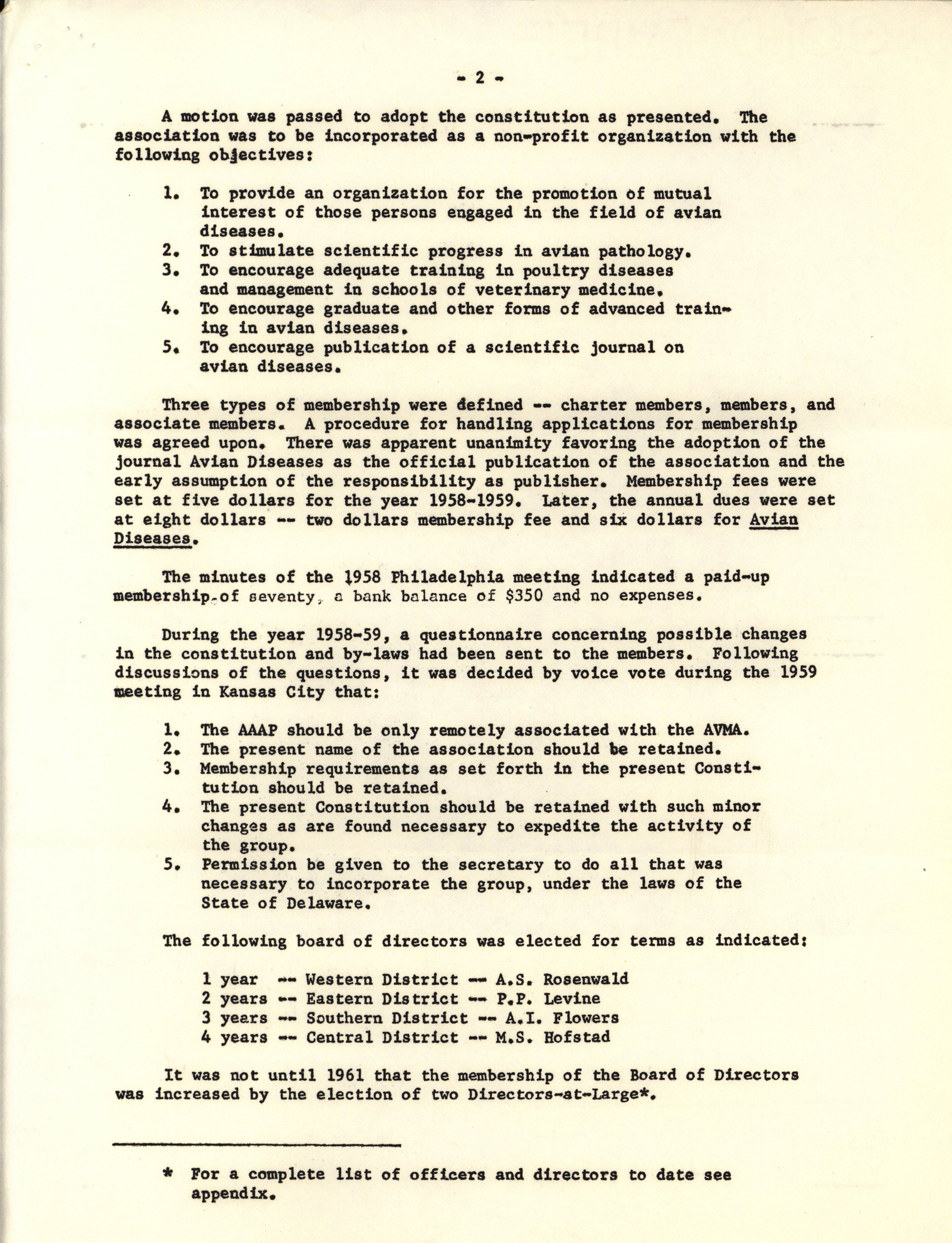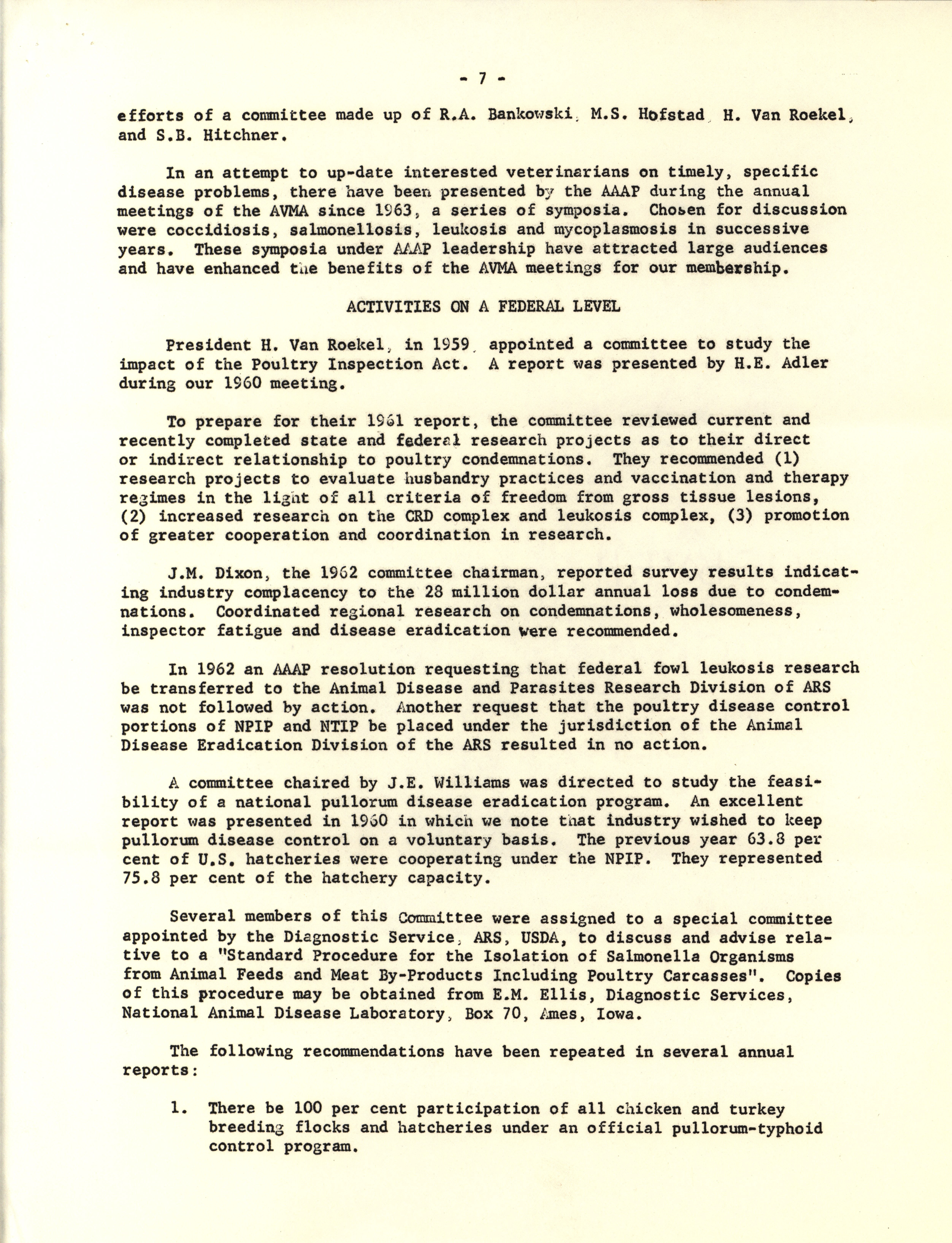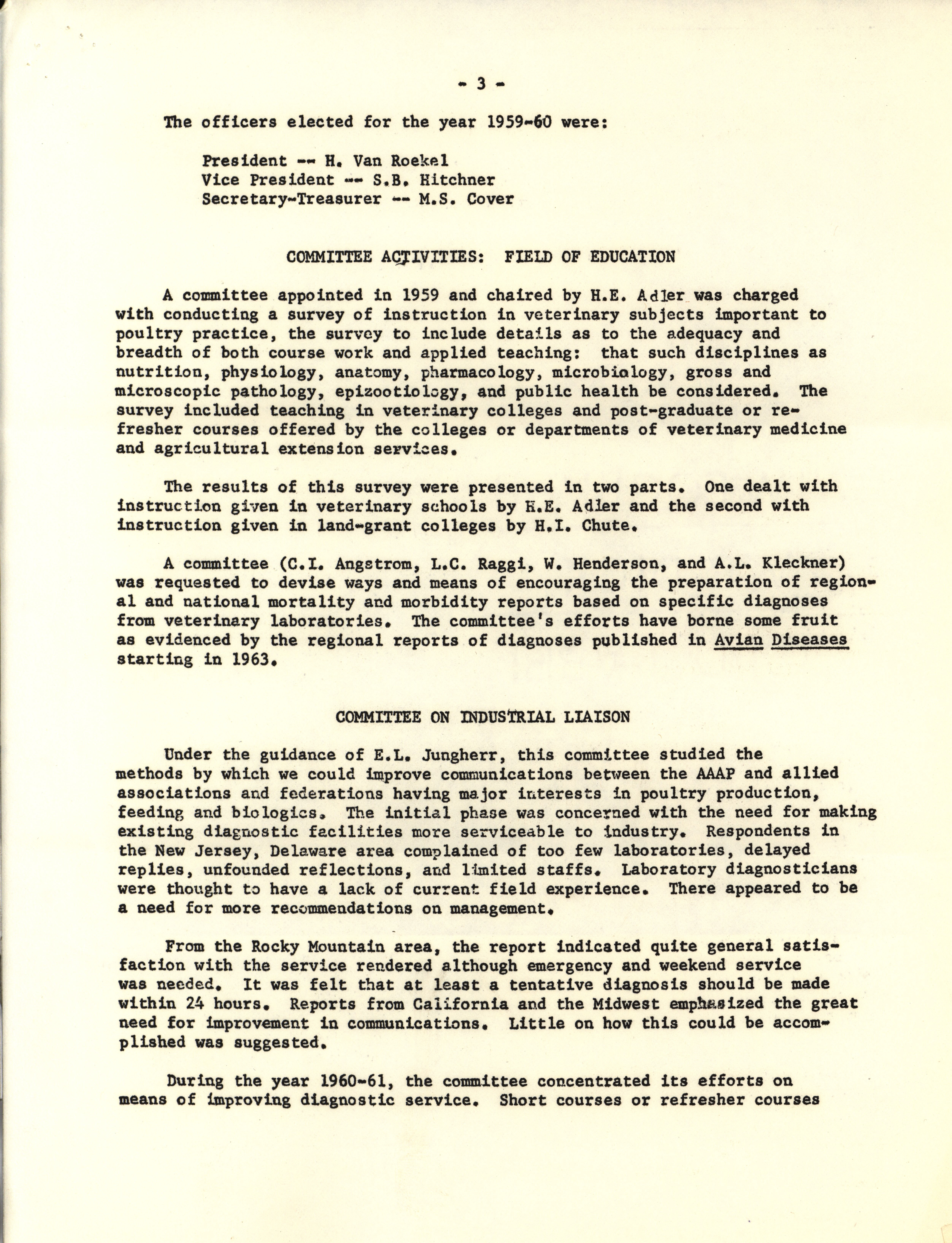 - "History of the first ten years of the American Association of Avian Pathologists, 1957-1967", American Association of Avian Pathologists Collection, Iowa State University Library Digital Collections