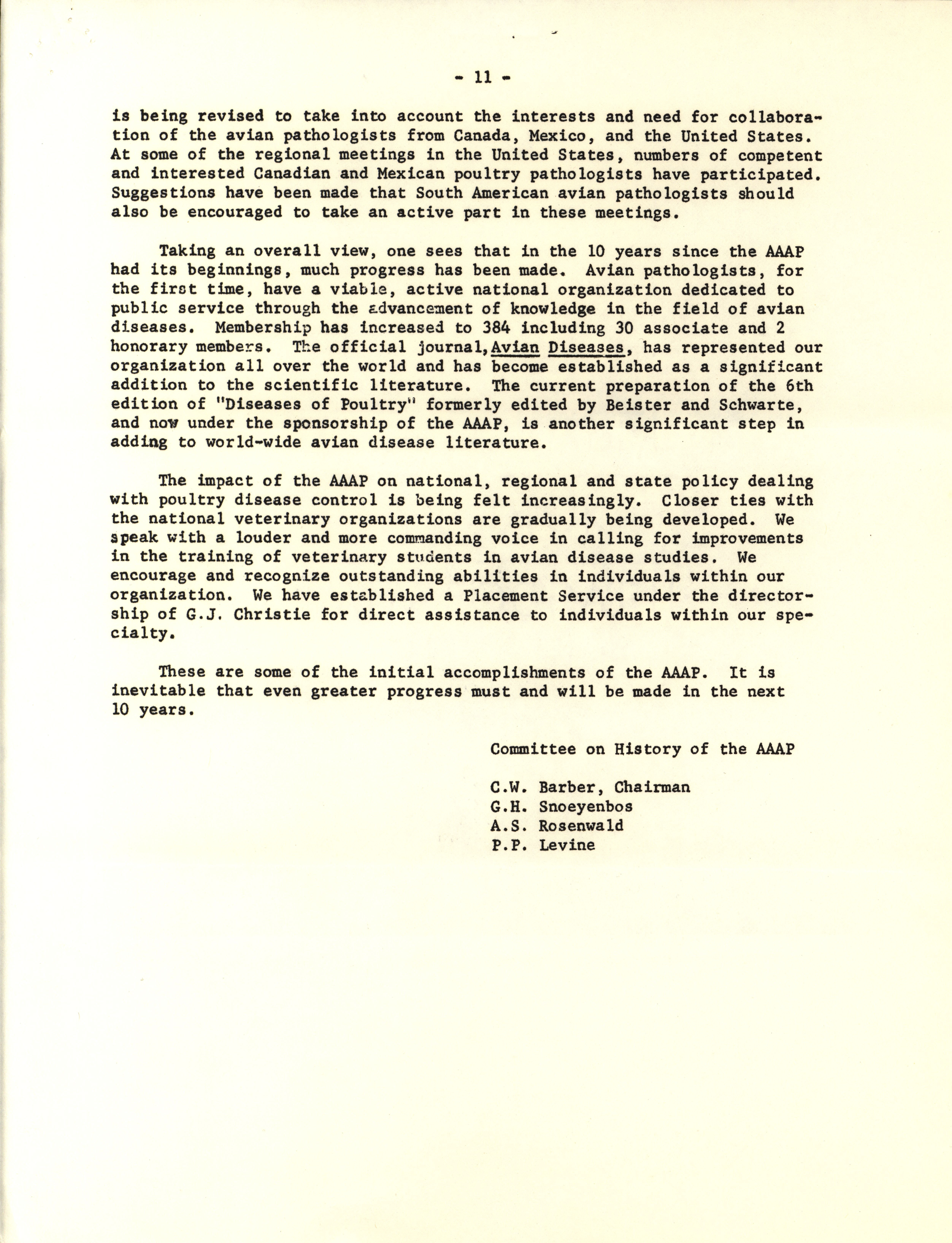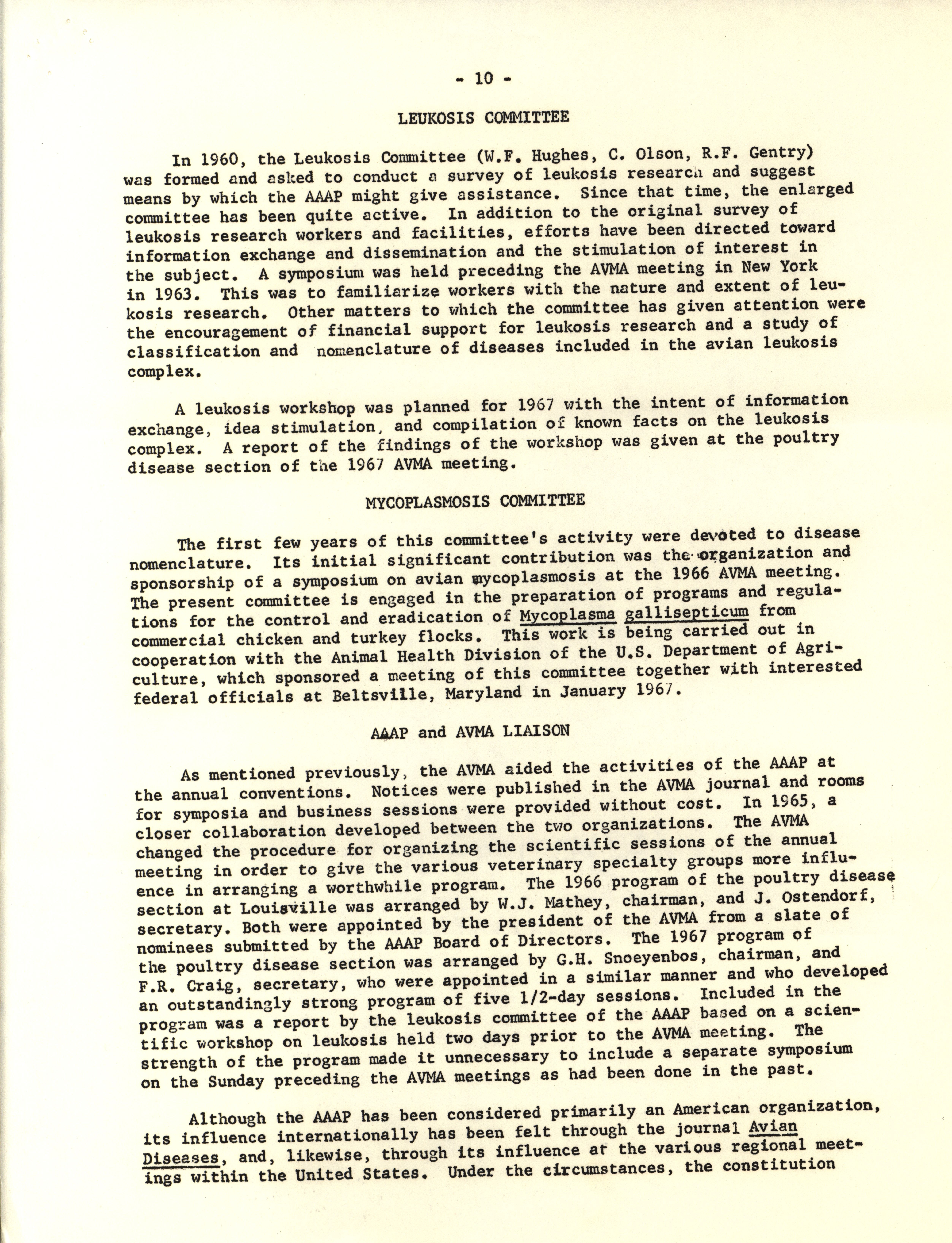 - A written history of the American Association of Avian Pathologists' first ten years from 1957-1967, including the founding and administration changes.