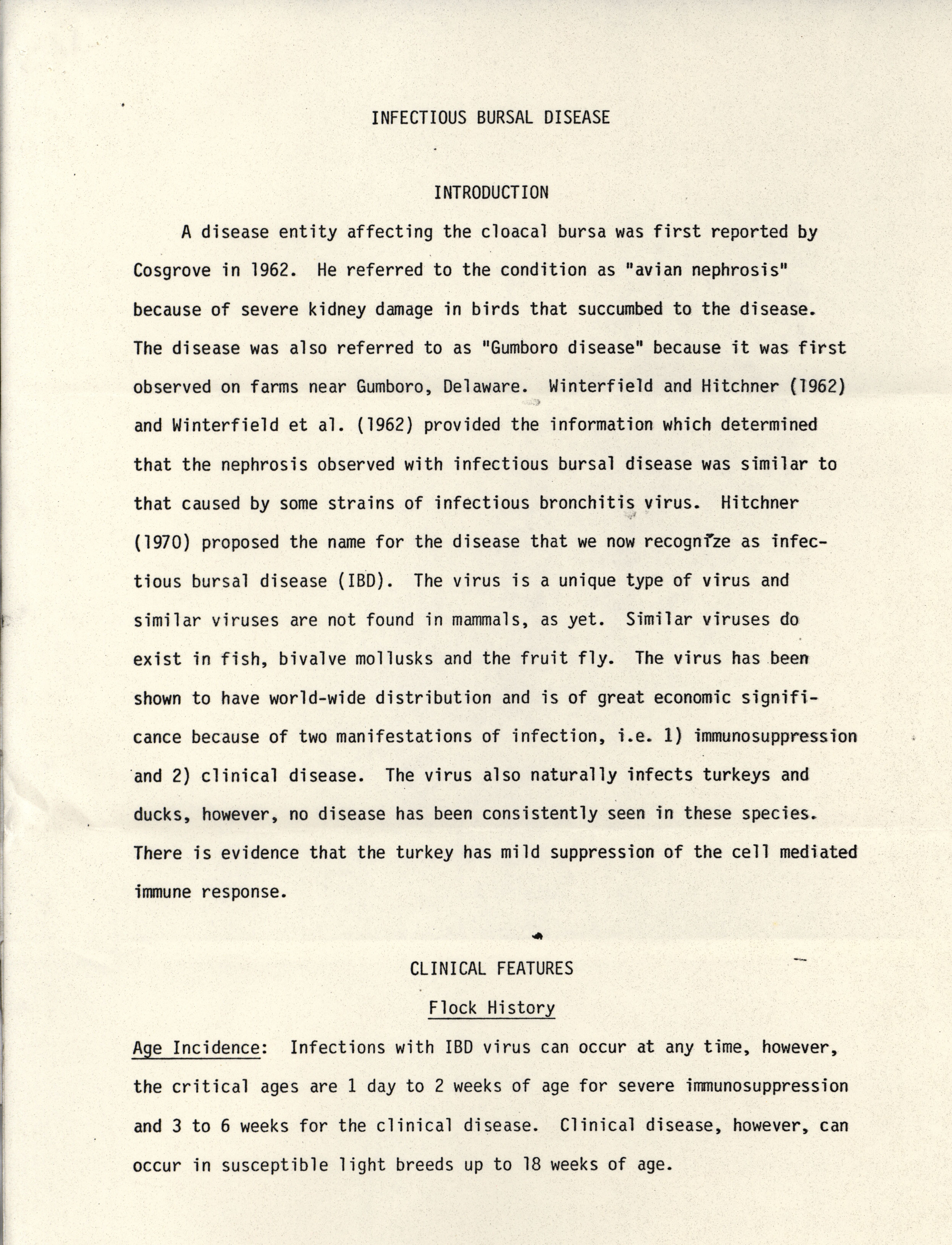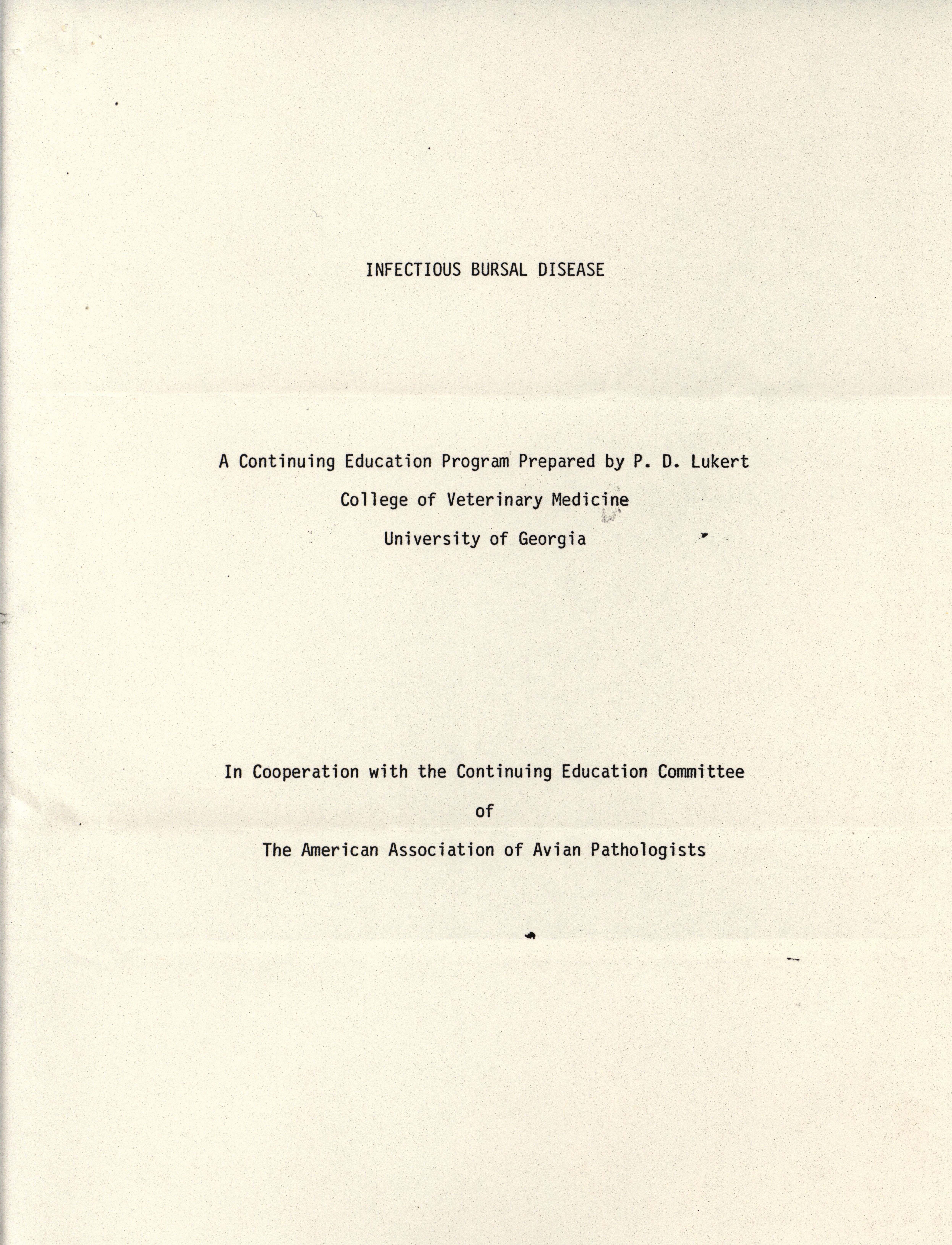 - "American Association of Avian Pathologists infectious bursal disease continuing education program", American Association of Avian Pathologists Collection, Iowa State University Library Digital Collections