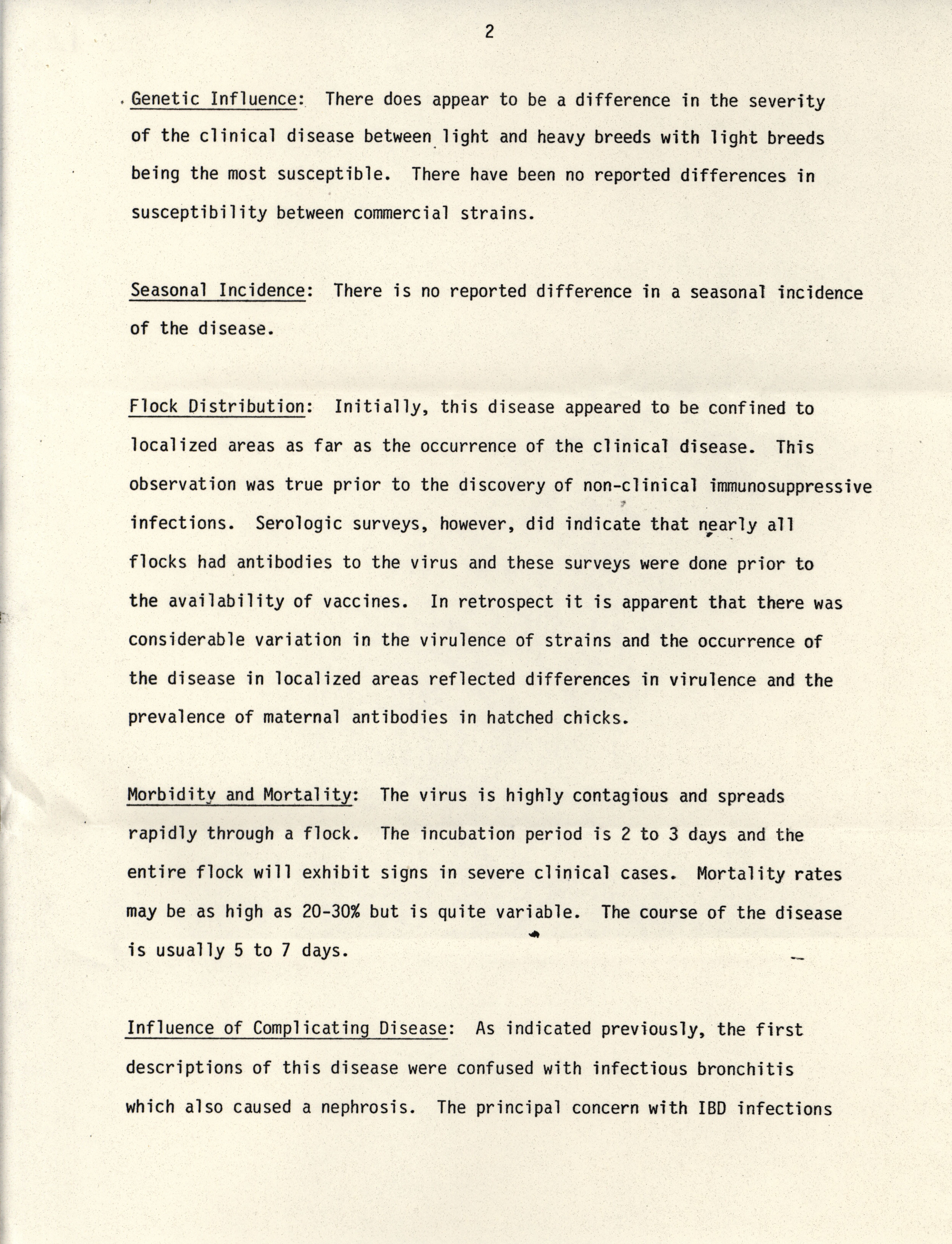 - A continuing education program on the infectious bursal disease in avian, including circumstances in which it occurs and treatment.