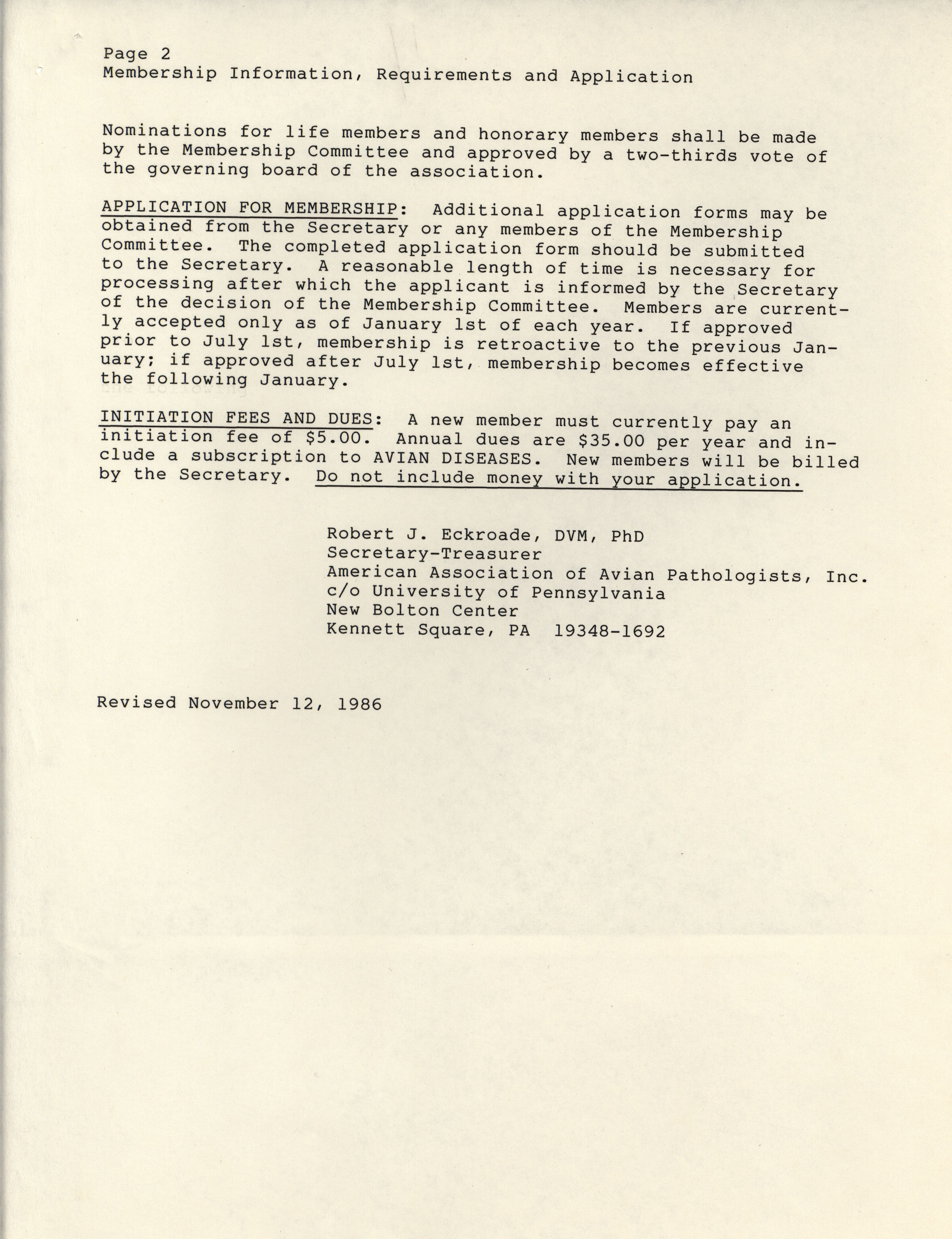 - Flier detailing membership information, requirements and application process for membership in the American Association of Avian Pathologists.