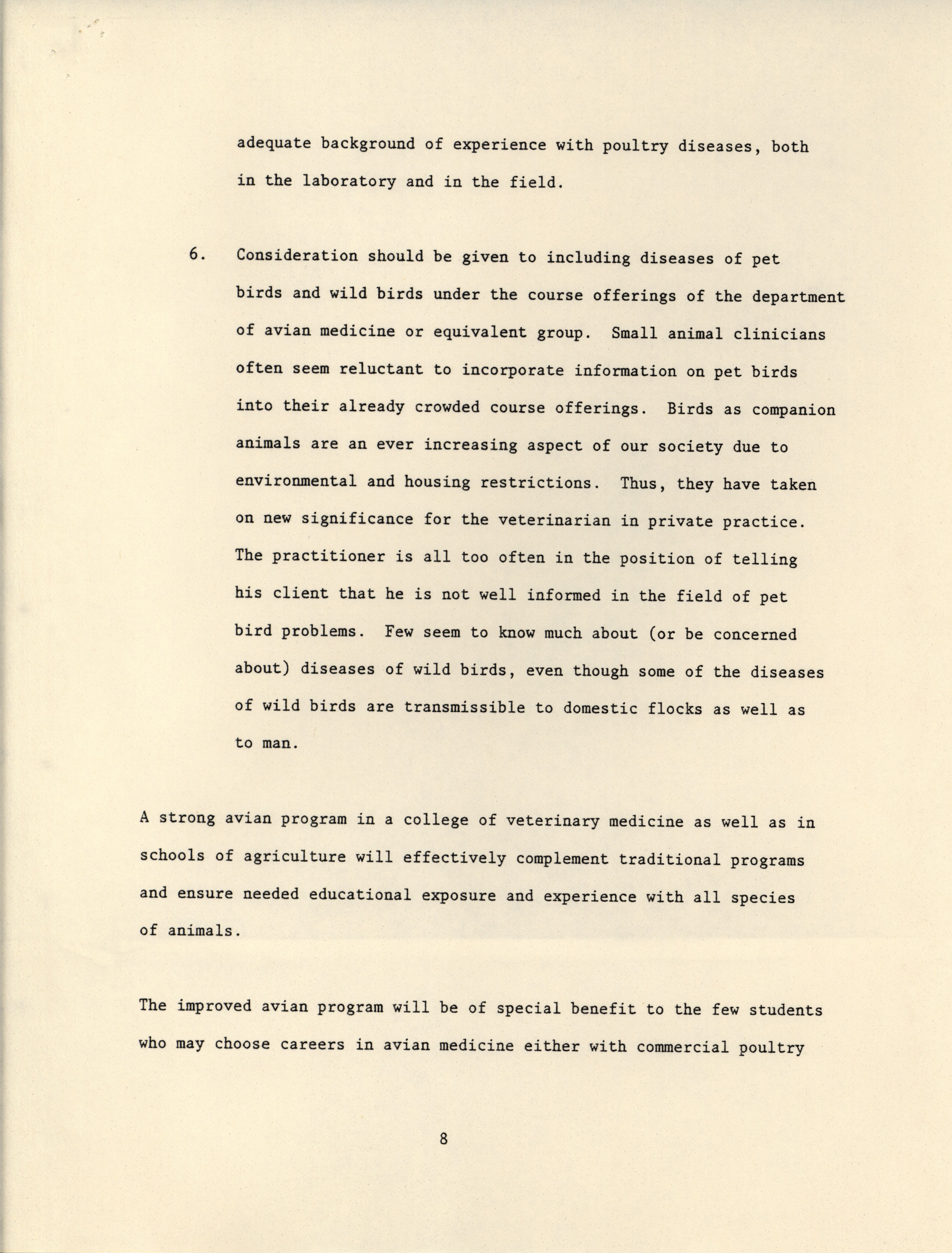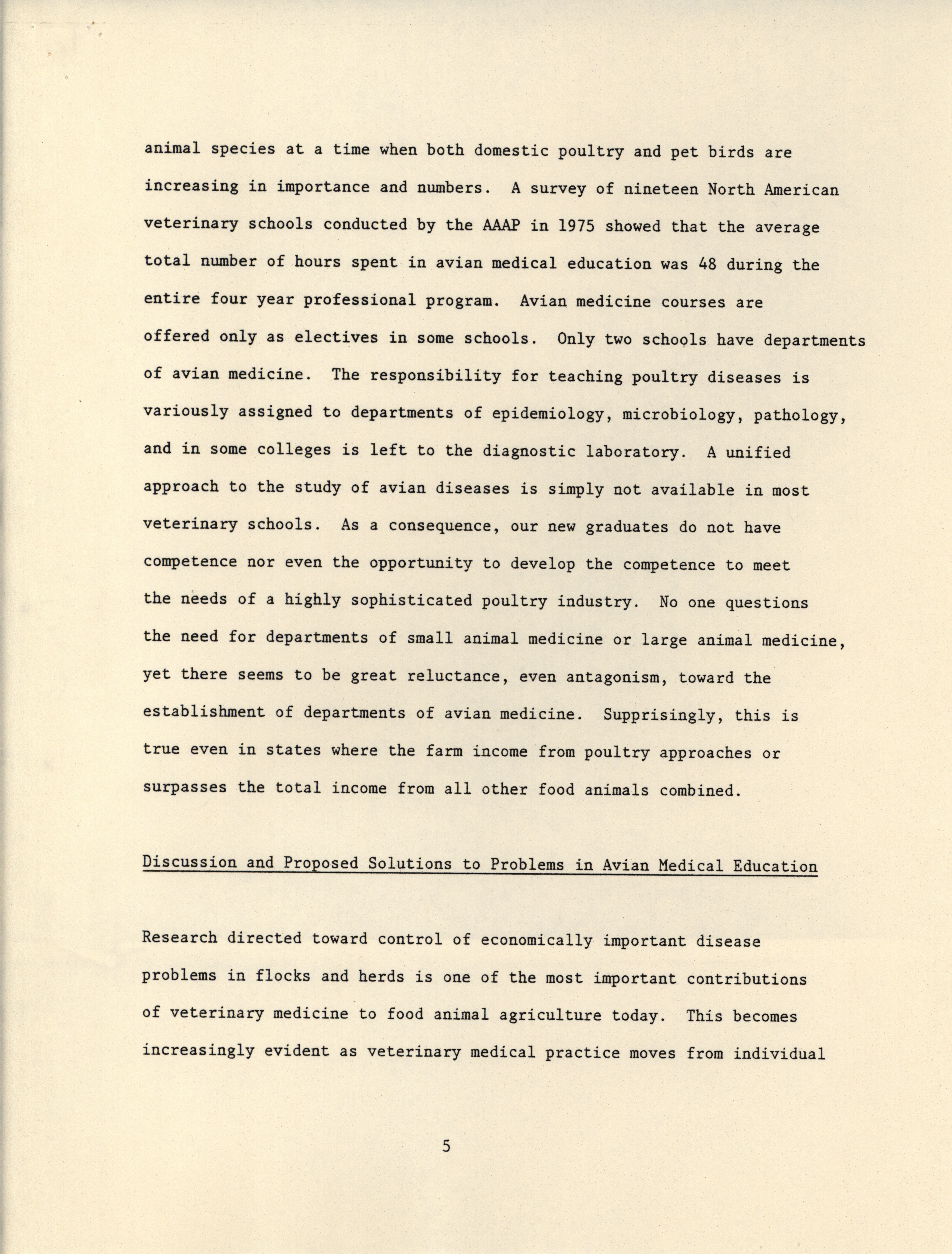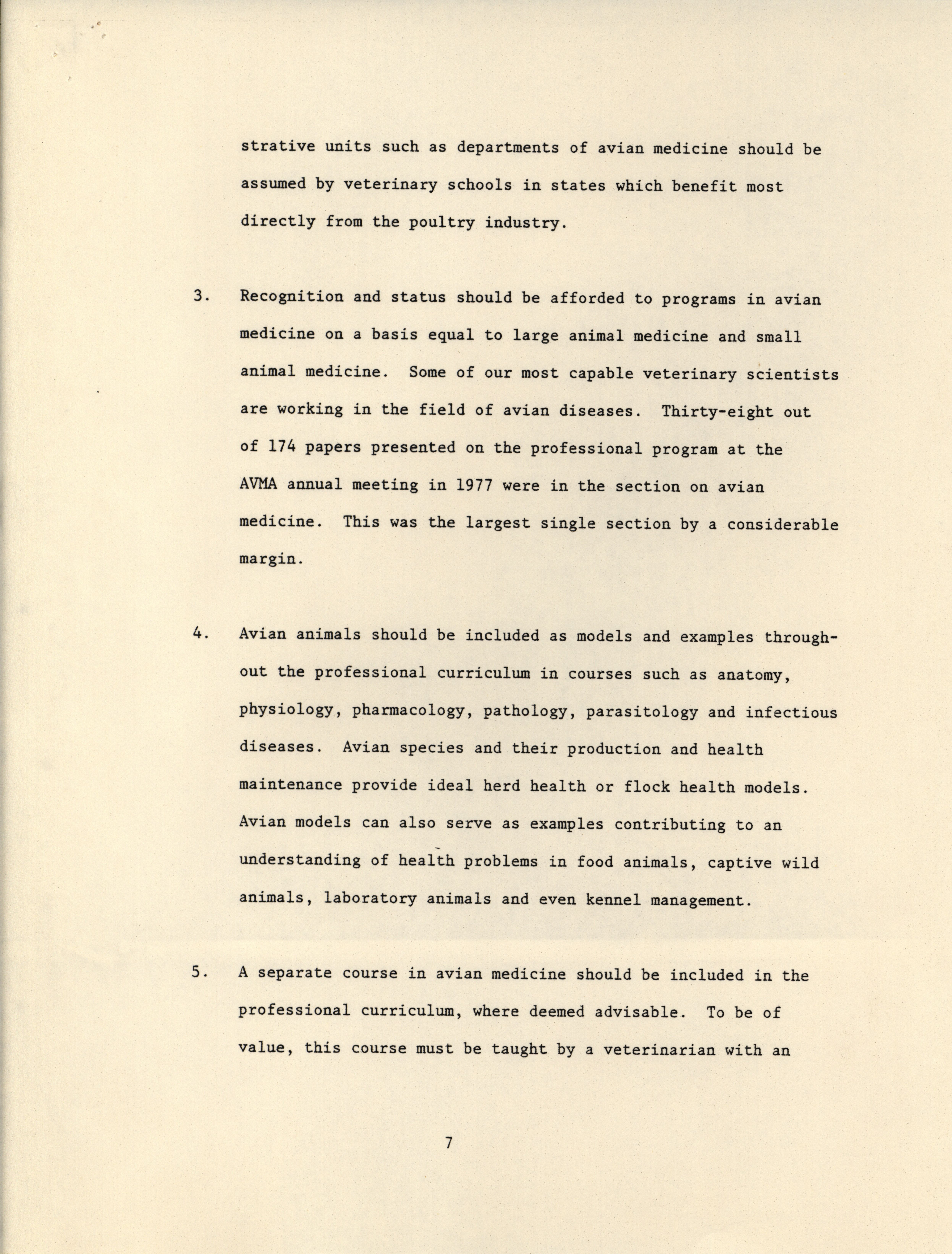 - Position paper arguing for a greater emphasis on avian medical education in veterinary schools, prepared by the Continuing Education Committee of the American Association of Avian Pathologists.