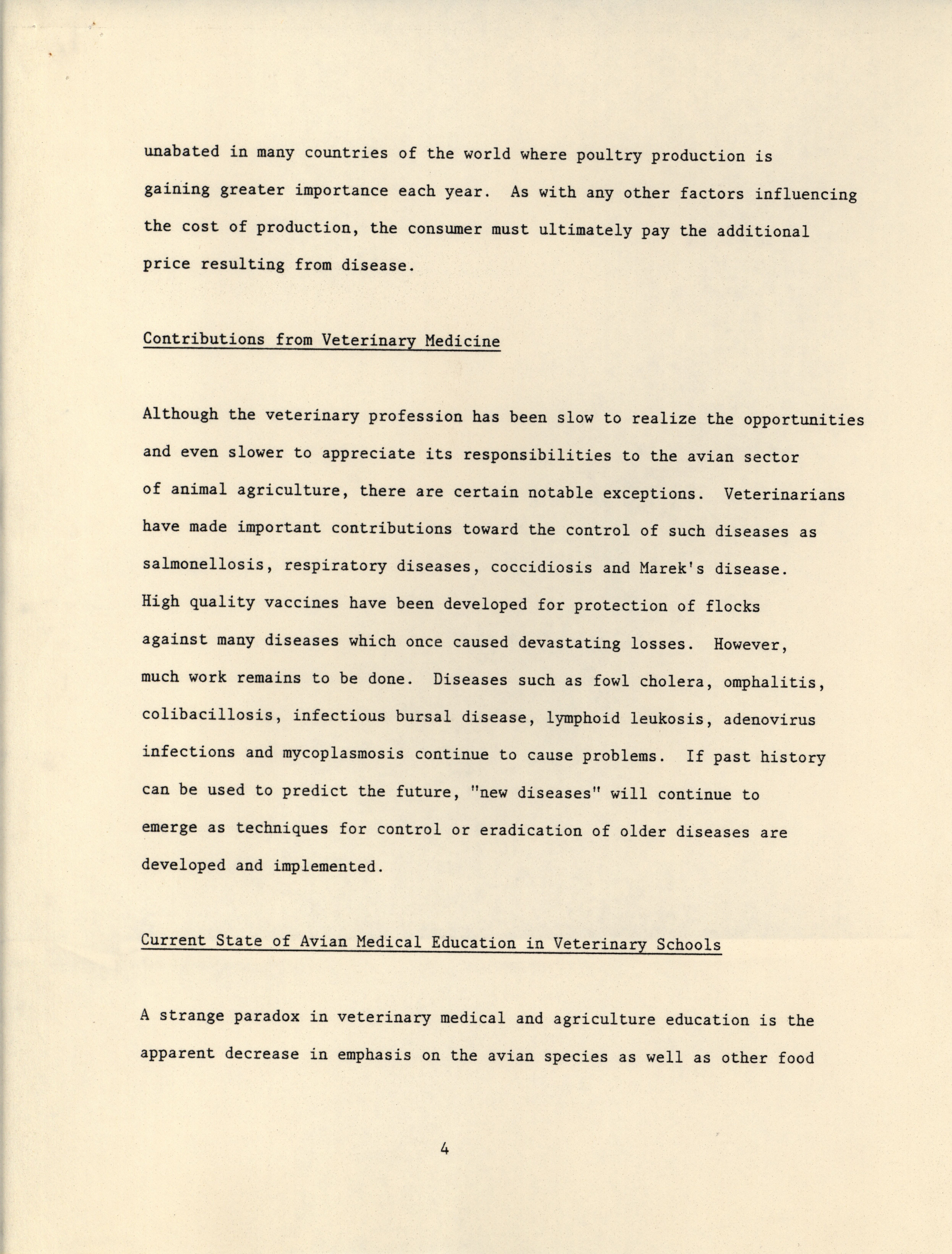- "American Association of Avian Pathologists committee on continuing education position paper on avian medical education", American Association of Avian Pathologists Collection, Iowa State University Library Digital Collections