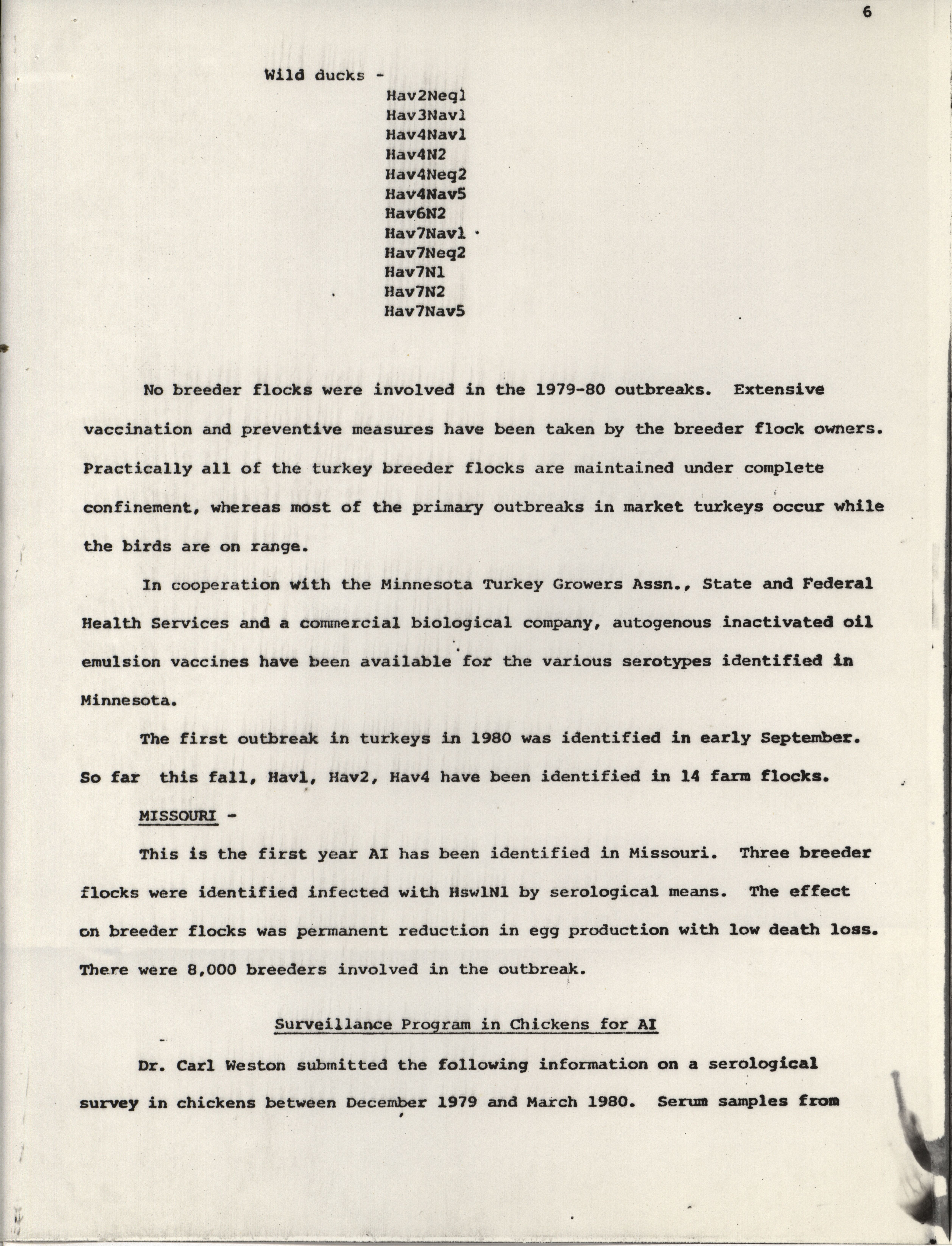 - Report detailing avian influenza outbreaks from 1979-1980 and describing recent research on the disease.
