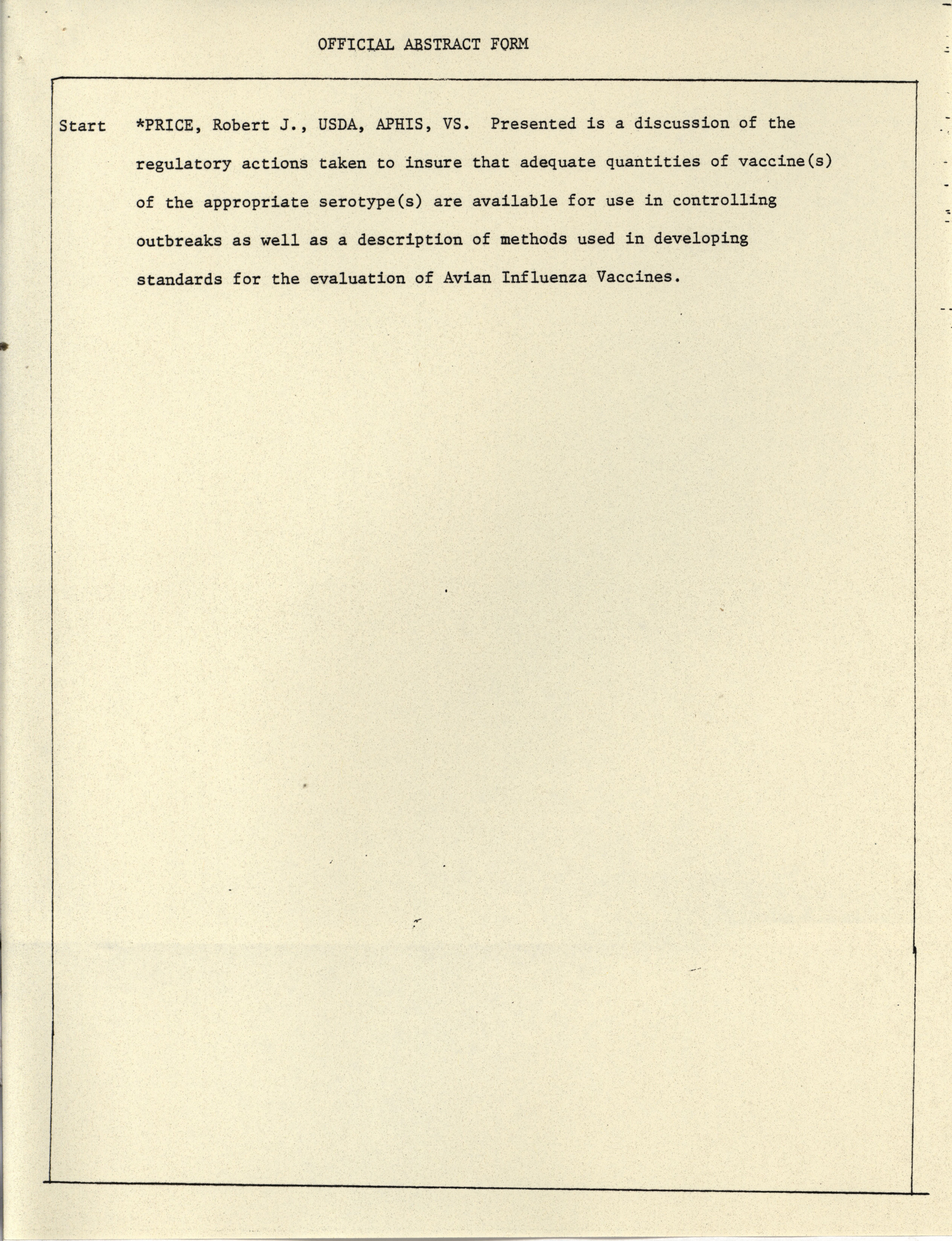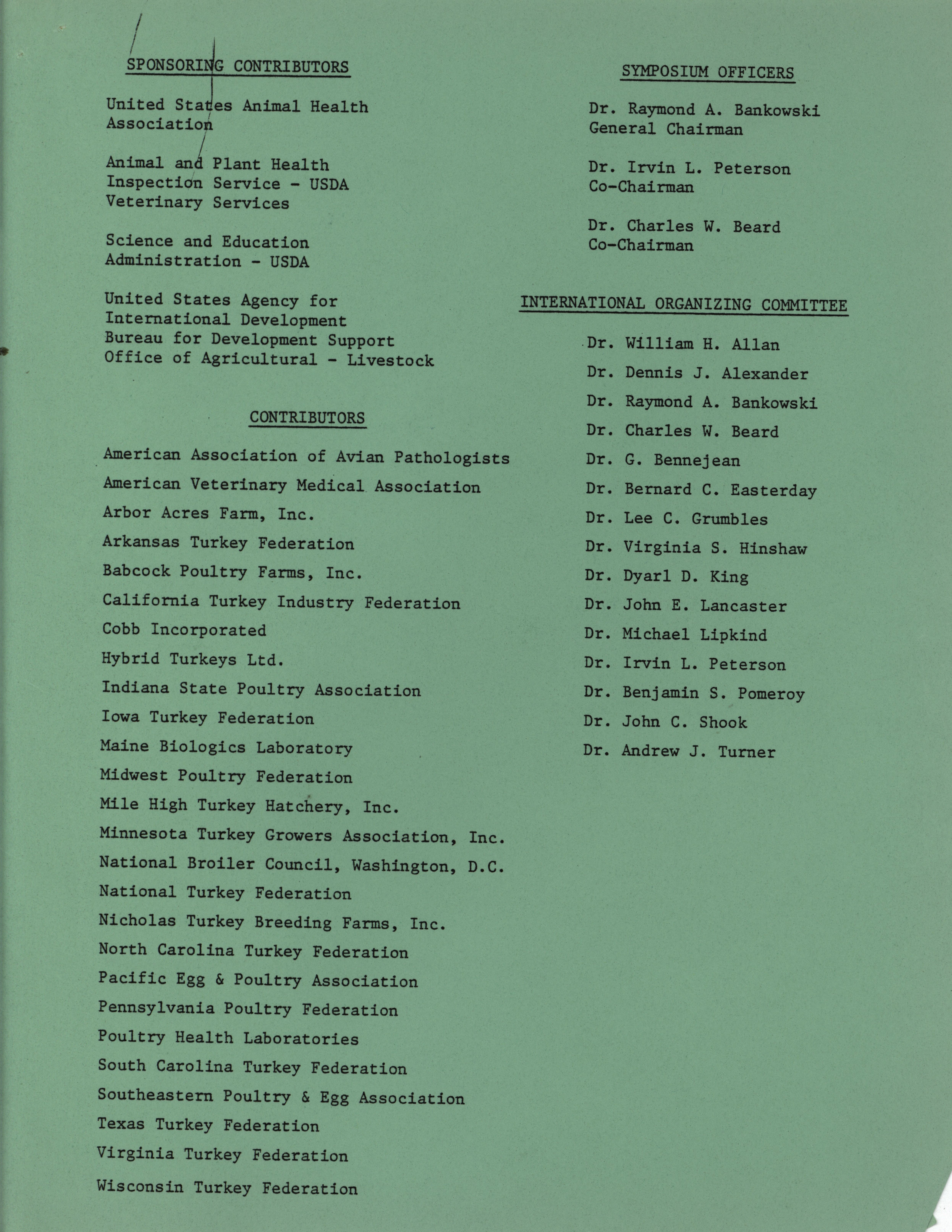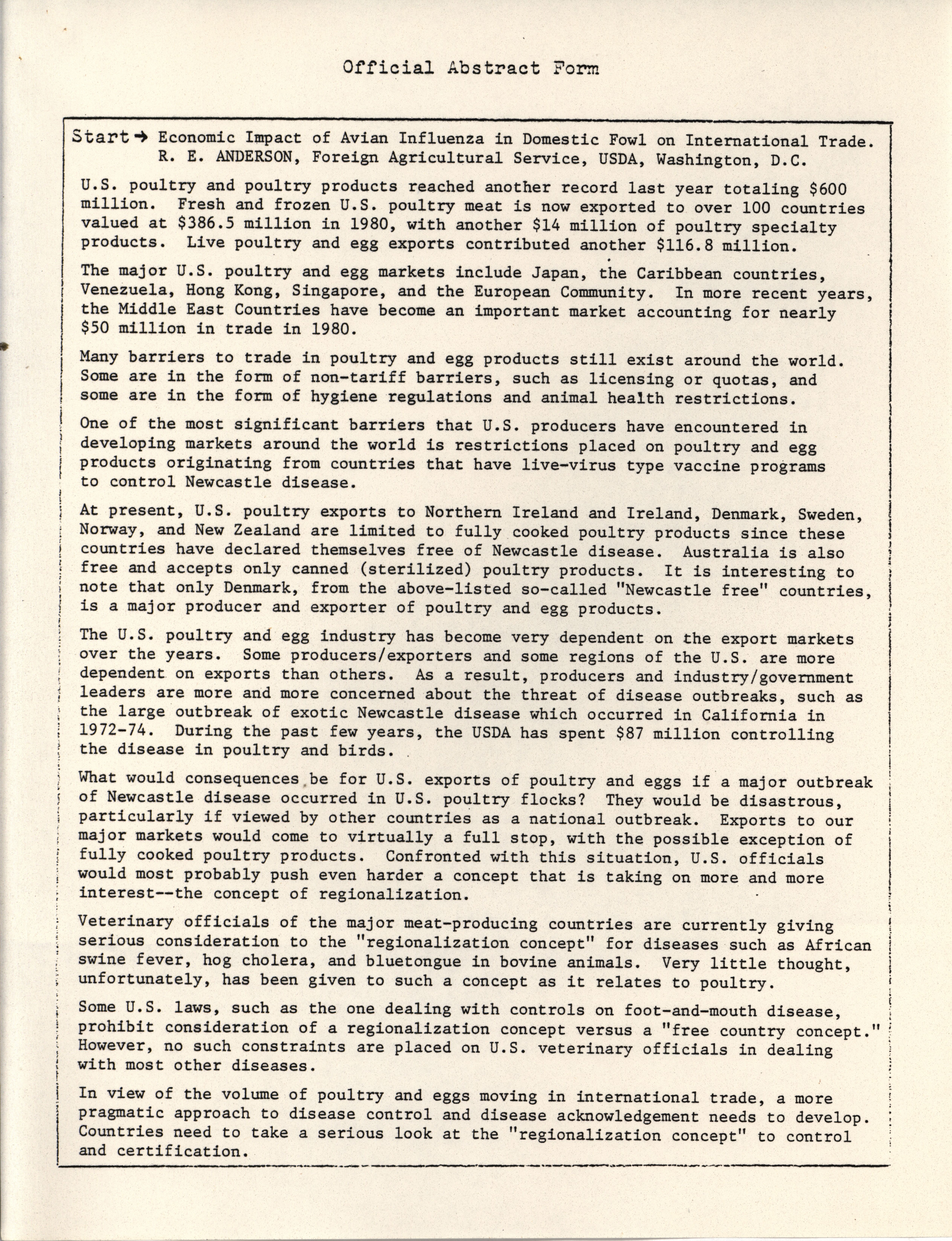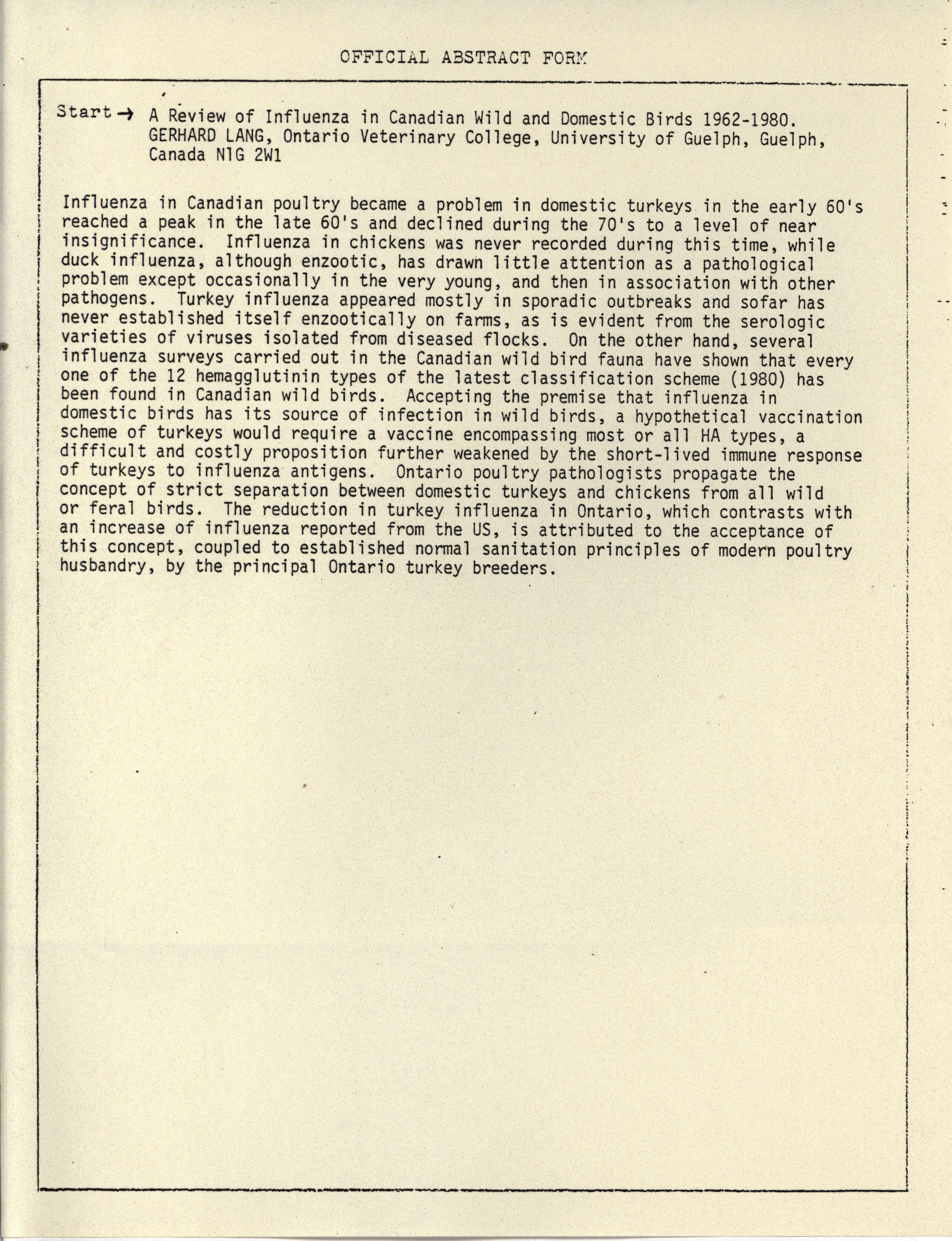 - "American Association of Avian Pathologists first international symposium on avian influenza abstracts, April 22-24, 1981", American Association of Avian Pathologists Collection, Iowa State University Library Digital Collections