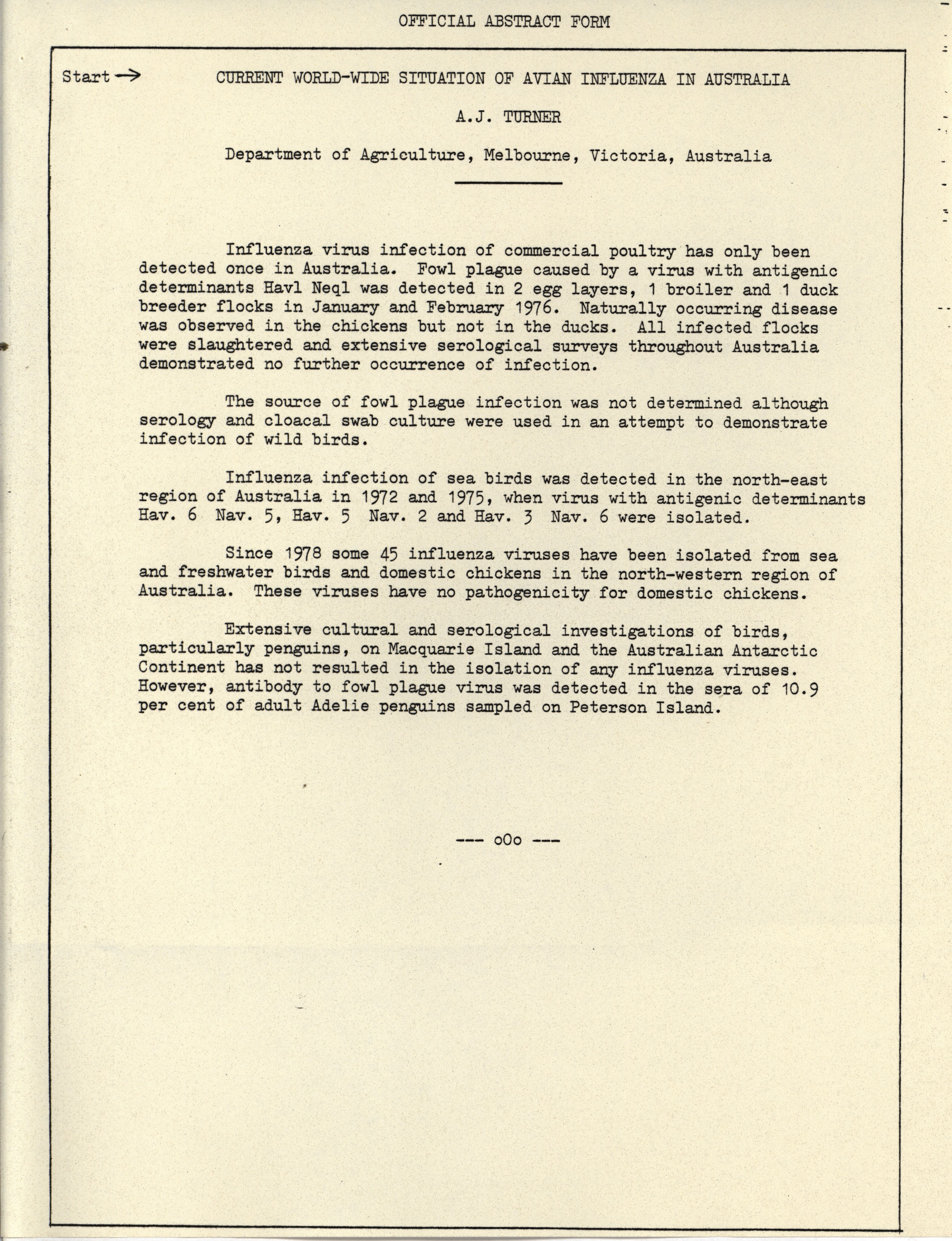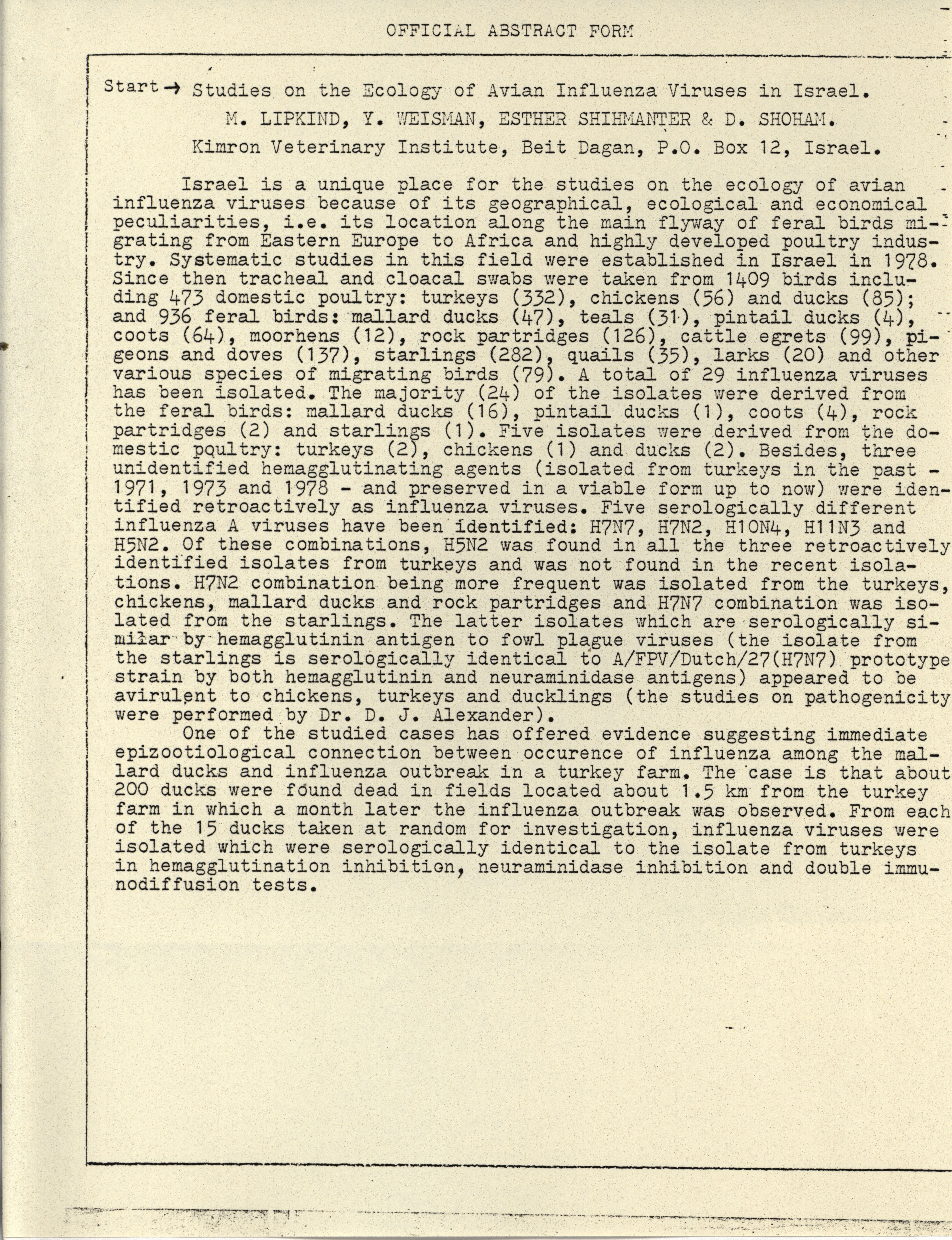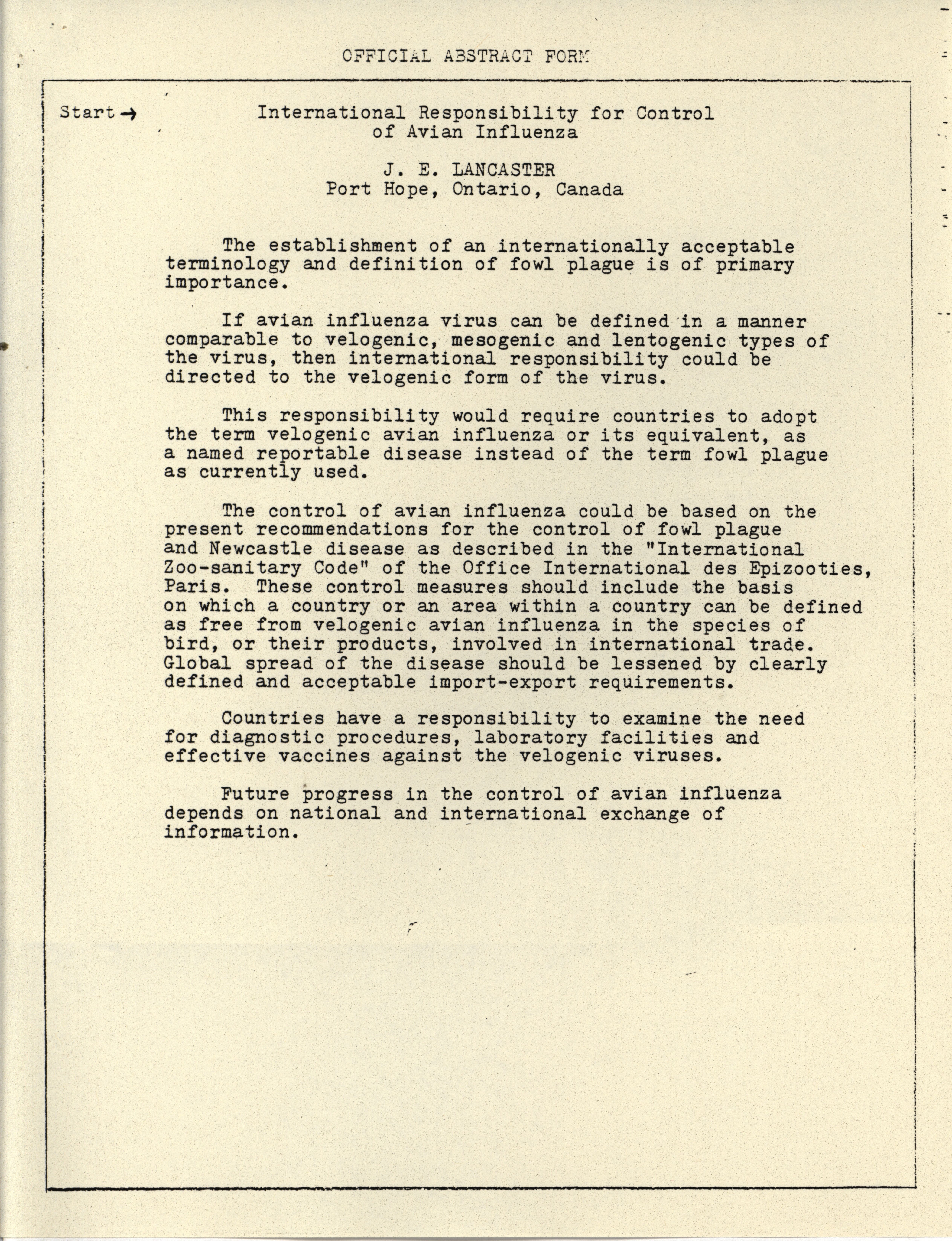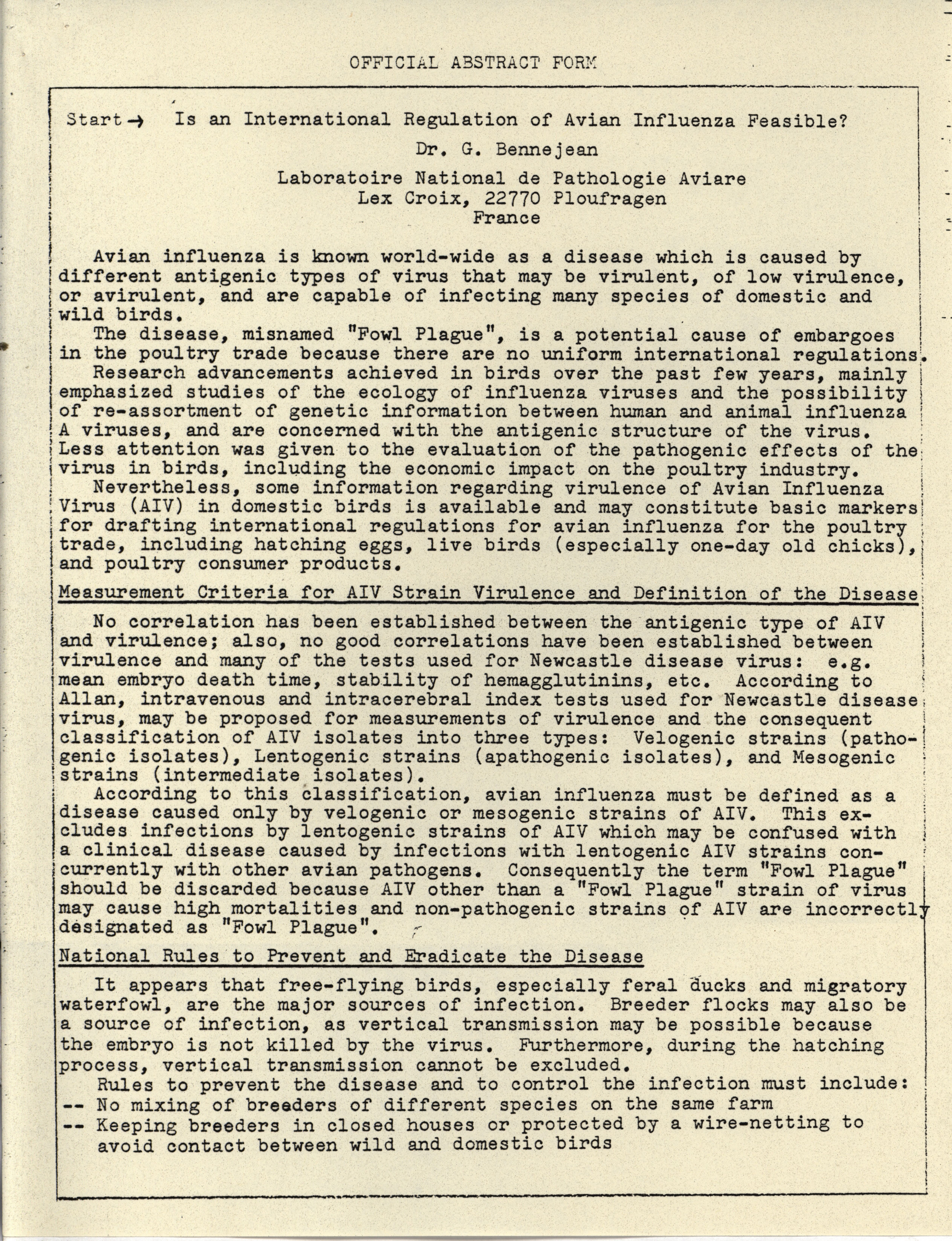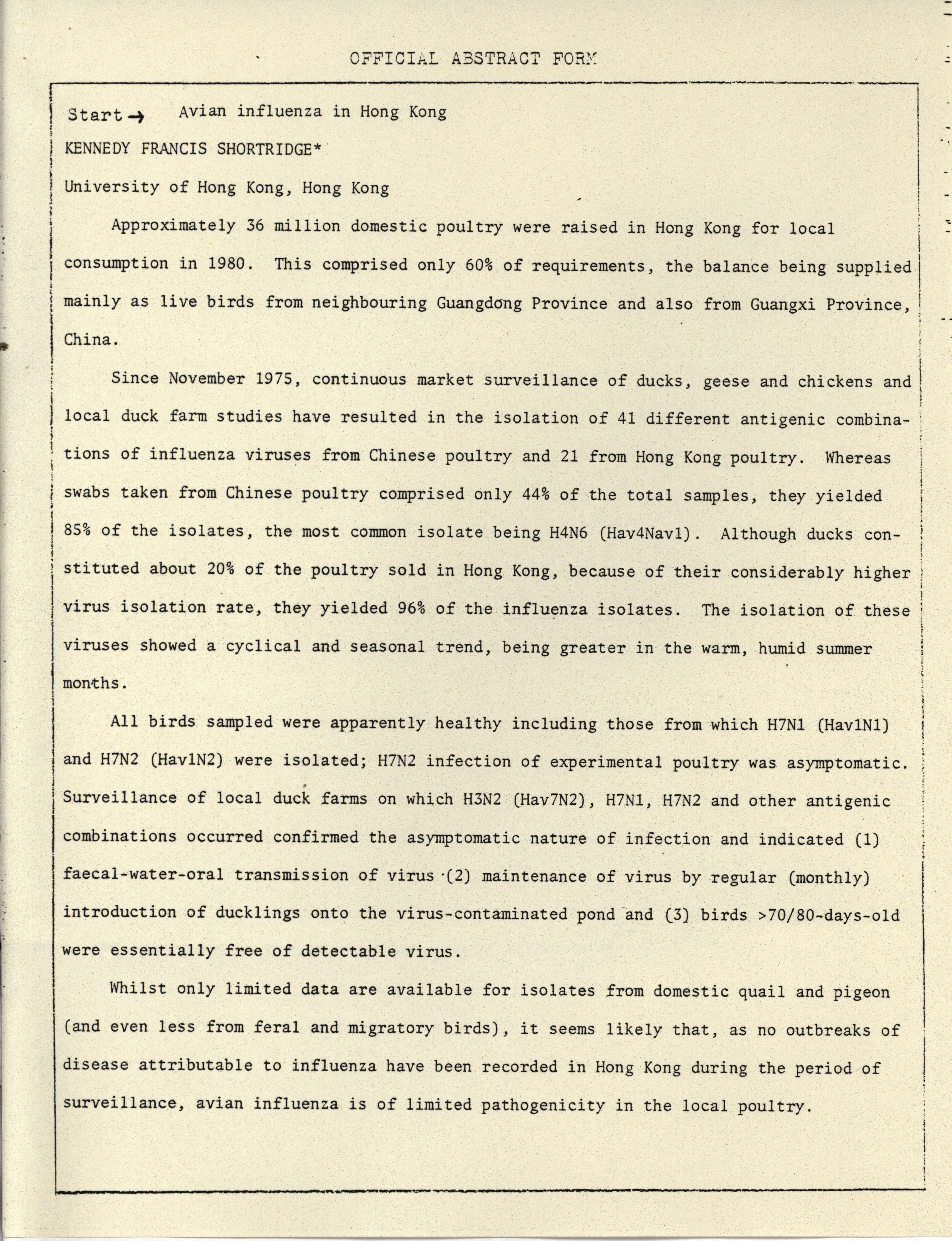 - "American Association of Avian Pathologists first international symposium on avian influenza abstracts, April 22-24, 1981", American Association of Avian Pathologists Collection, Iowa State University Library Digital Collections