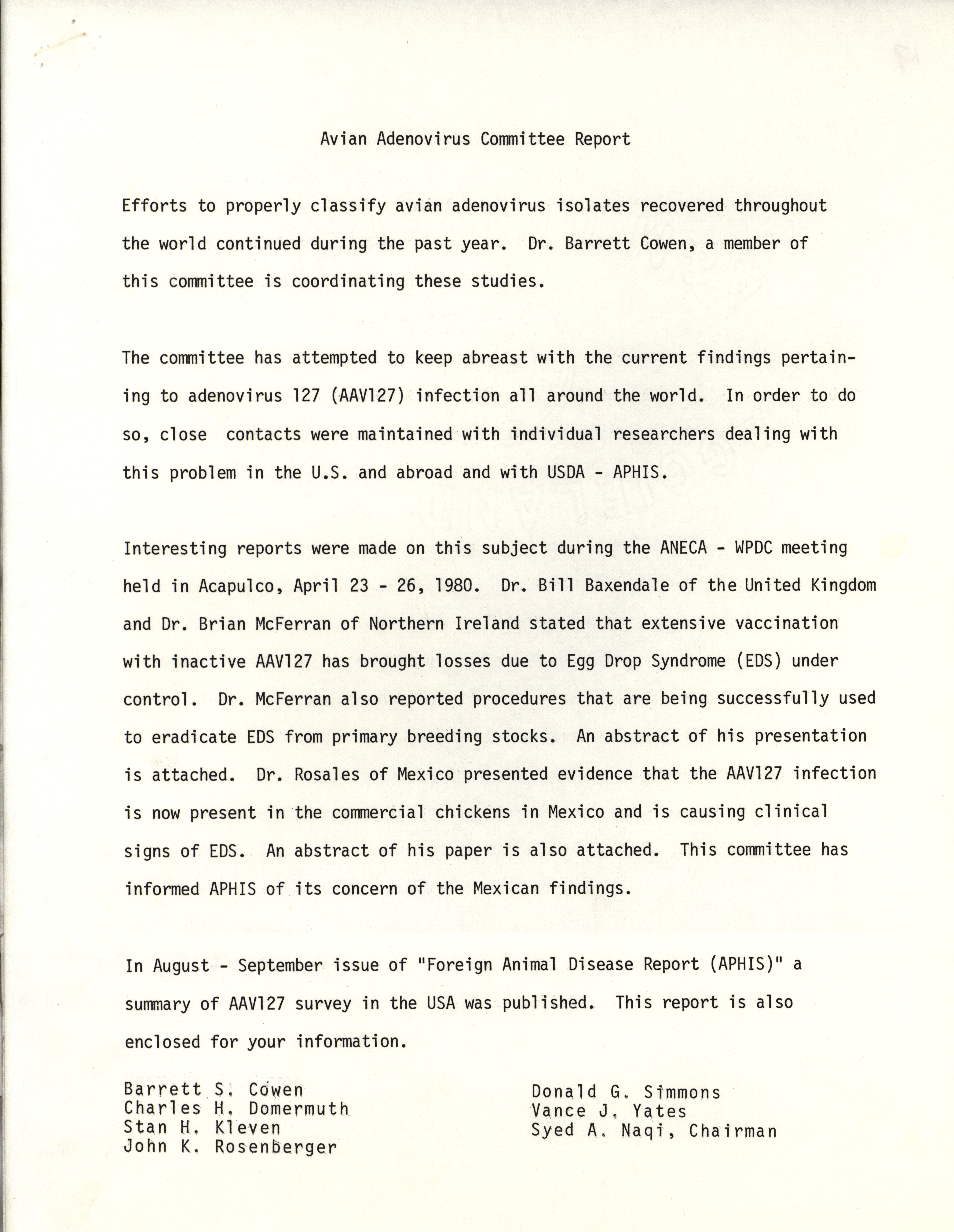 American Association of Avian Pathologists avian adenovirus committee report, 1980 Item Info
