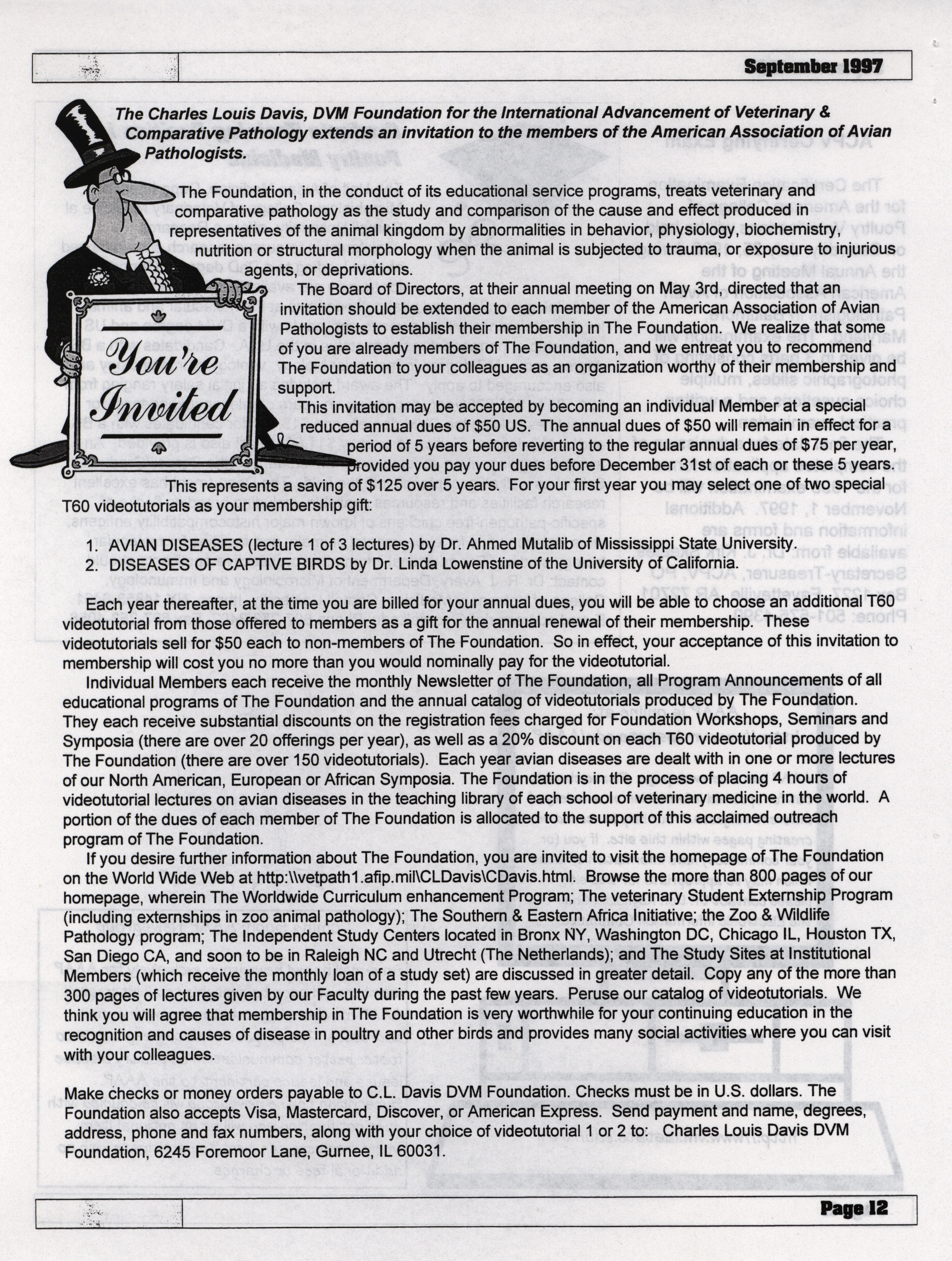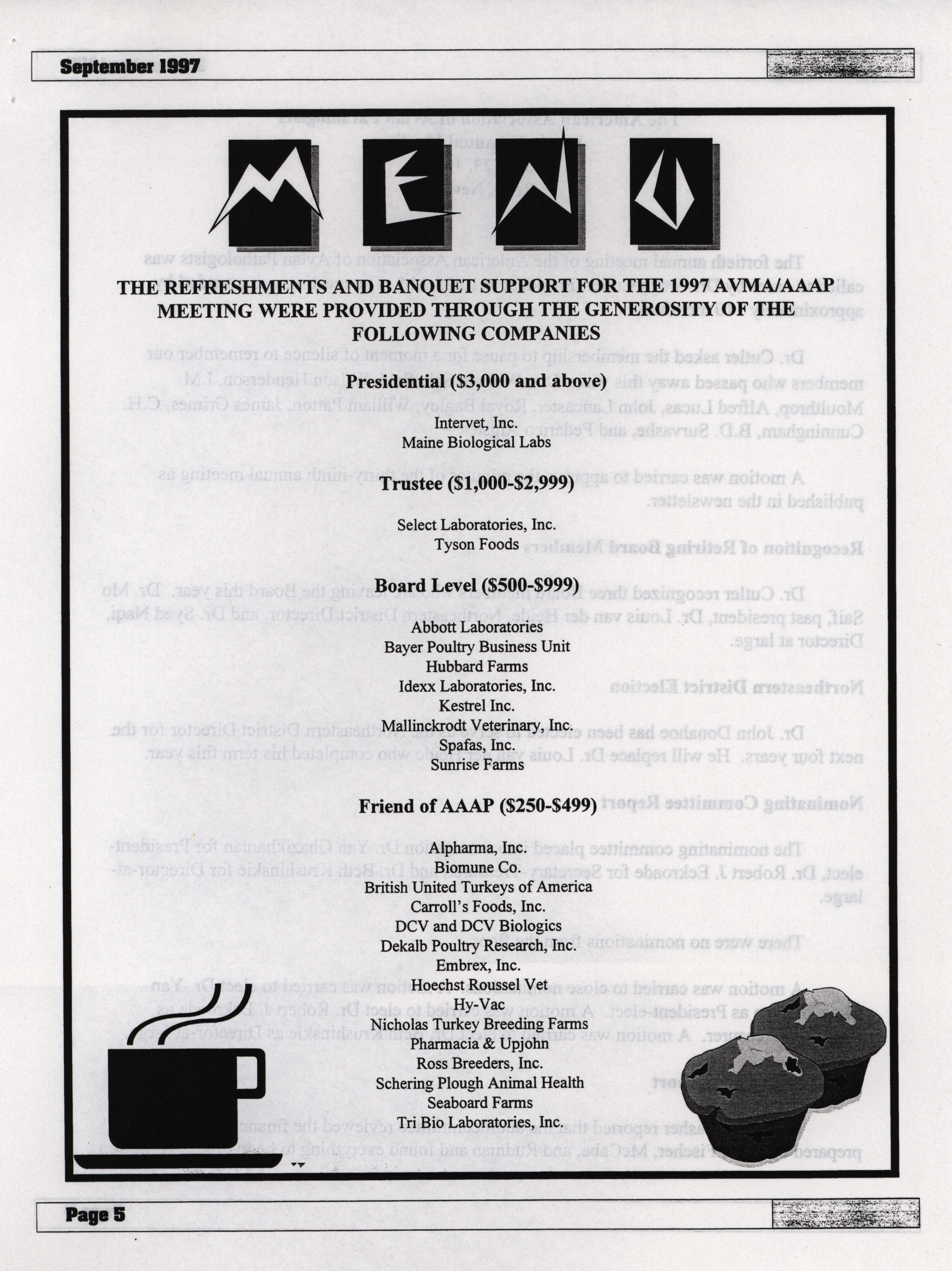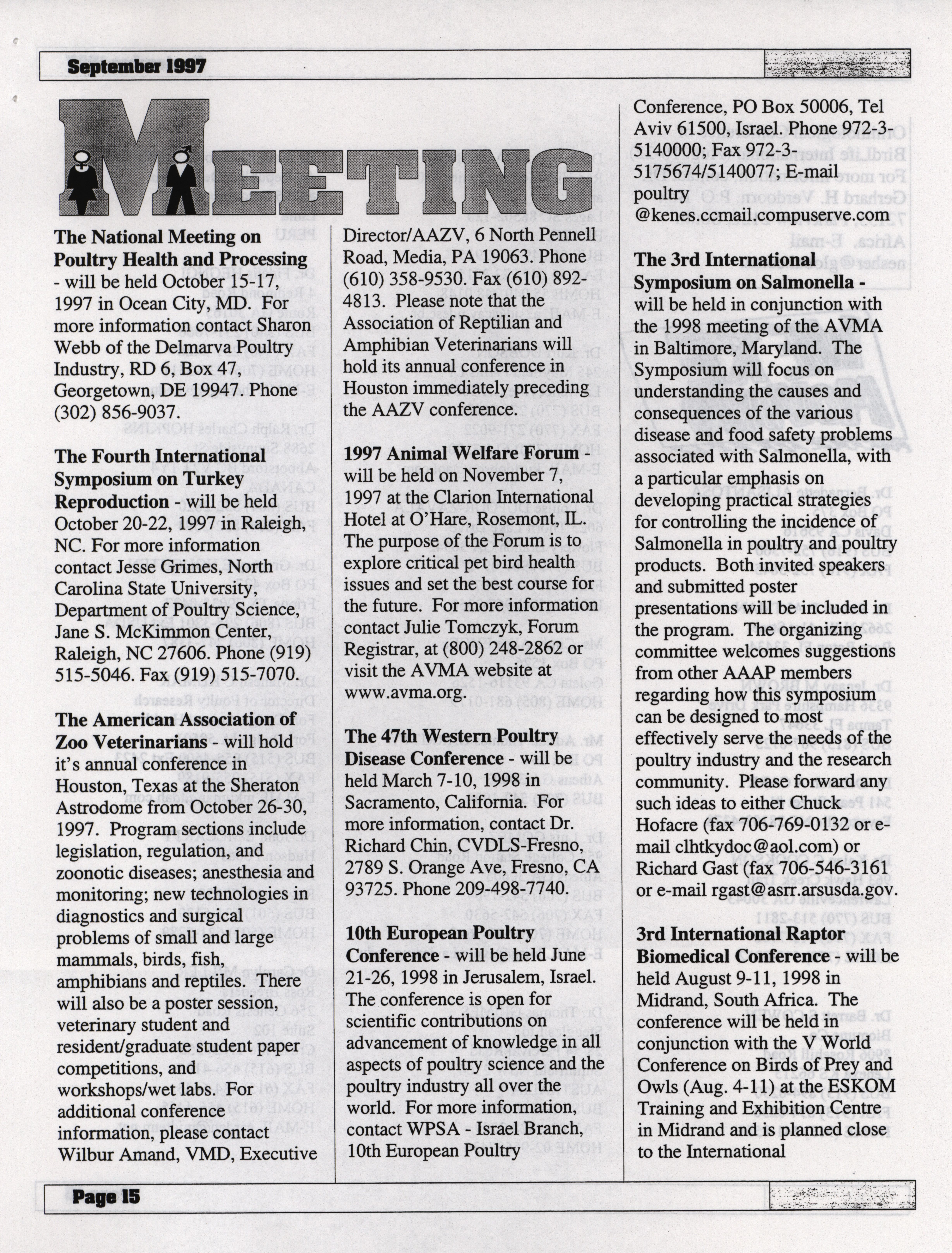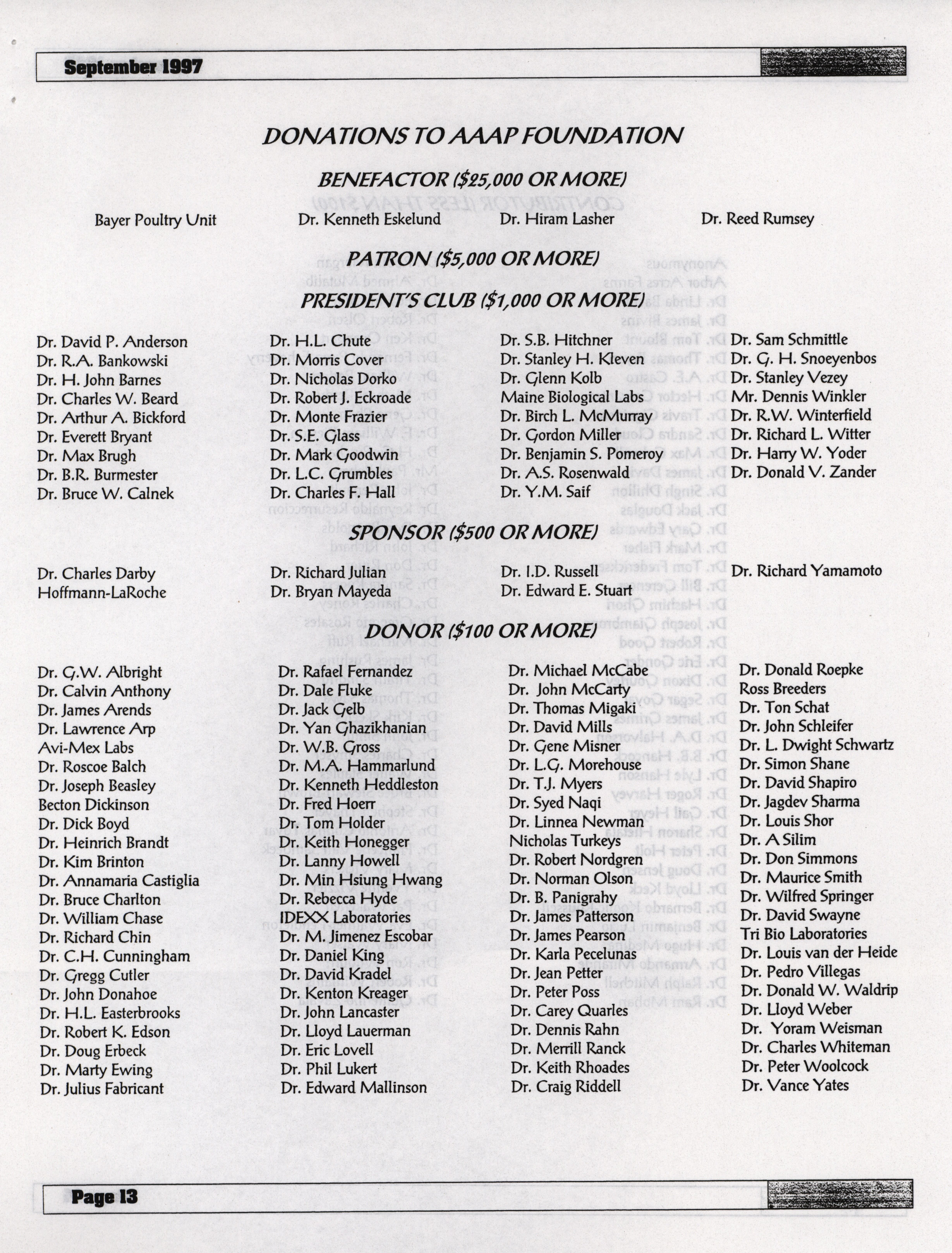 - The fall newsletter of the American Association of Avian Pathologists, September 1997. The quarterly newsletter features several different topics, including AAAP and AAAP foundation annual reports, 1997 committee reports, and minutes of the 40th annual meeting of the AAAP.