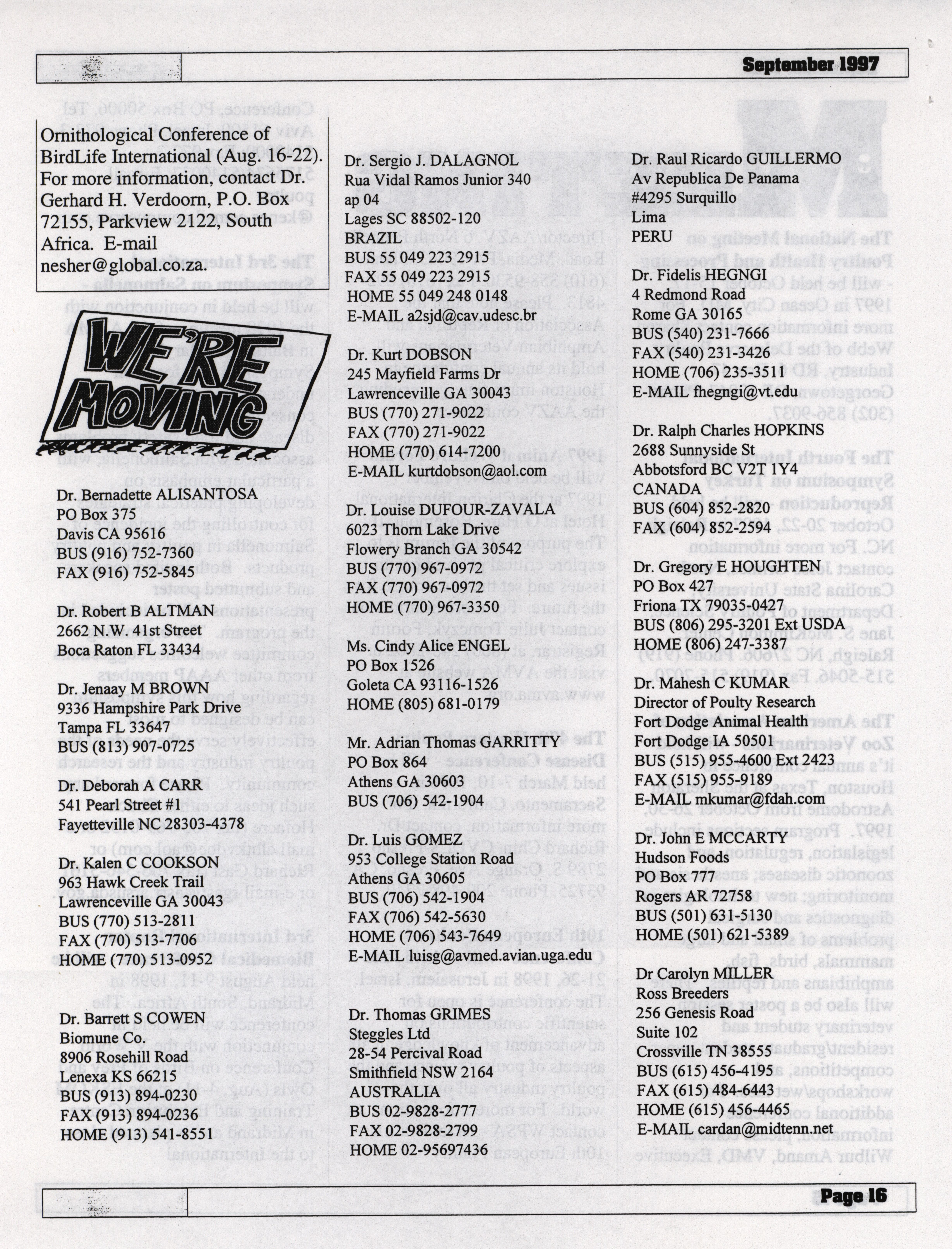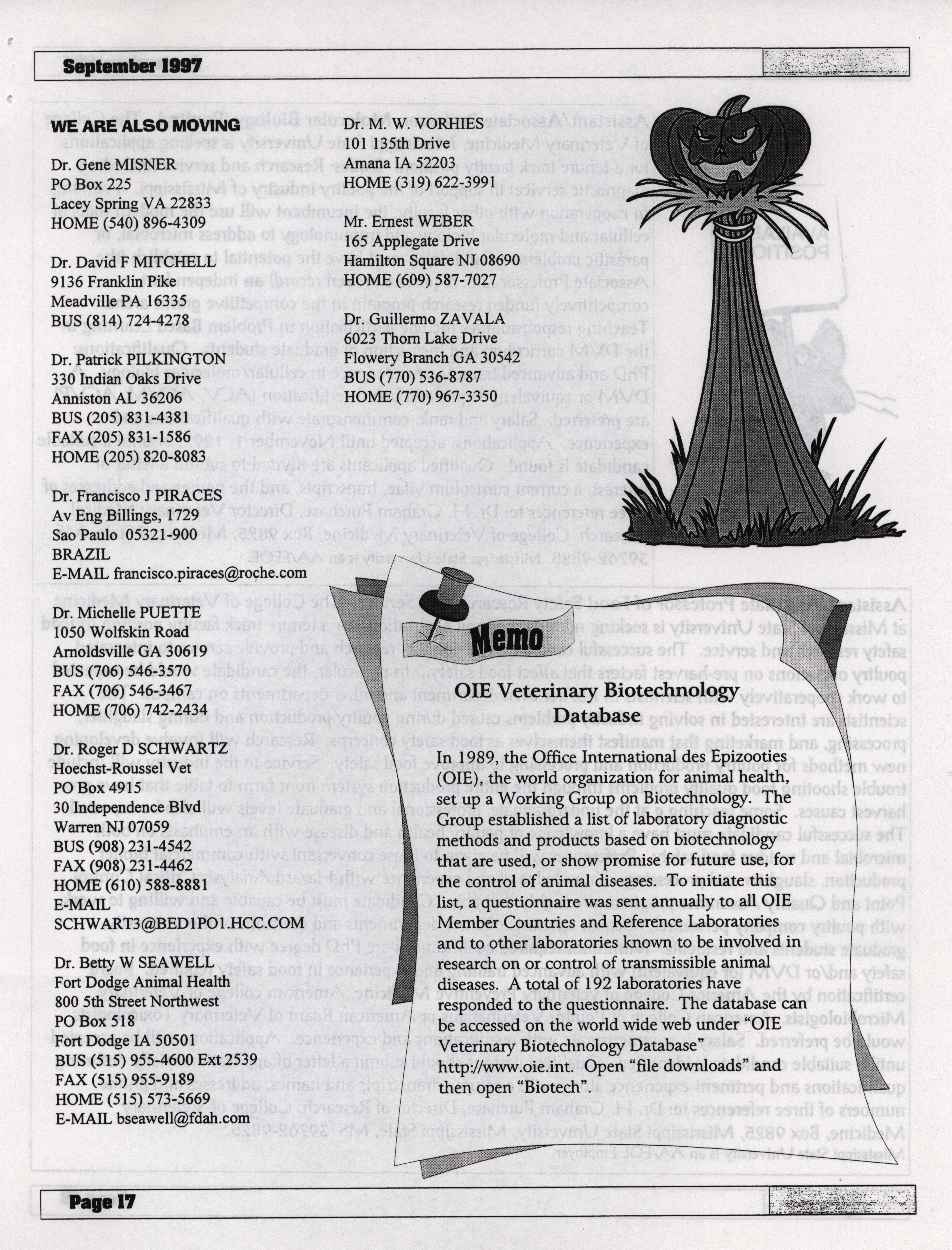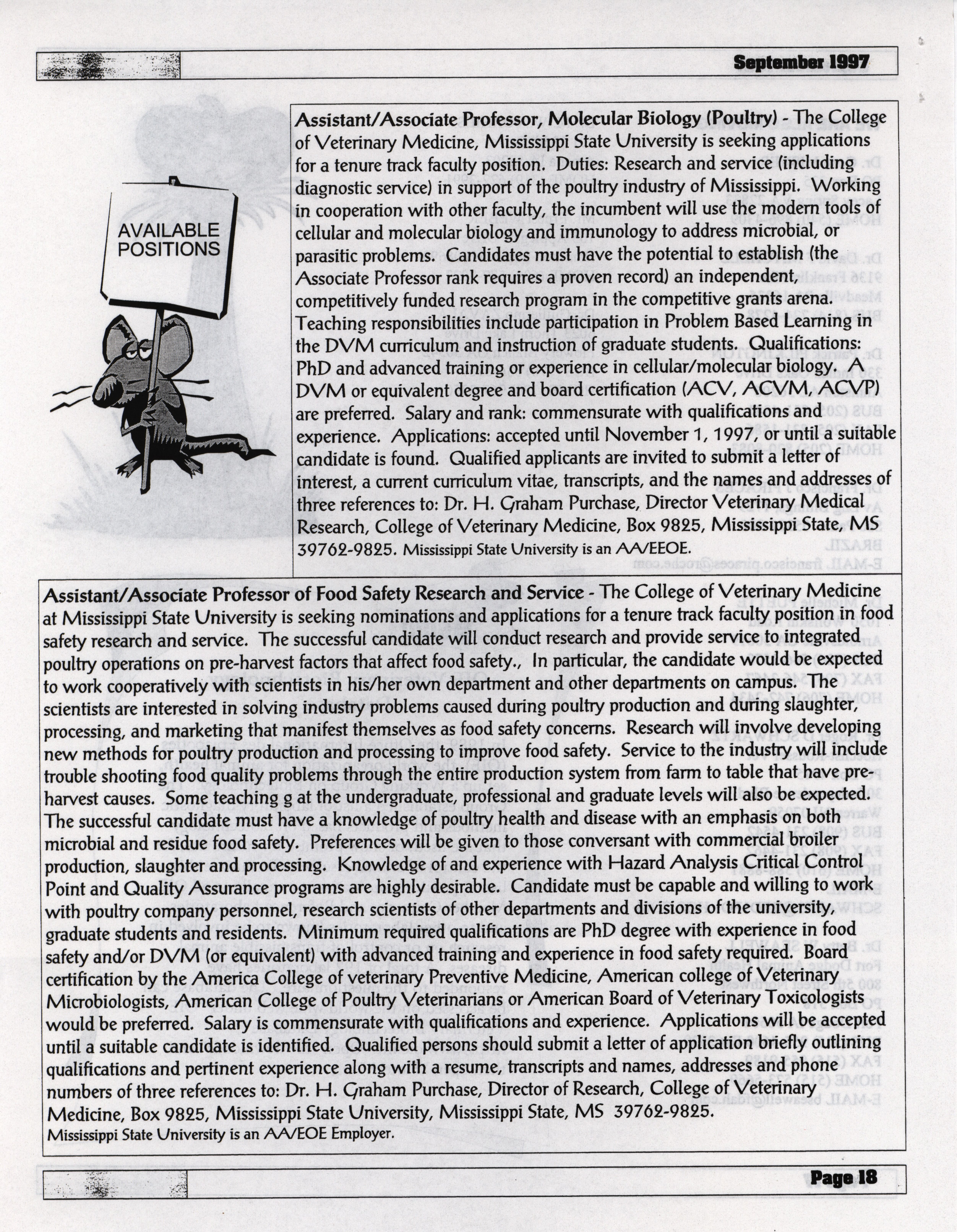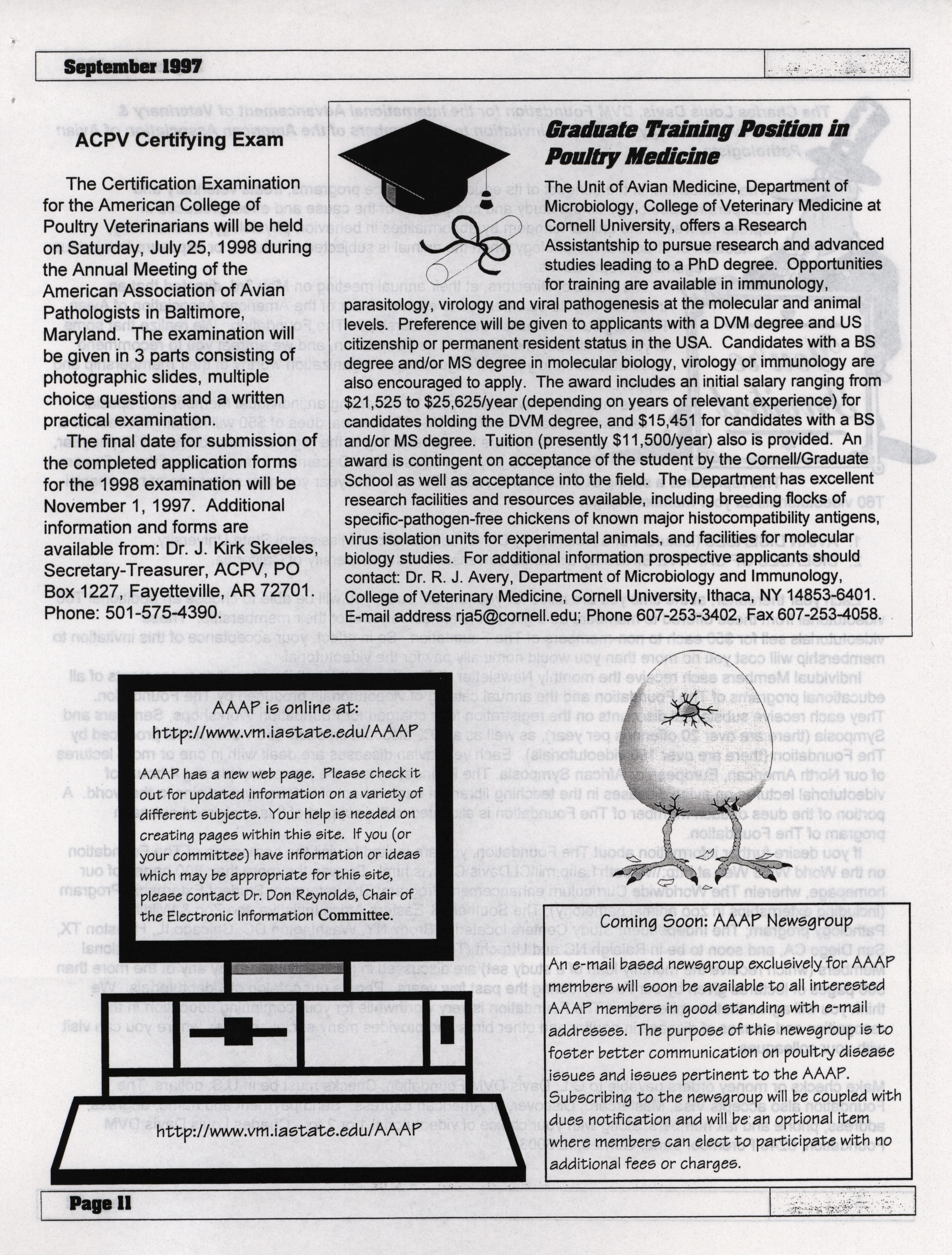 - "AAAP fall newsletter, September 1997", American Association of Avian Pathologists Collection, Iowa State University Library Digital Collections