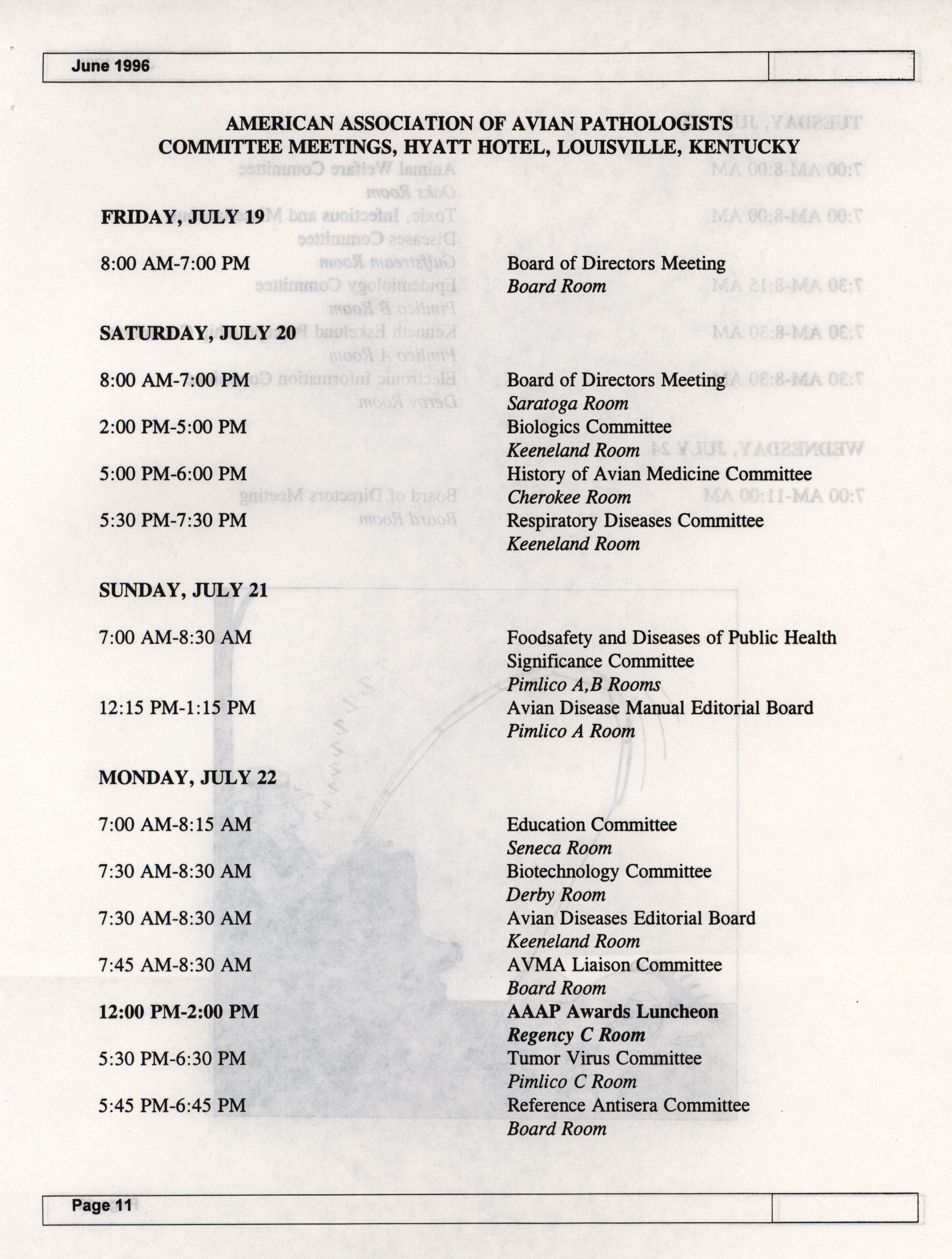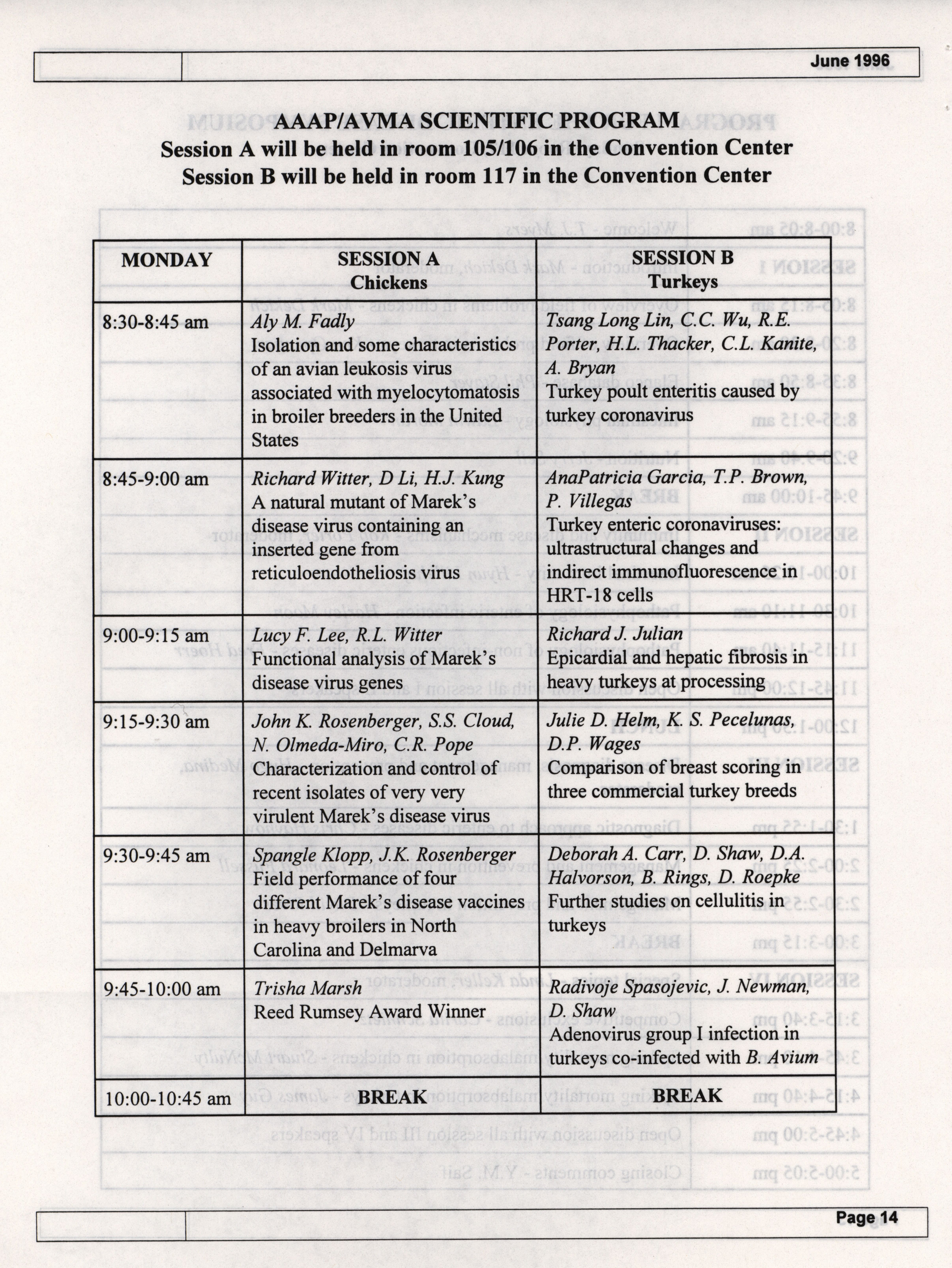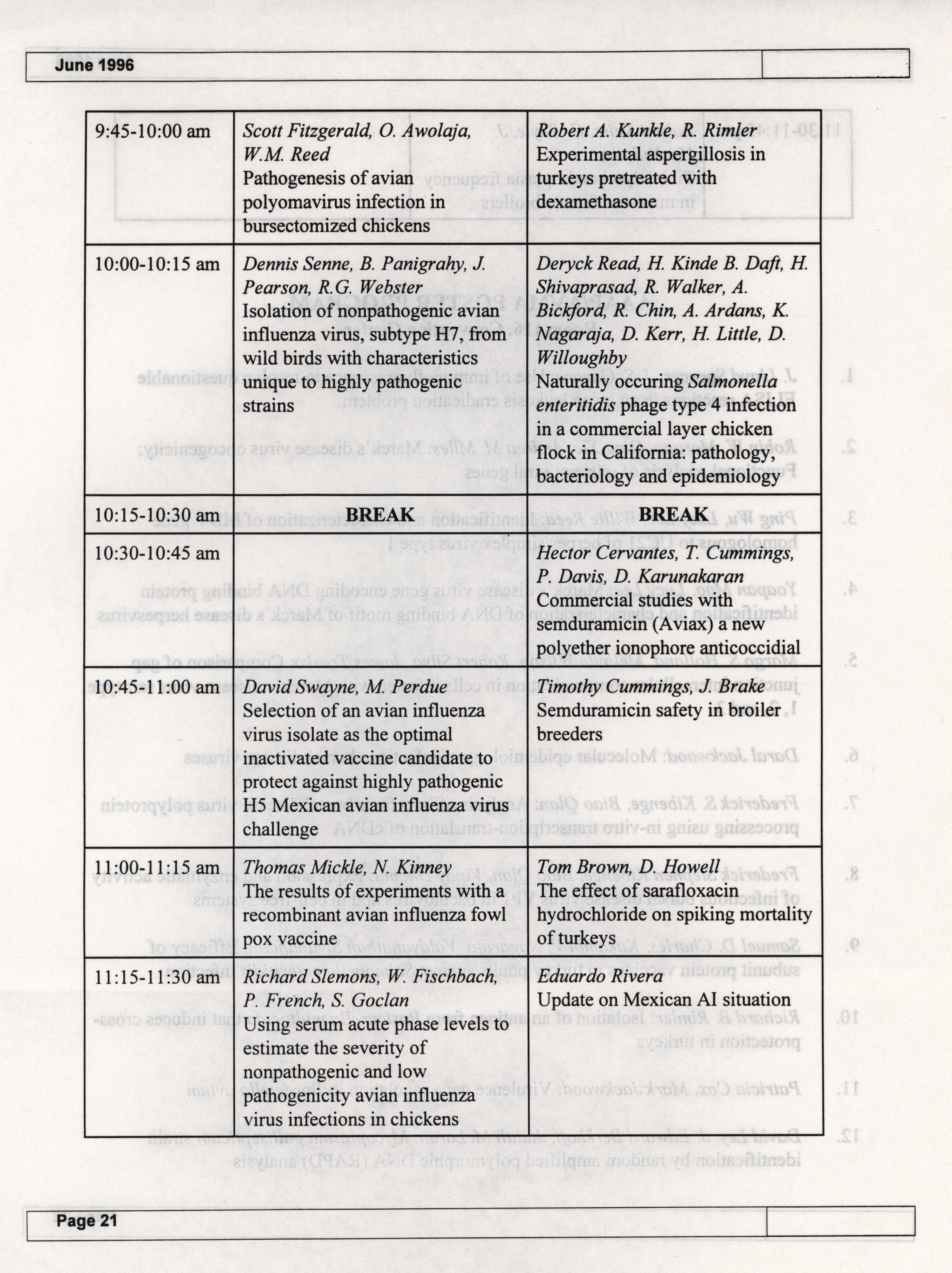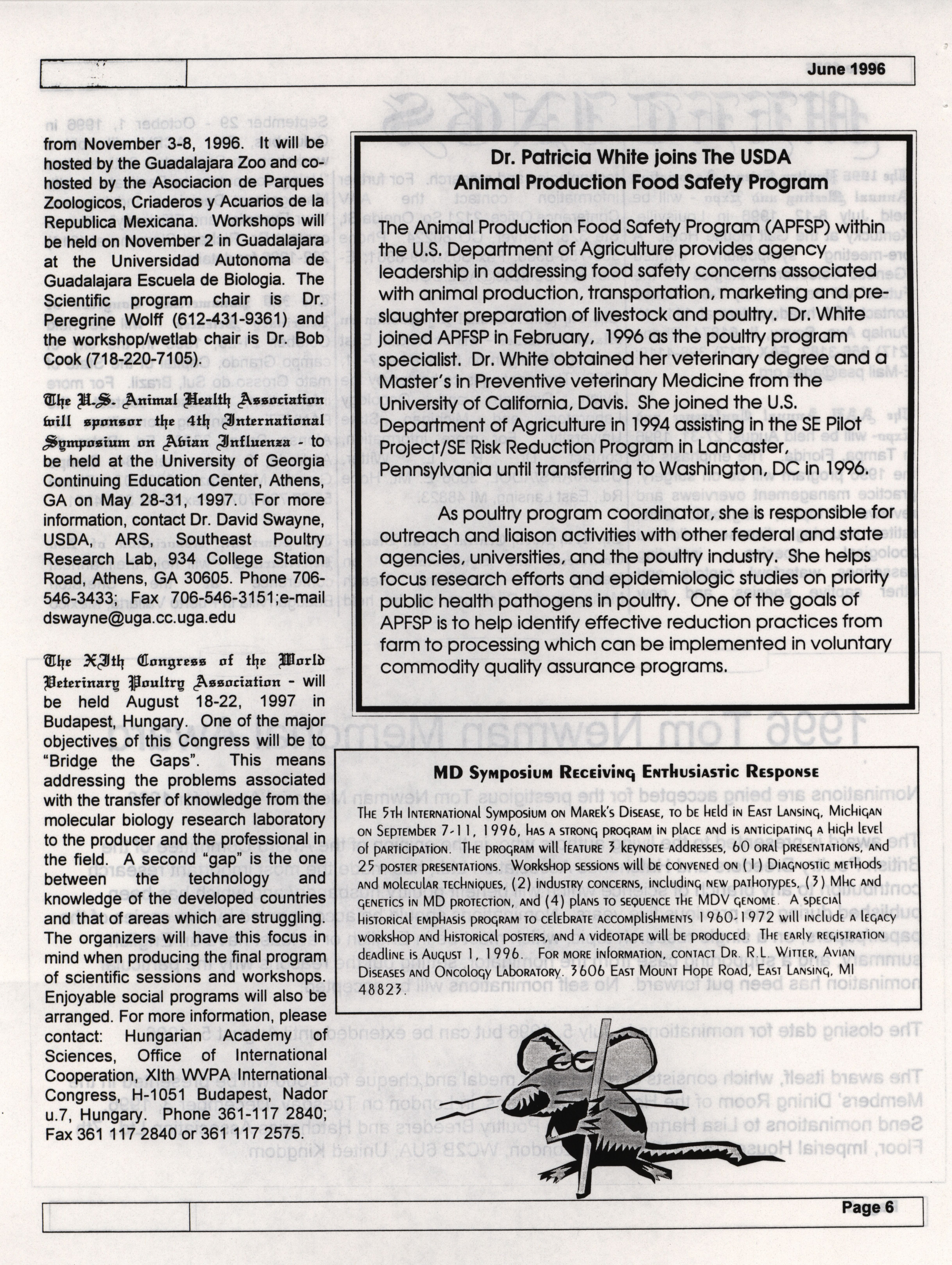 - The summer newsletter of the American Association of Avian Pathologists, June 1996. The quarterly newsletter features several different topics, including 1996 annual meeting information and scientific program, 1996 AAAP committee reports and 1996 committee meetings.