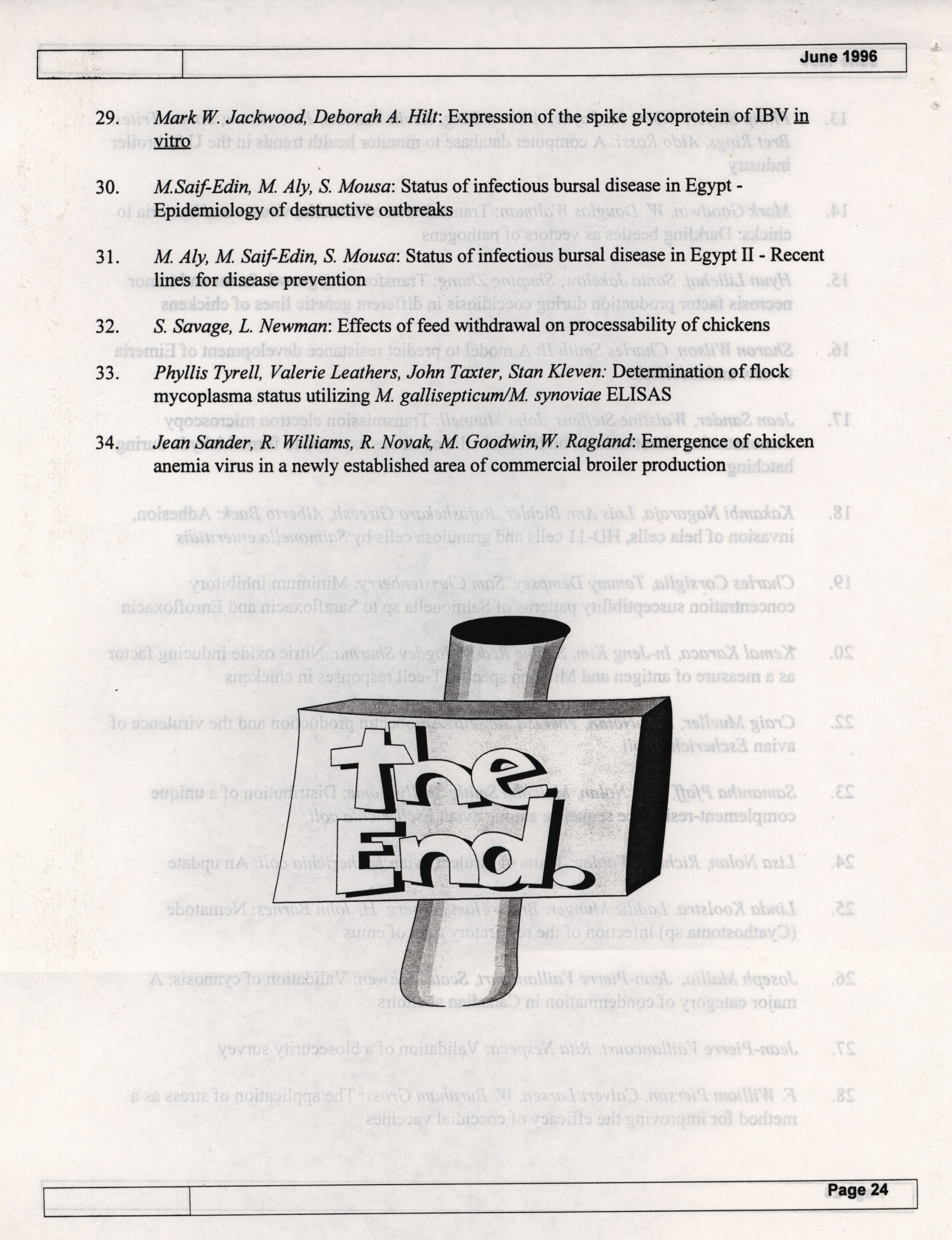 - "AAAP summer newsletter, June 1996", American Association of Avian Pathologists Collection, Iowa State University Library Digital Collections
