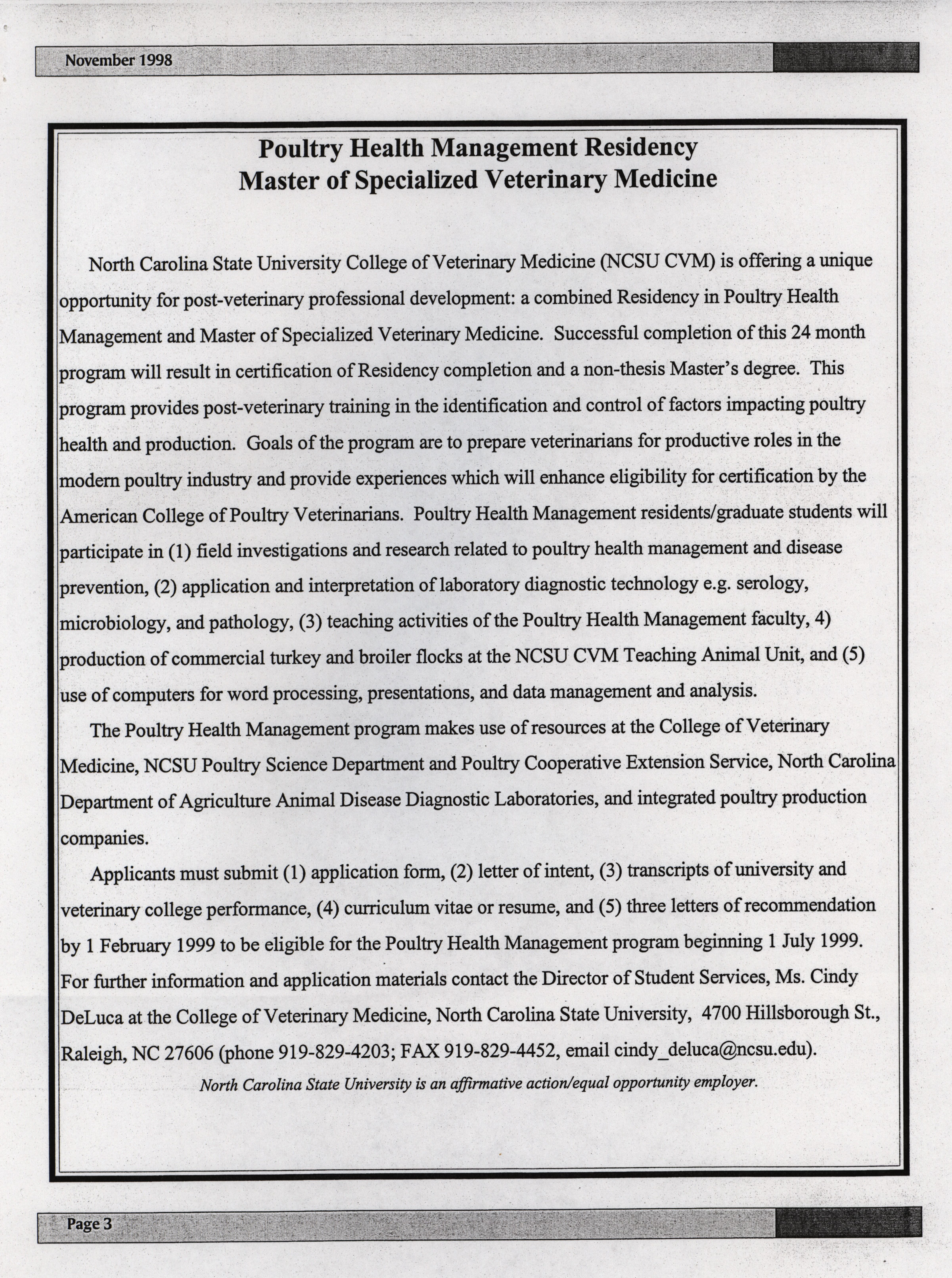 - "AAAP fall newsletter, November 1998", American Association of Avian Pathologists Collection, Iowa State University Library Digital Collections