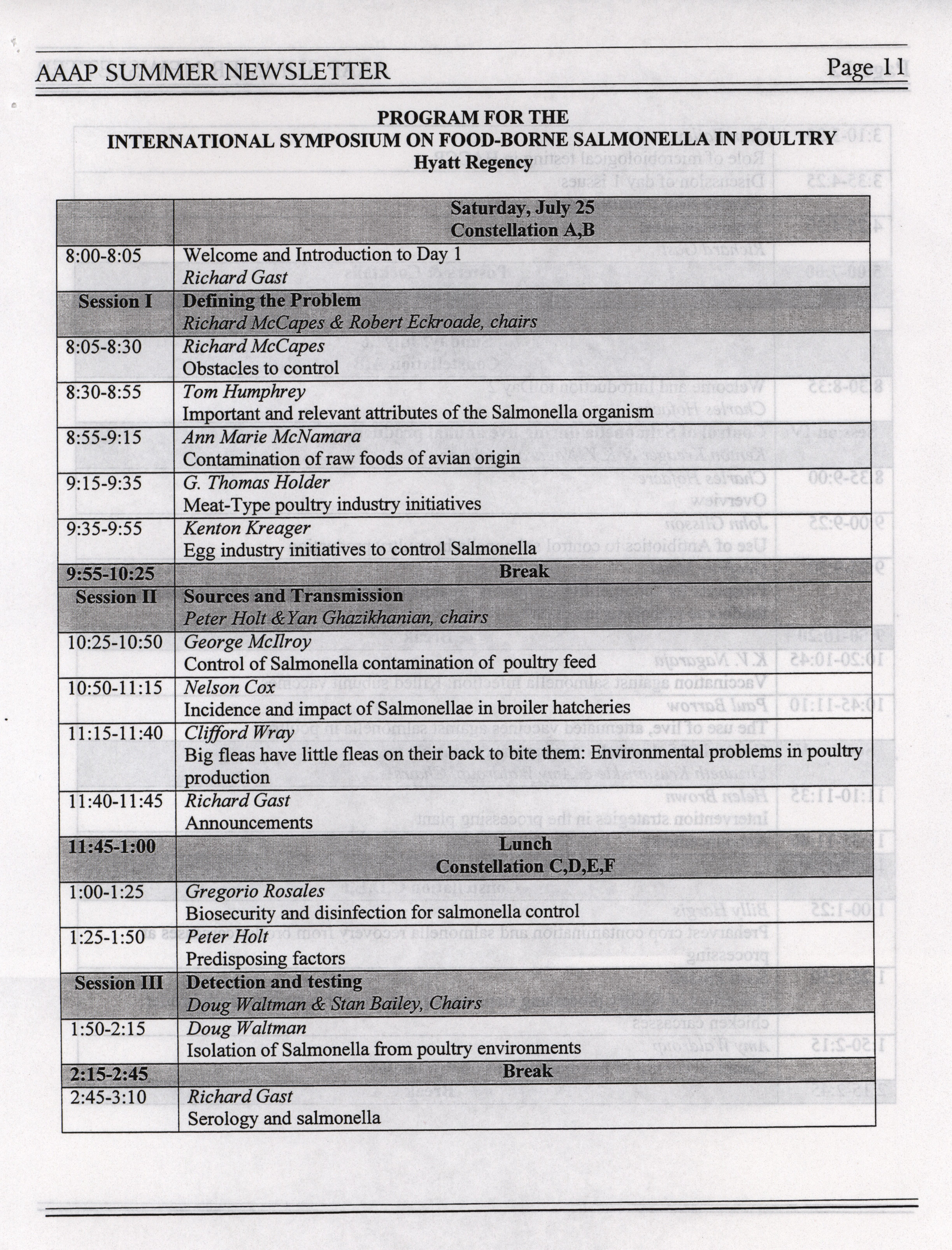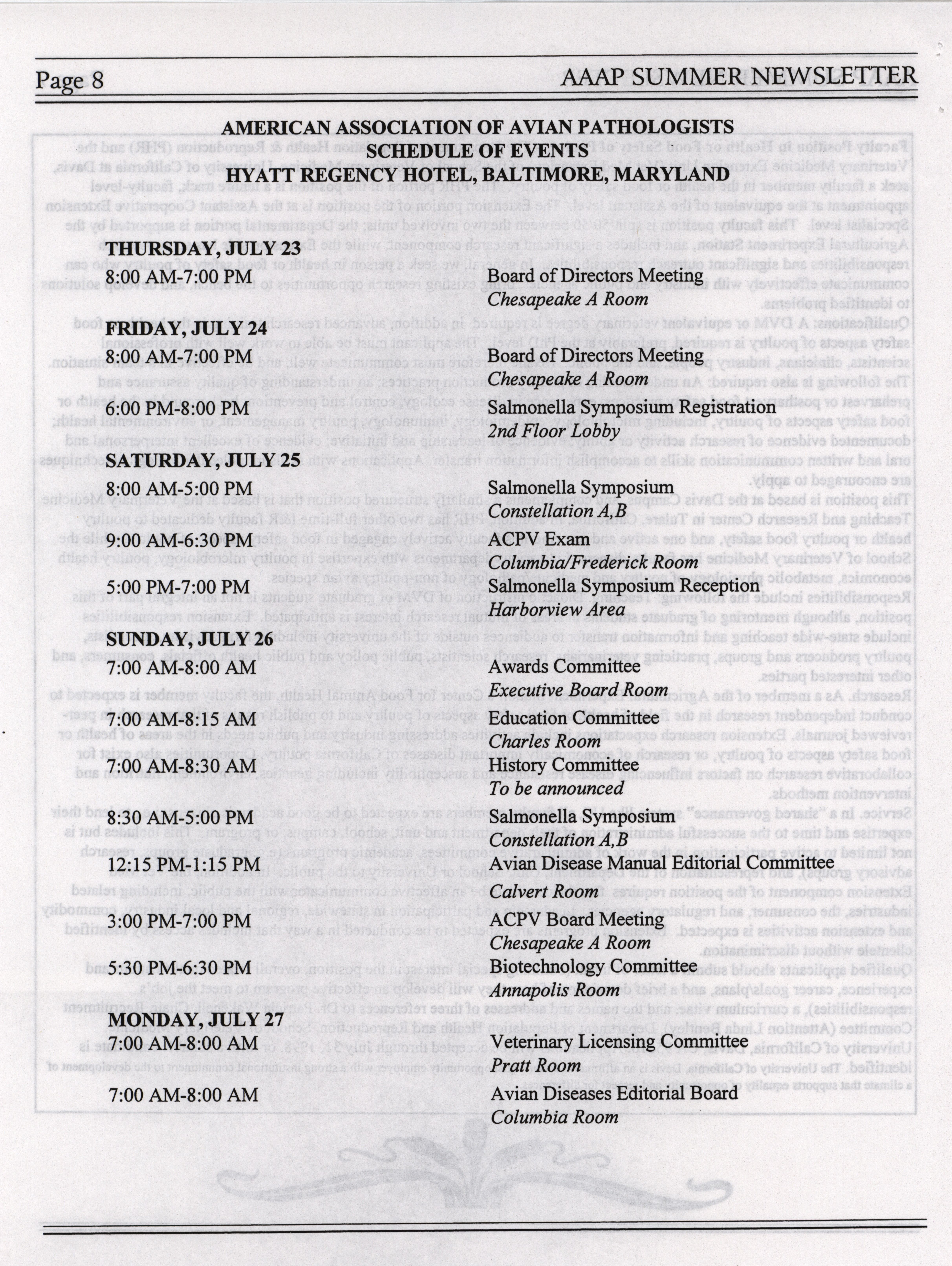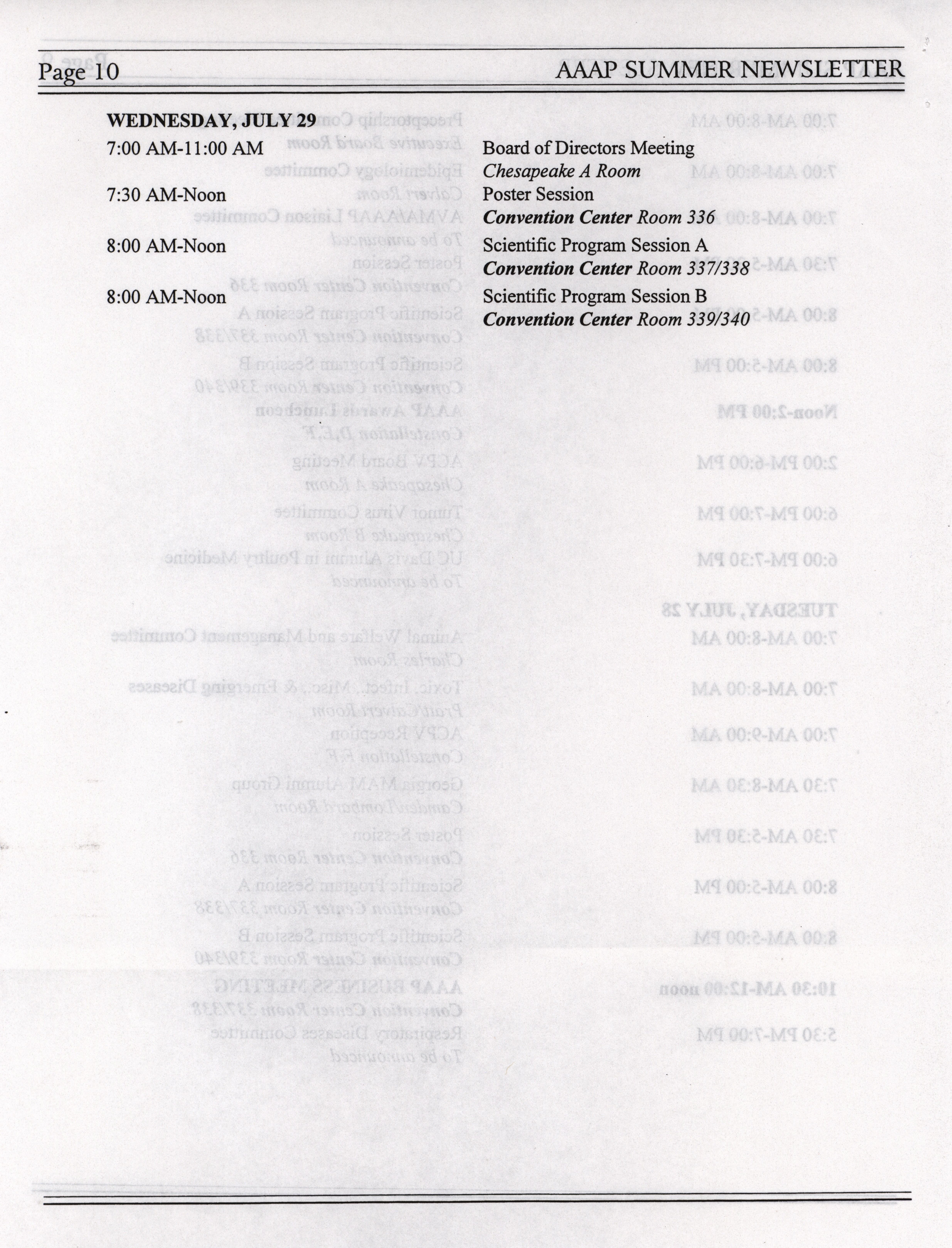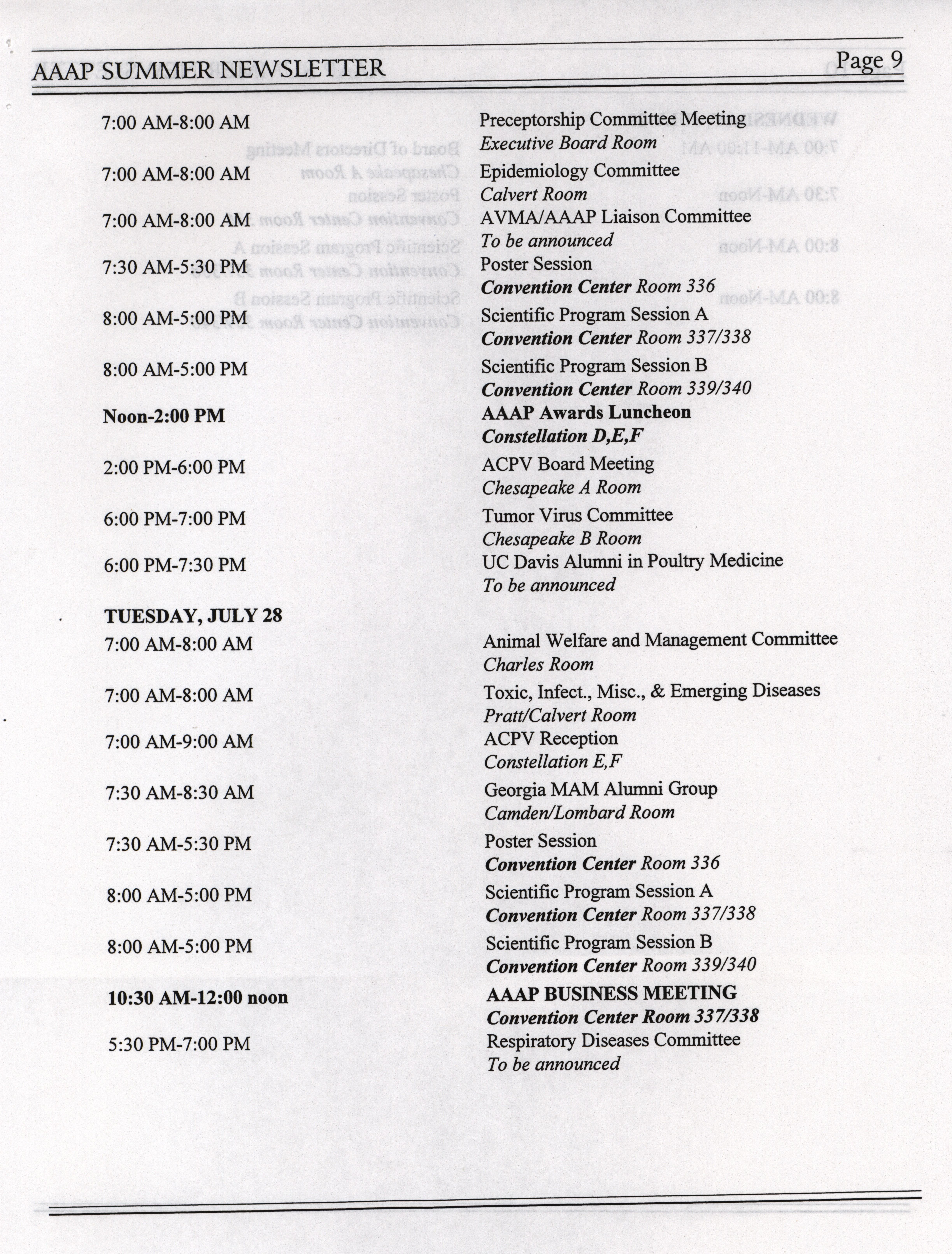 - The summer newsletter of the American Association of Avian Pathologists, May 1998. The quarterly newsletter features several different topics, including annual meeting information, the AVMA (American Veterinary Medical Association)/AAAP scientific program, and committee meetings.