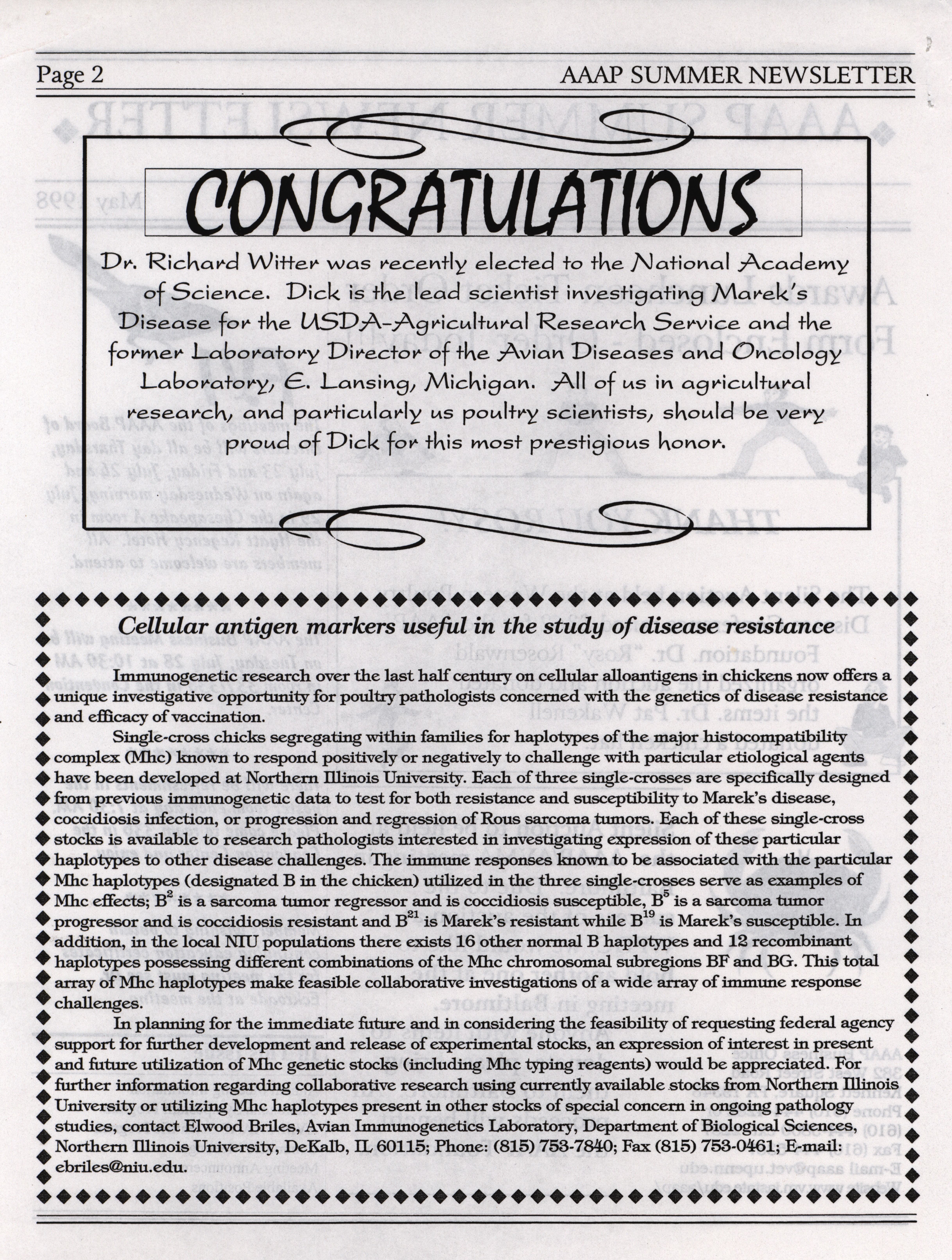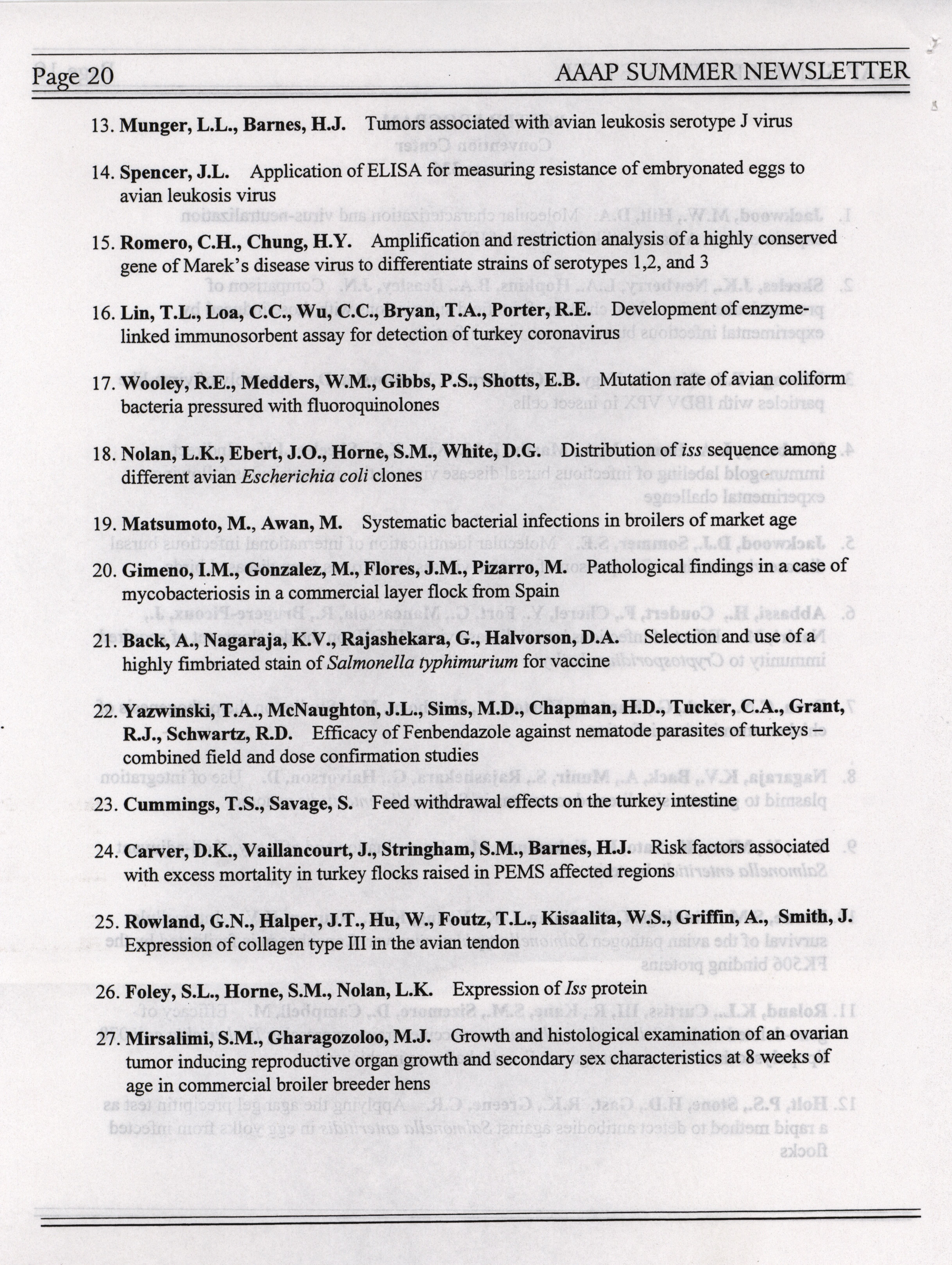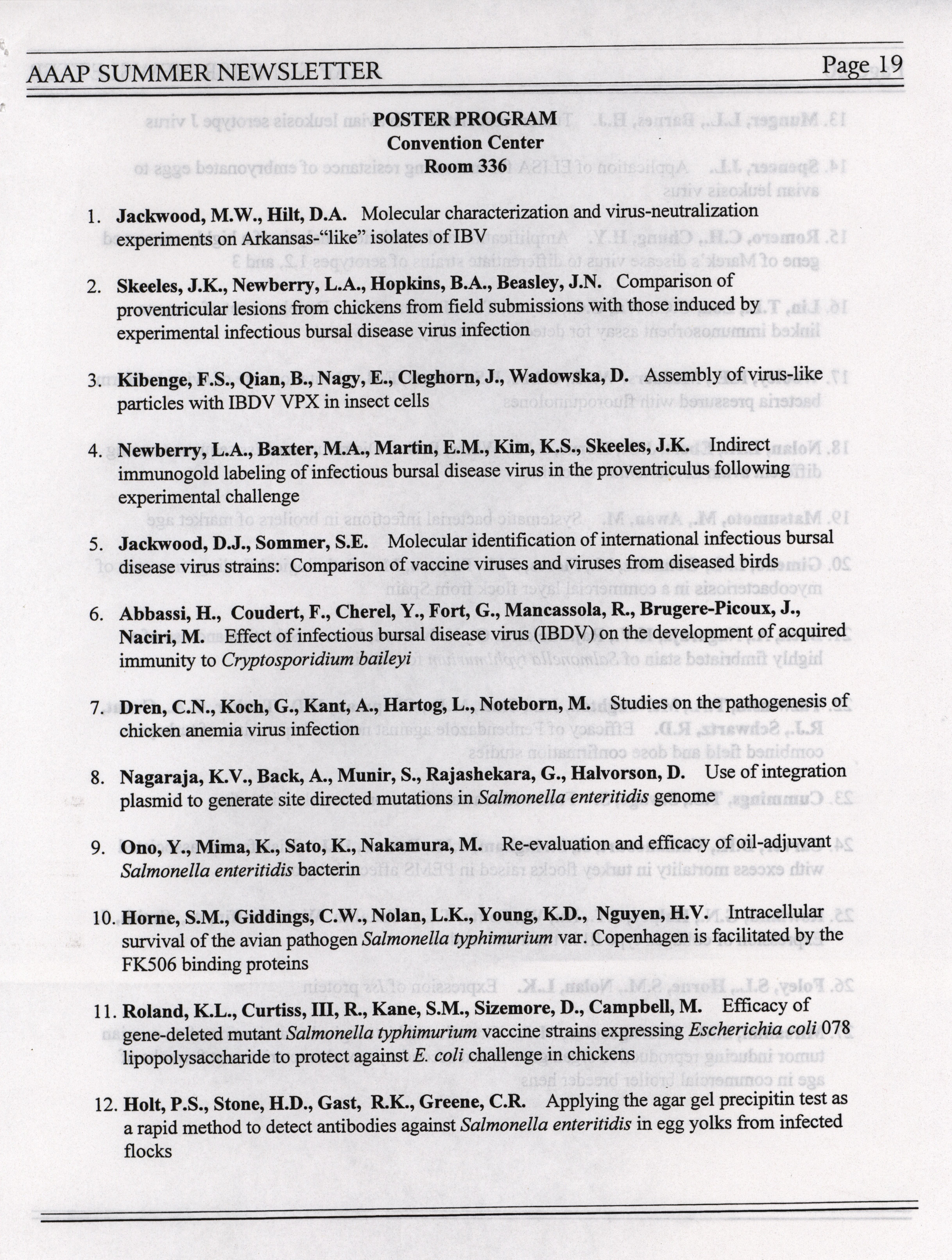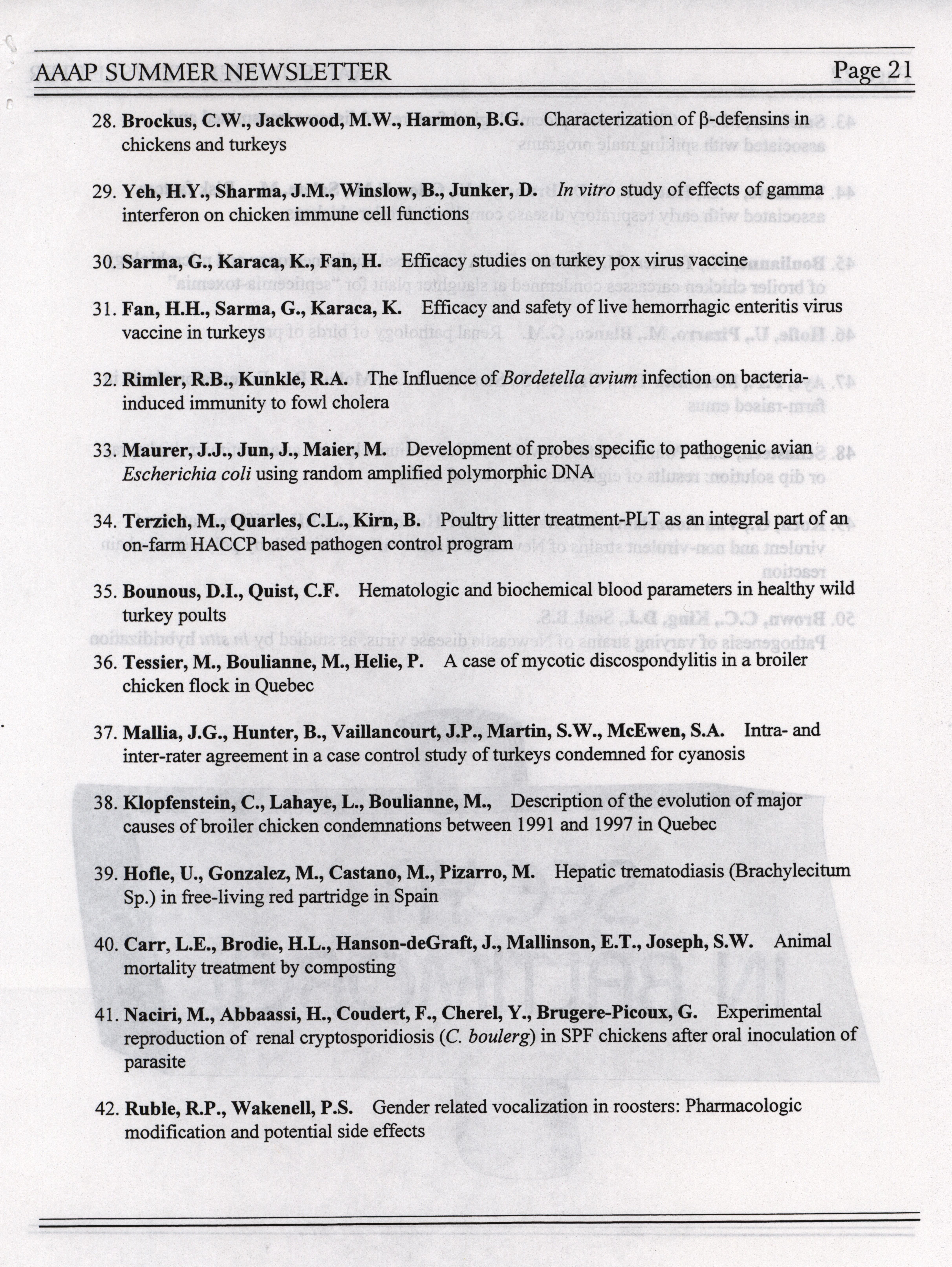 - "AAAP summer newsletter, May 1998", American Association of Avian Pathologists Collection, Iowa State University Library Digital Collections