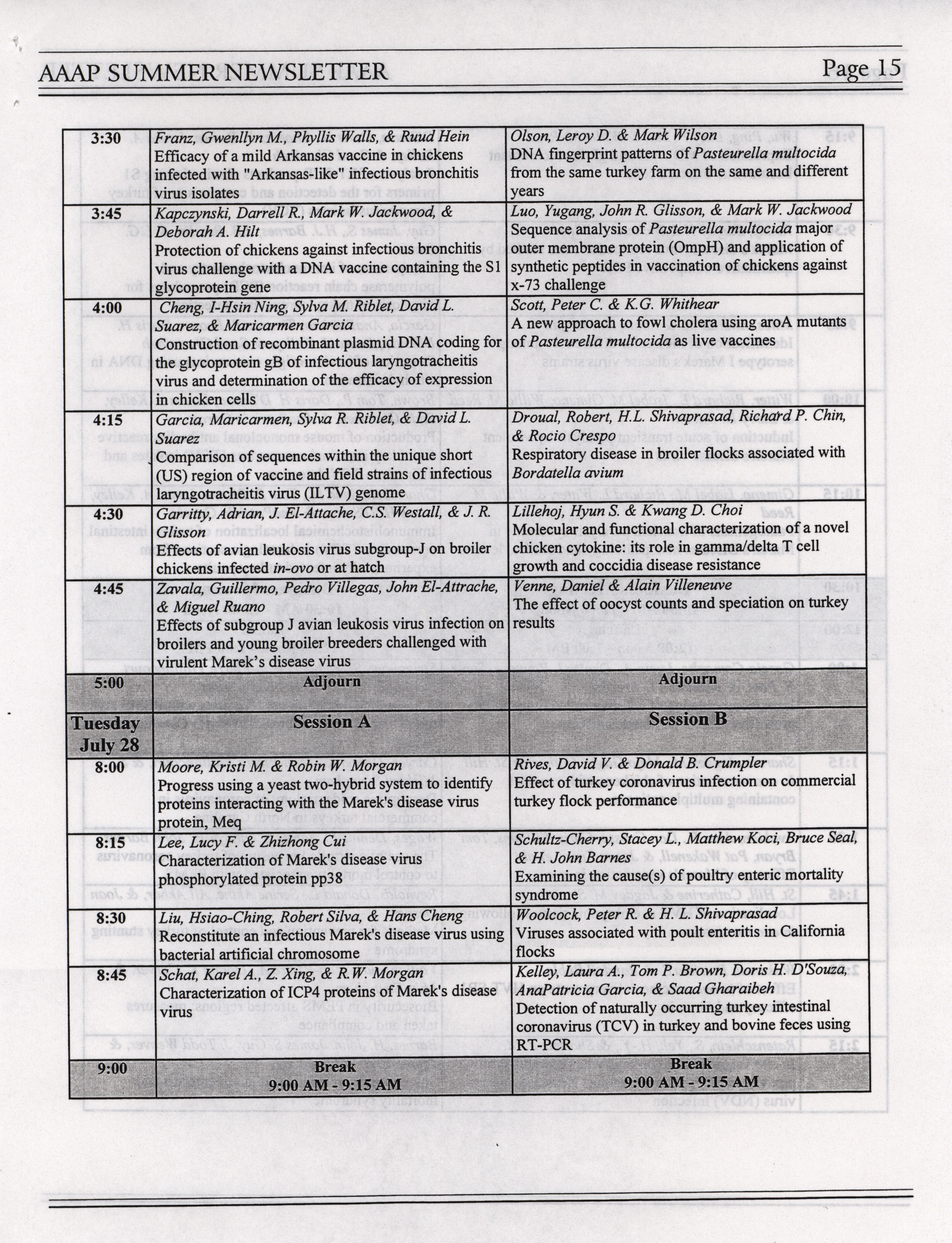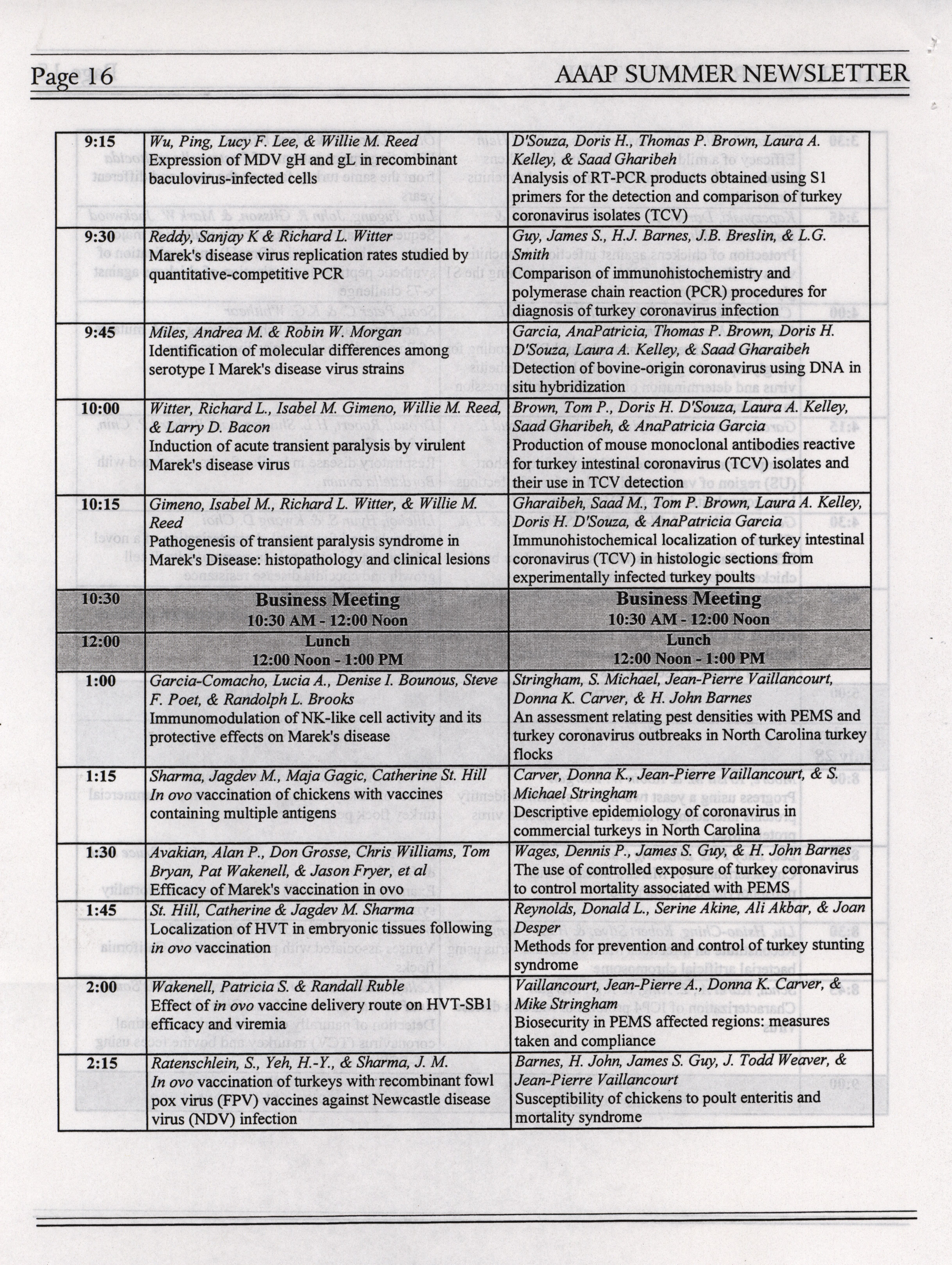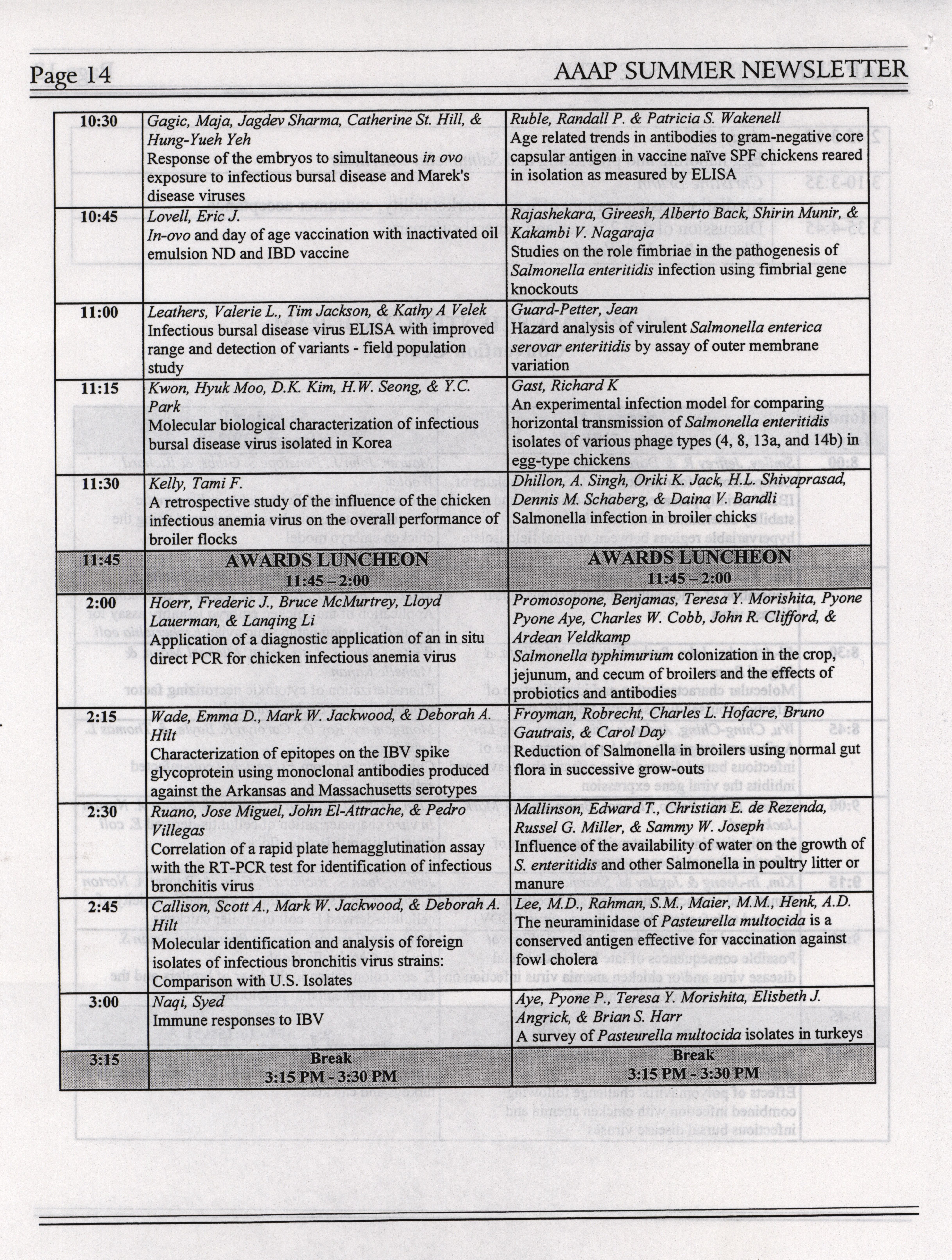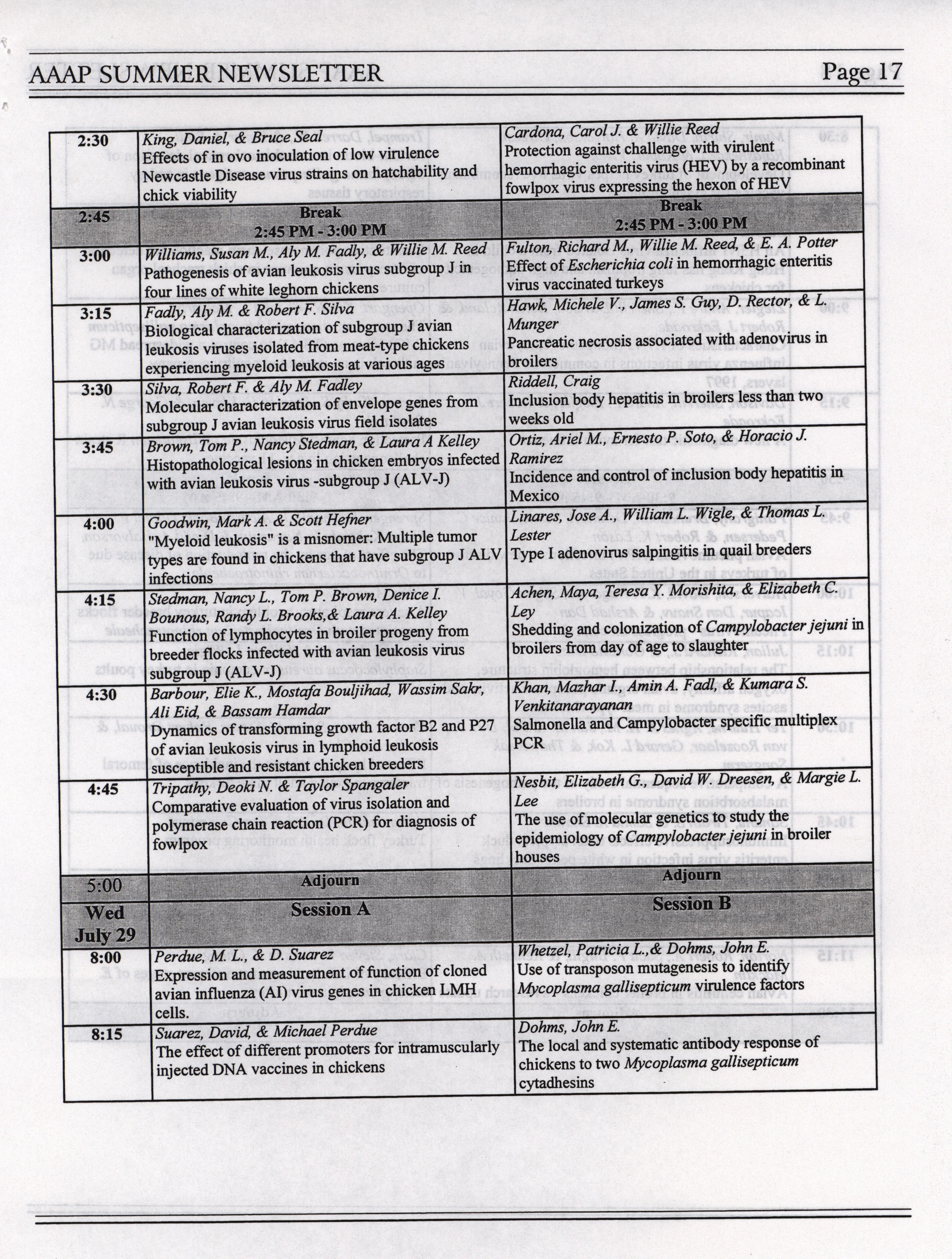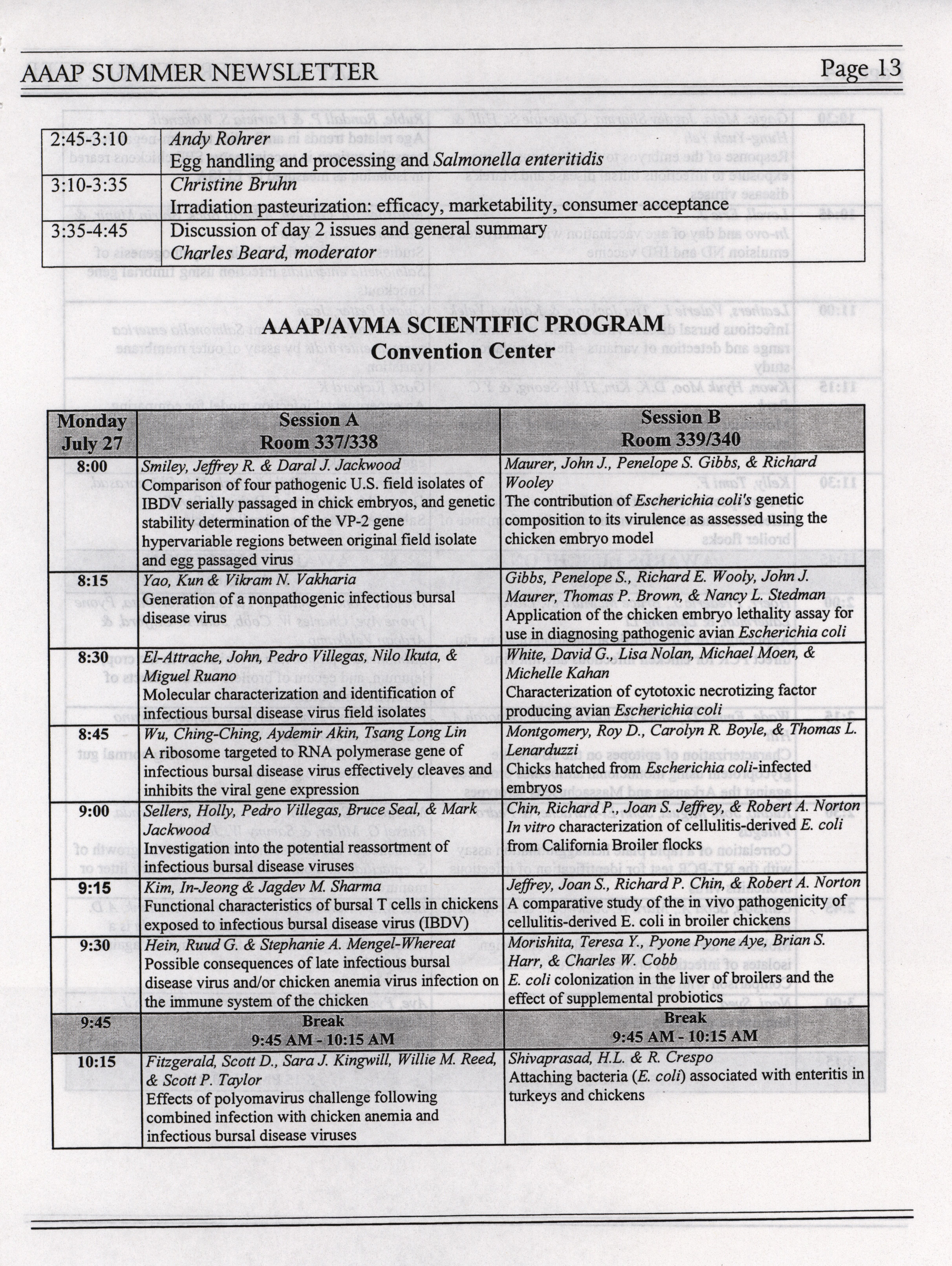 - "AAAP summer newsletter, May 1998", American Association of Avian Pathologists Collection, Iowa State University Library Digital Collections