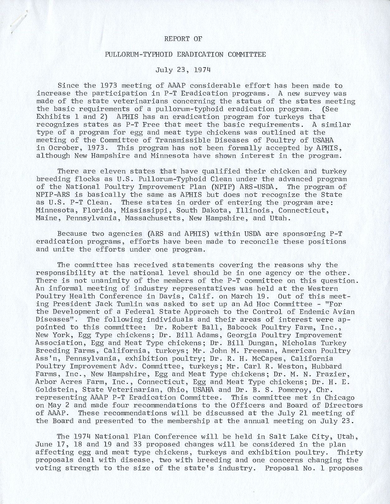 AAAP report of the pullorum-typhoid eradication committee, July 23, 1974 Item Info