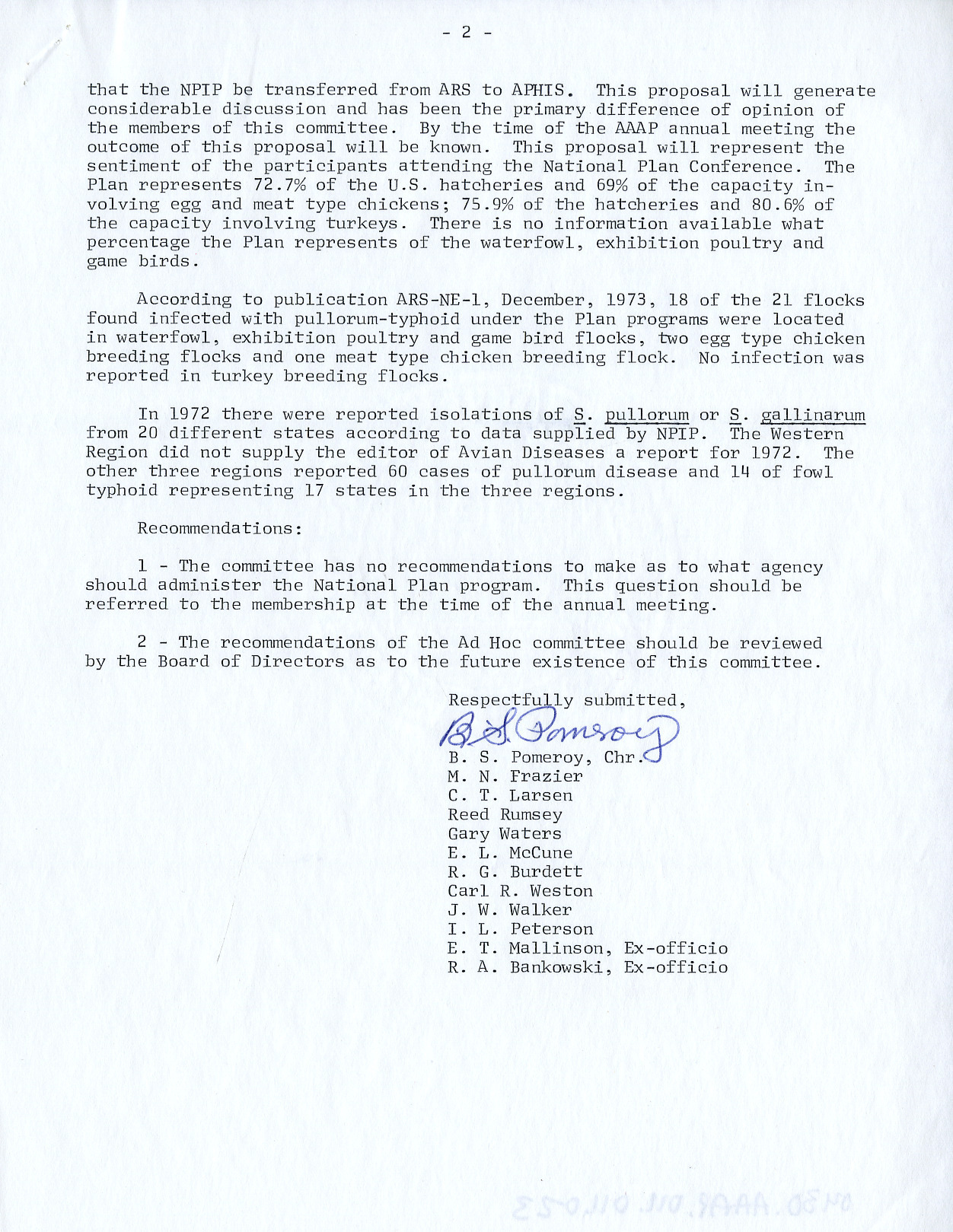 - "AAAP report of the pullorum-typhoid eradication committee, July 23, 1974", American Association of Avian Pathologists Collection, Iowa State University Library Digital Collections