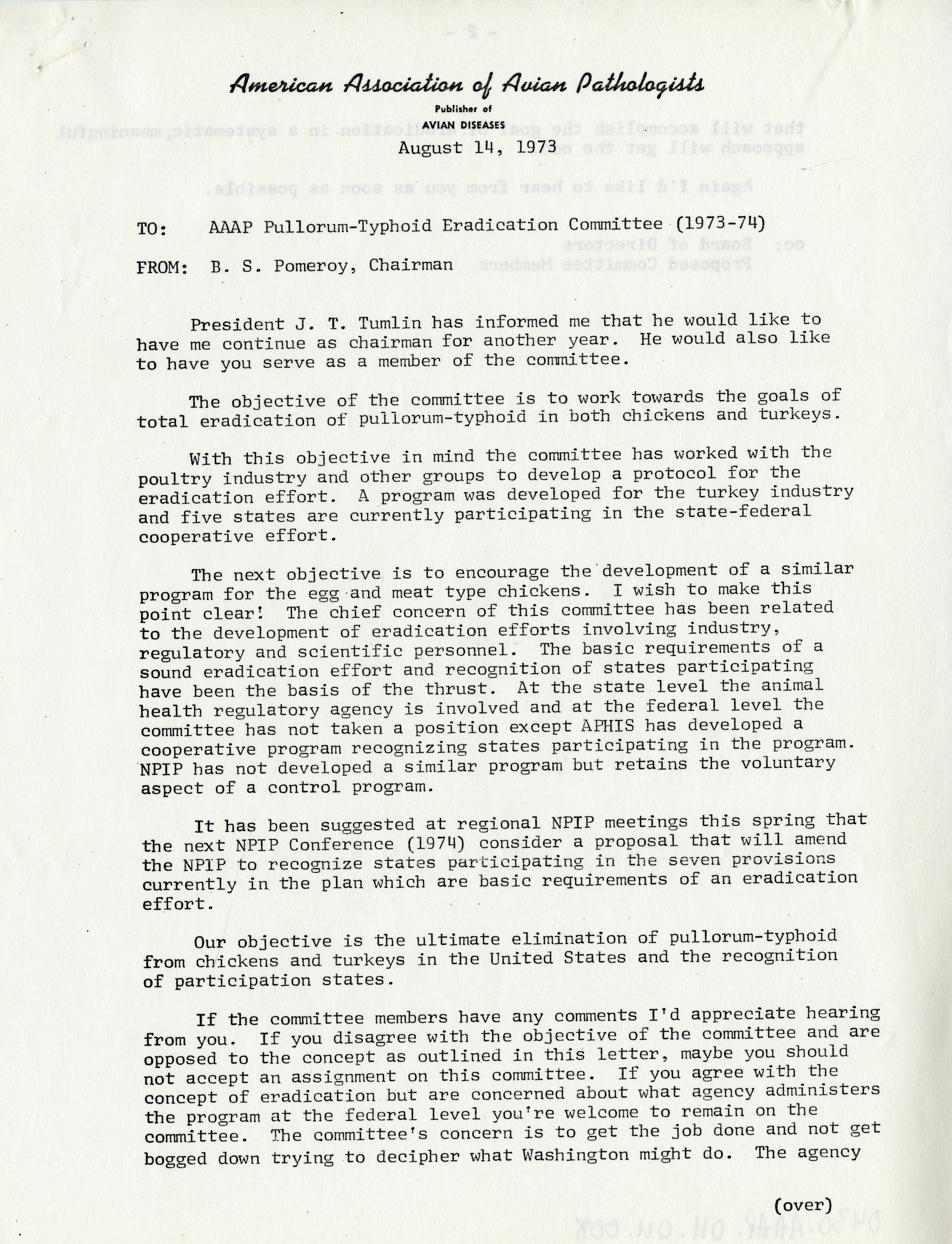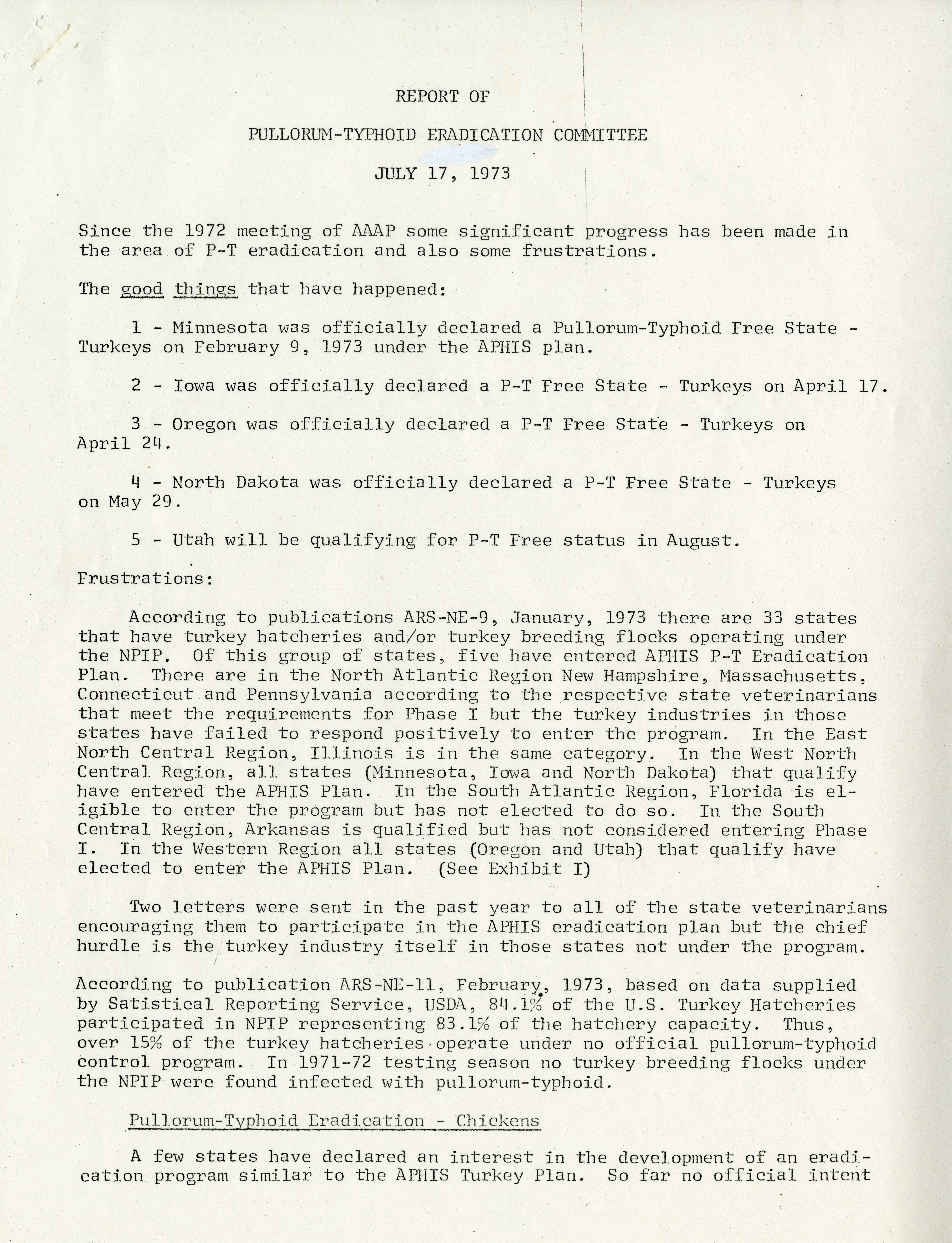 AAAP report of the pullorum-typhoid eradication committee, July 17, 1973 Item Info