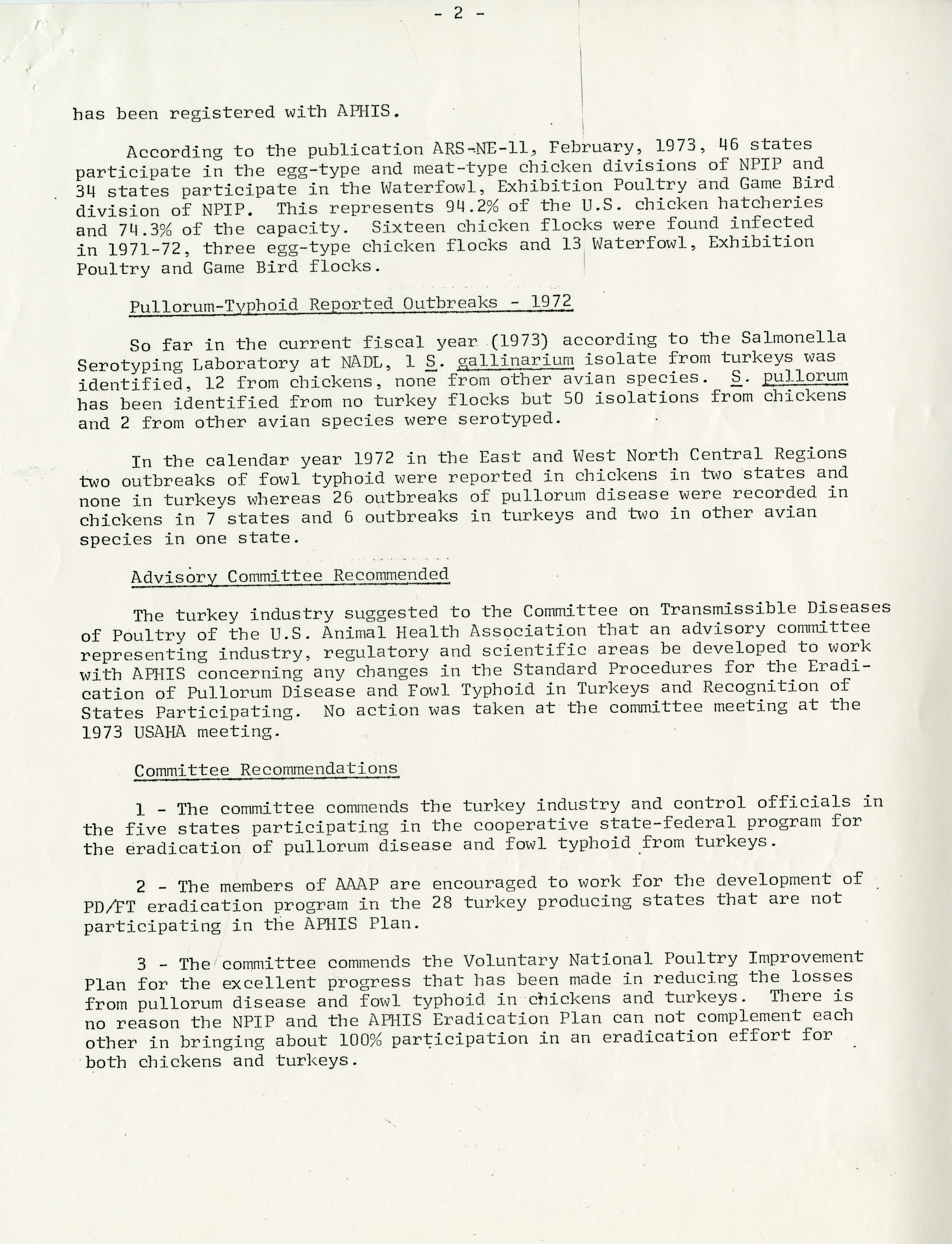 - AAAP report of the pullorum-typhoid eradication committee, July 17, 1973