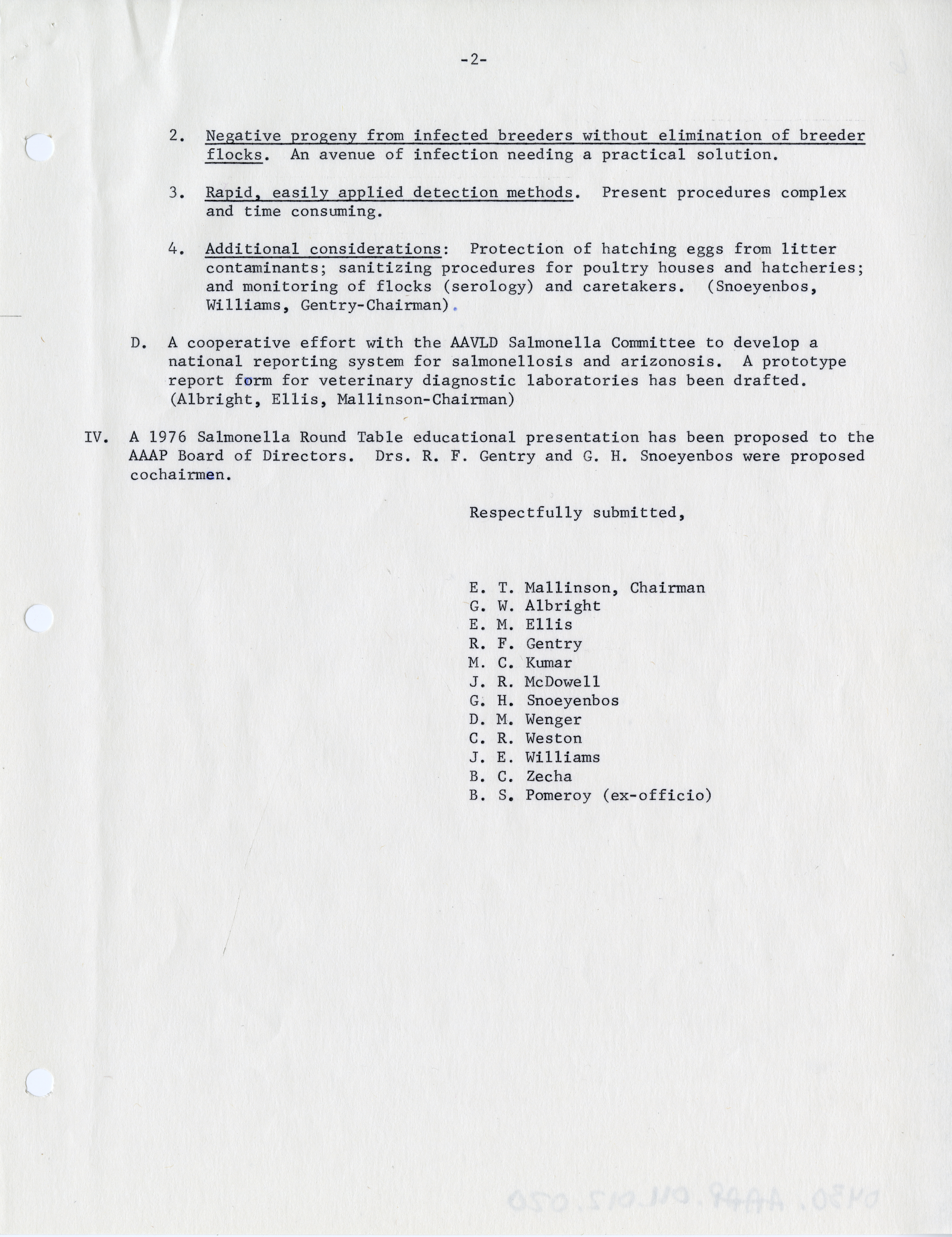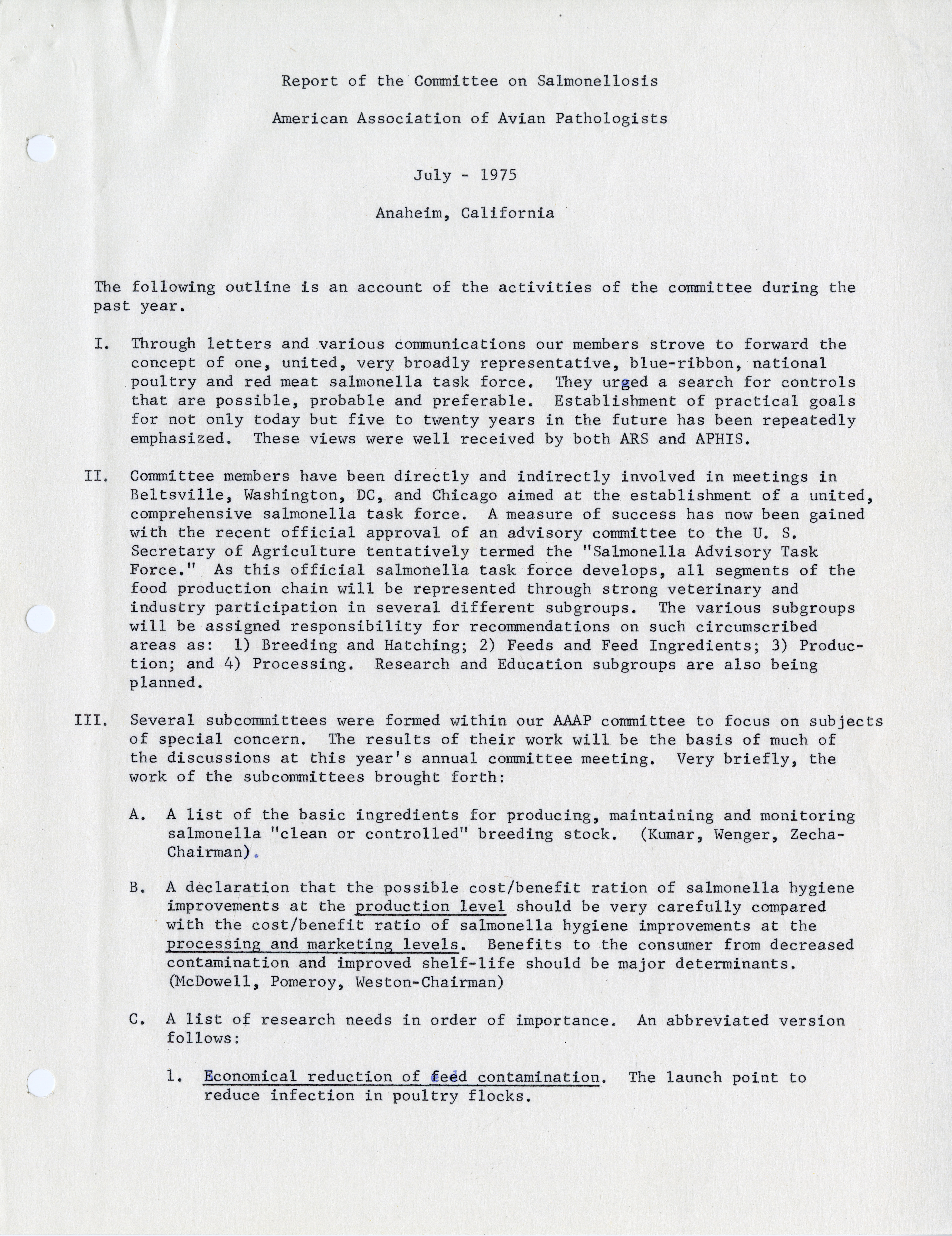 - "AAAP report of the salmonellosis committee, July 1975", American Association of Avian Pathologists Collection, Iowa State University Library Digital Collections