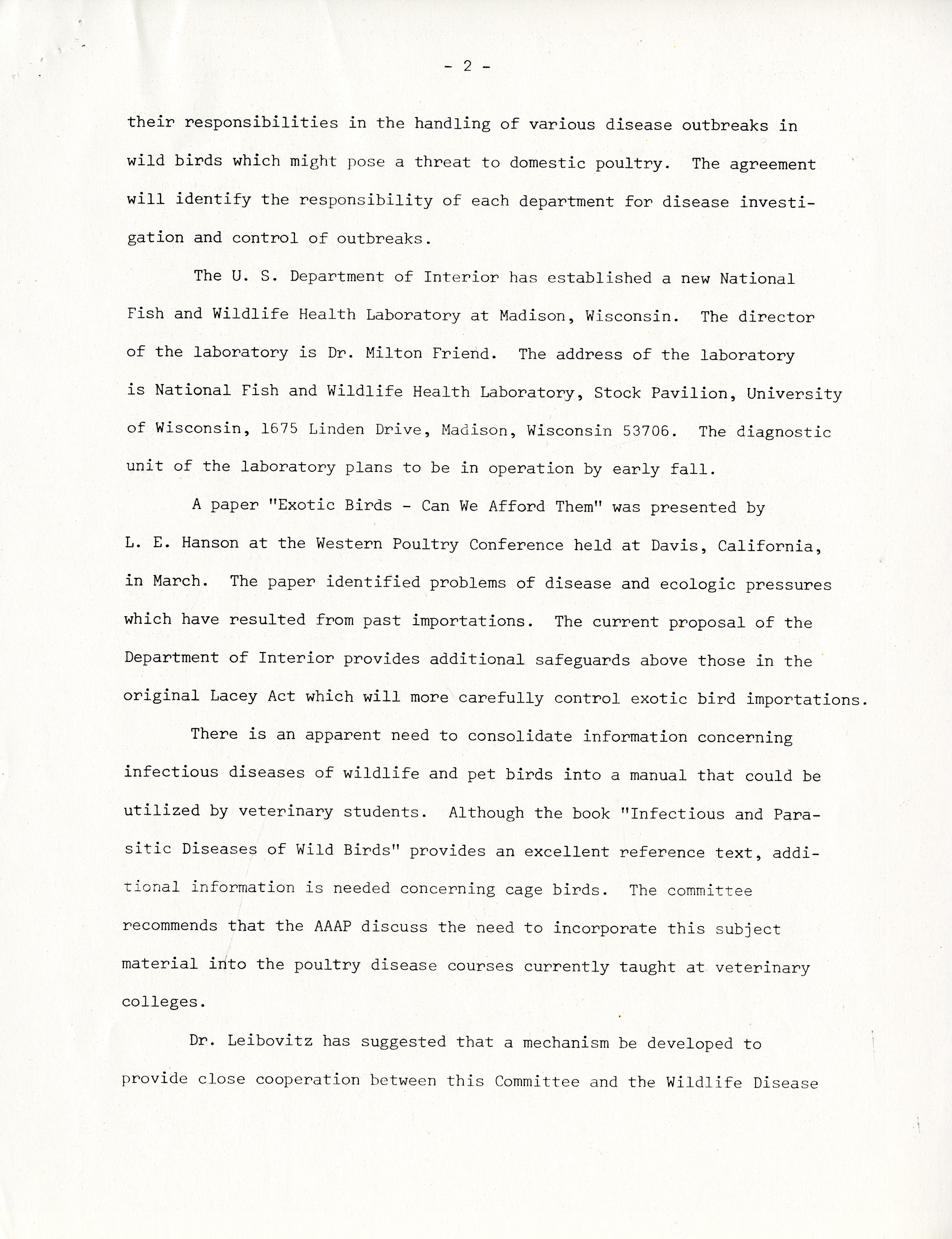 - "Annual report of the diseases of wild and pet birds committee, 1975", American Association of Avian Pathologists Collection, Iowa State University Library Digital Collections