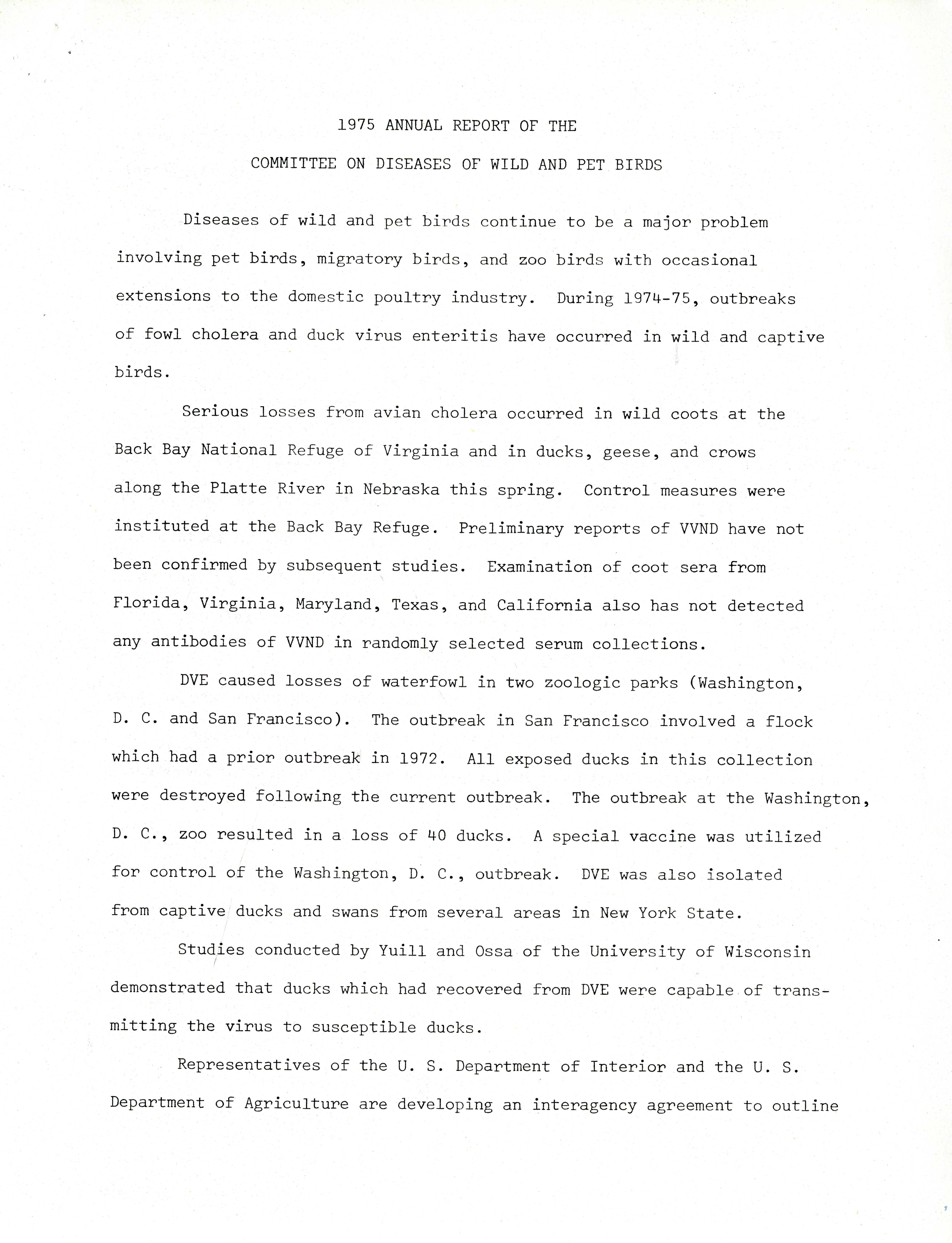 Annual report of the disease of wild and pet birds committee, 1975 Item Info