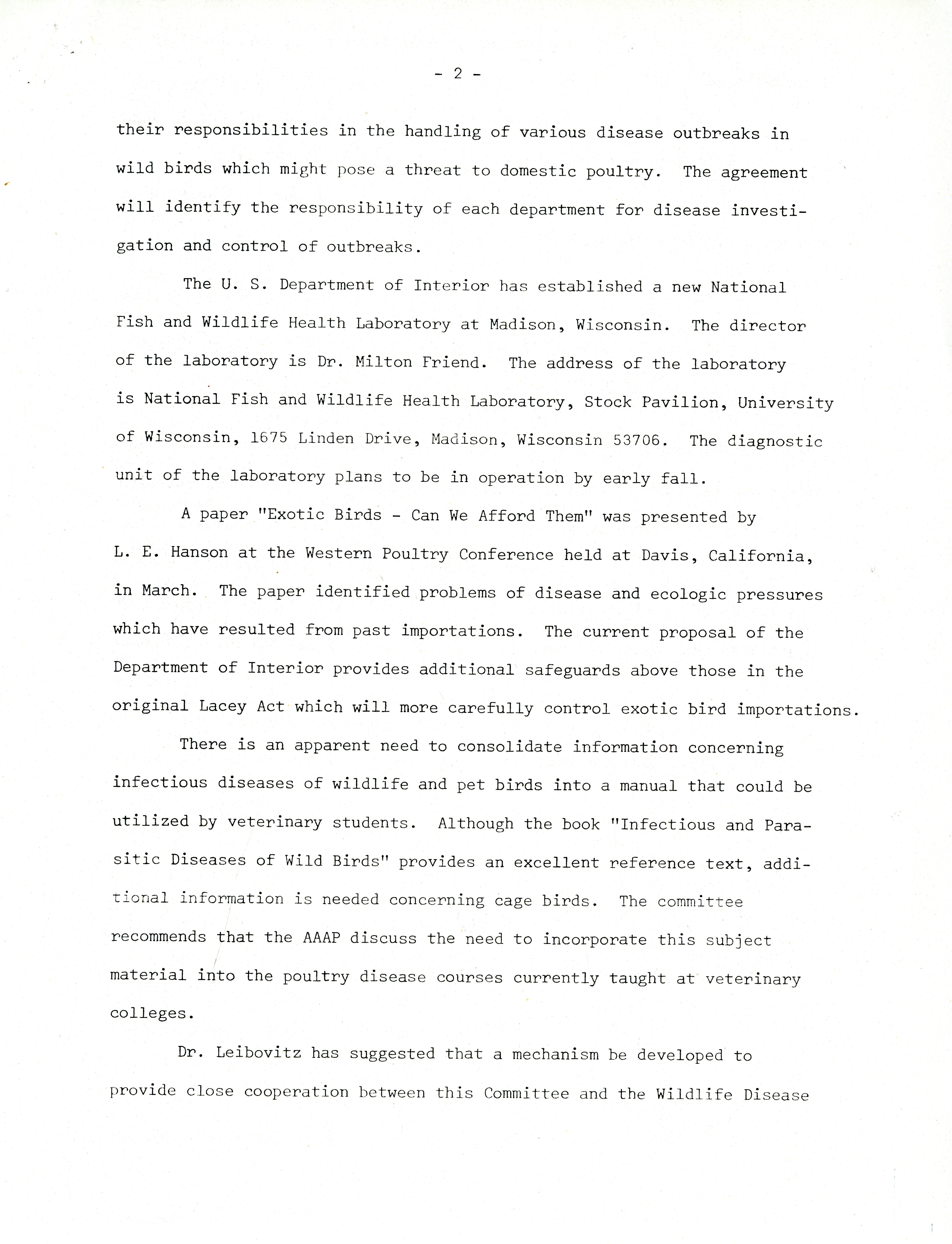 - "Annual report of the disease of wild and pet birds committee, 1975", American Association of Avian Pathologists Collection, Iowa State University Library Digital Collections