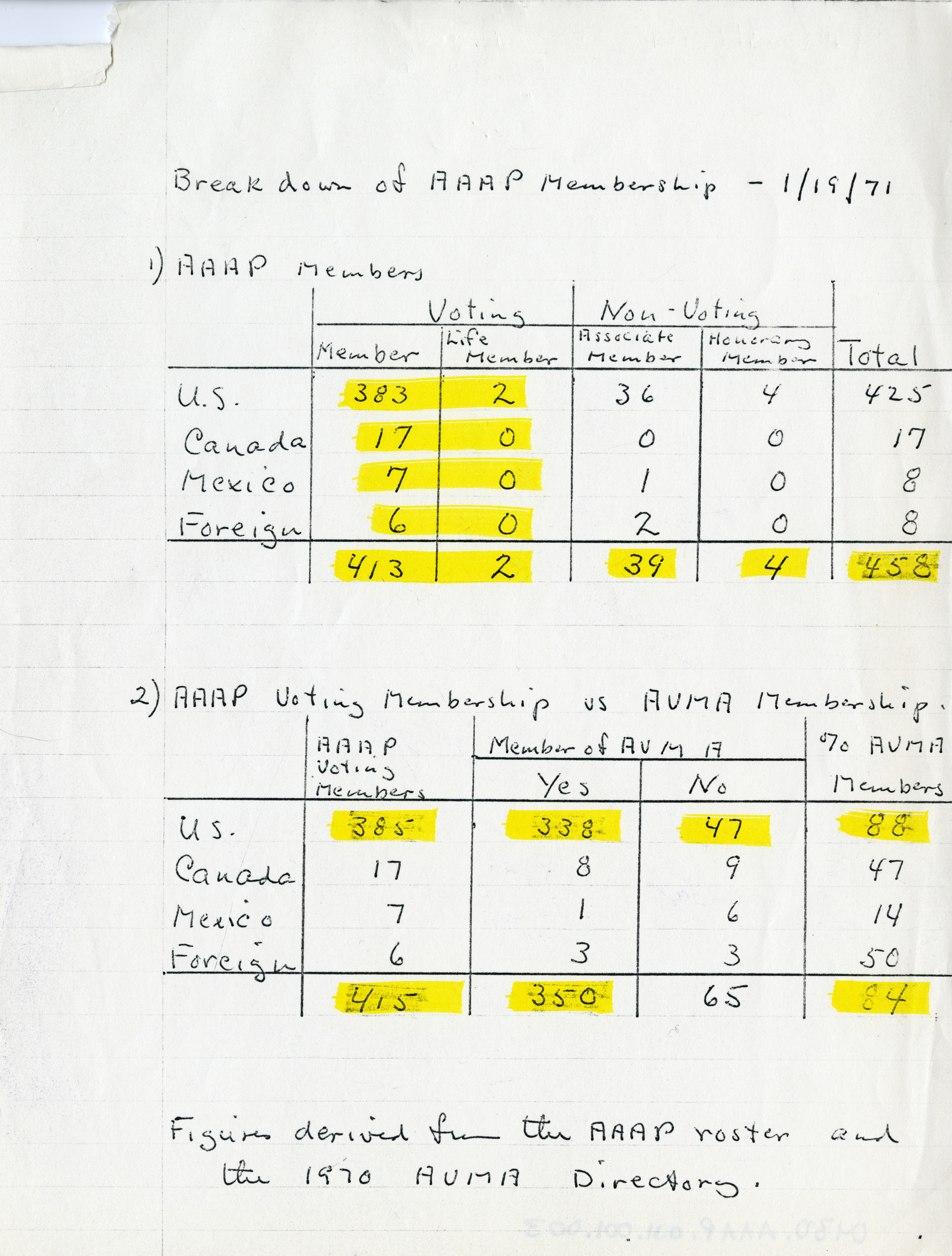 - "Breakdown of AAAP membership, January 19, 1971", American Association of Avian Pathologists Collection, Iowa State University Library Digital Collections