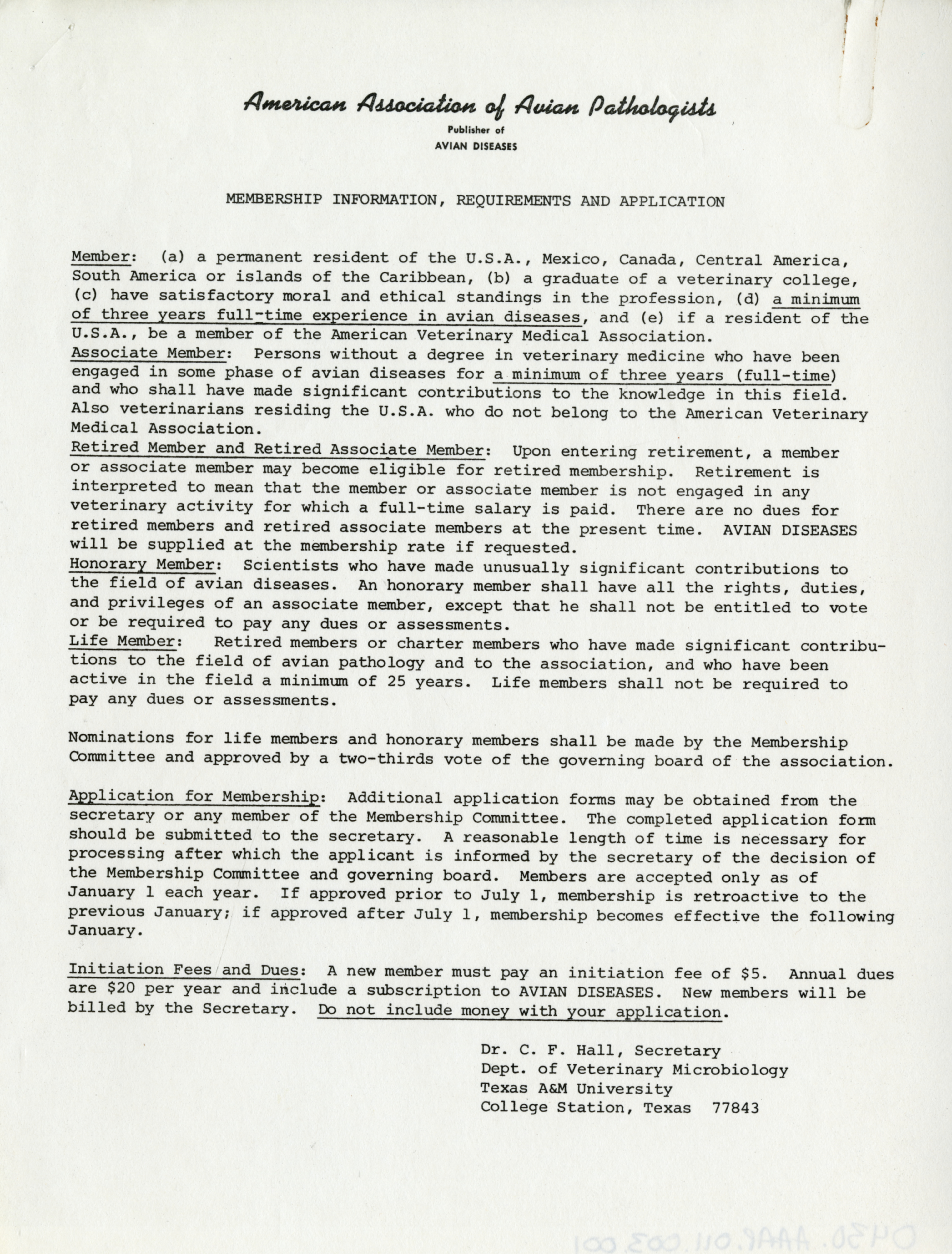 - "AAAP membership information, requirements and application", American Association of Avian Pathologists Collection, Iowa State University Library Digital Collections