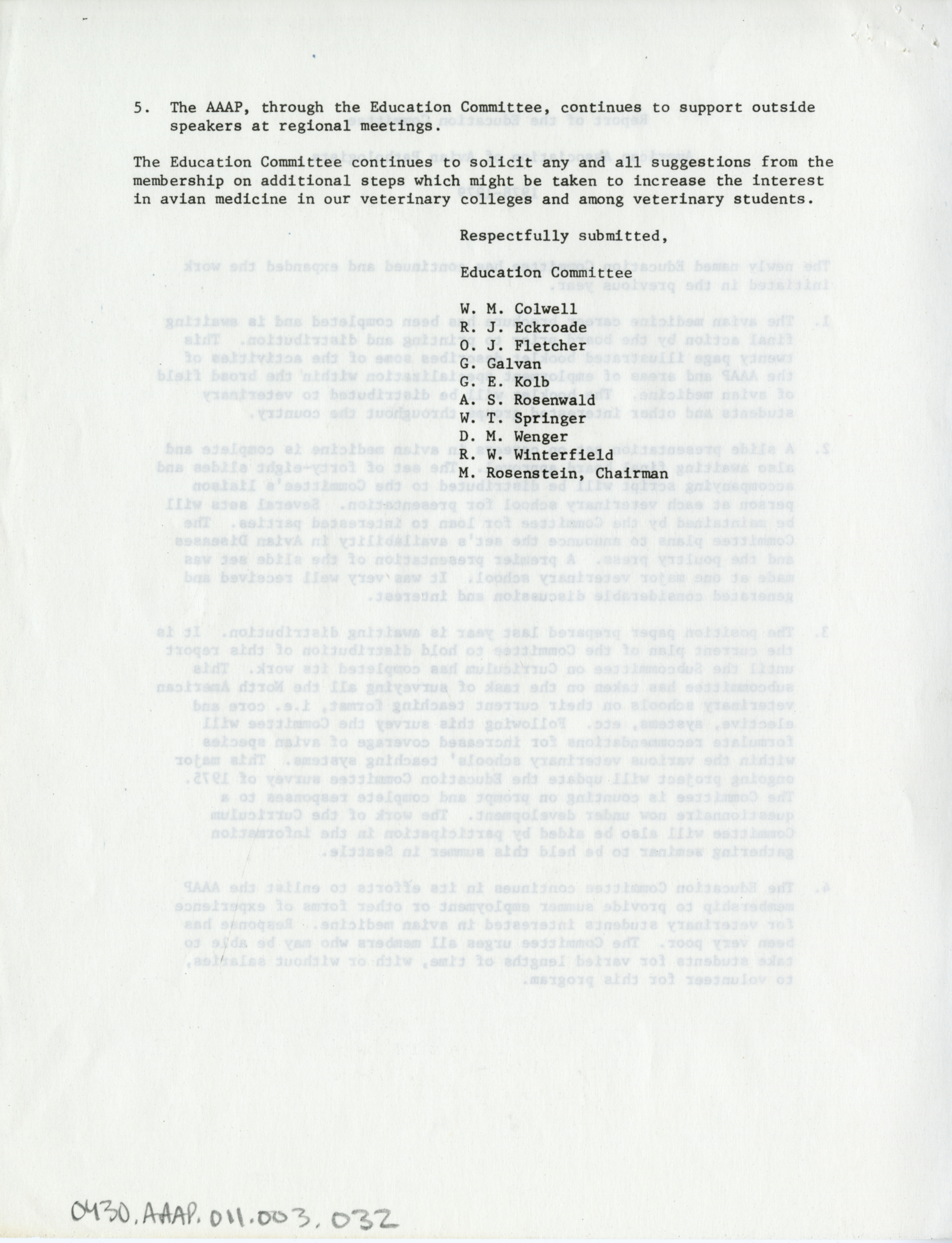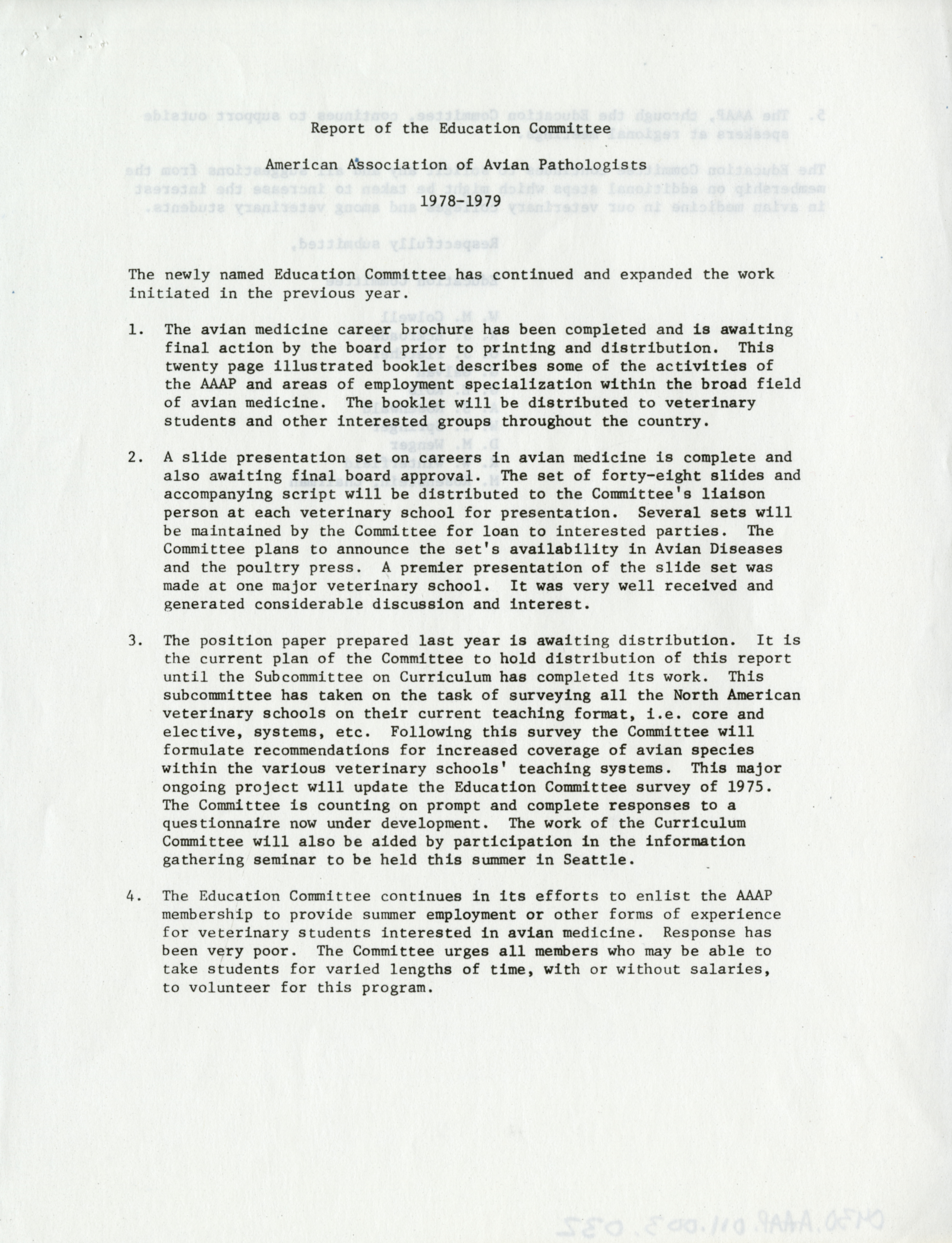 - "AAAP report of the education committee, 1978-1979", American Association of Avian Pathologists Collection, Iowa State University Library Digital Collections
