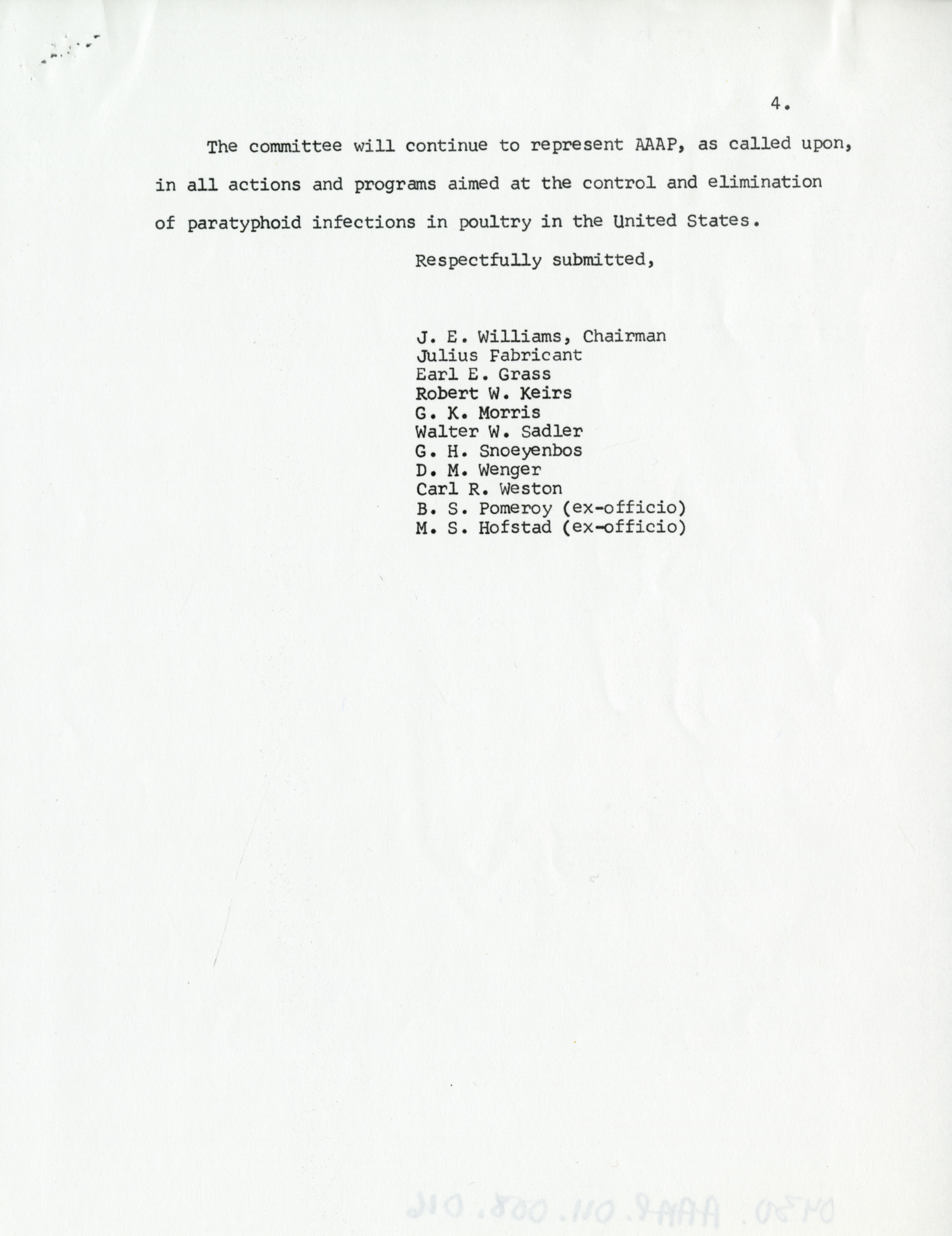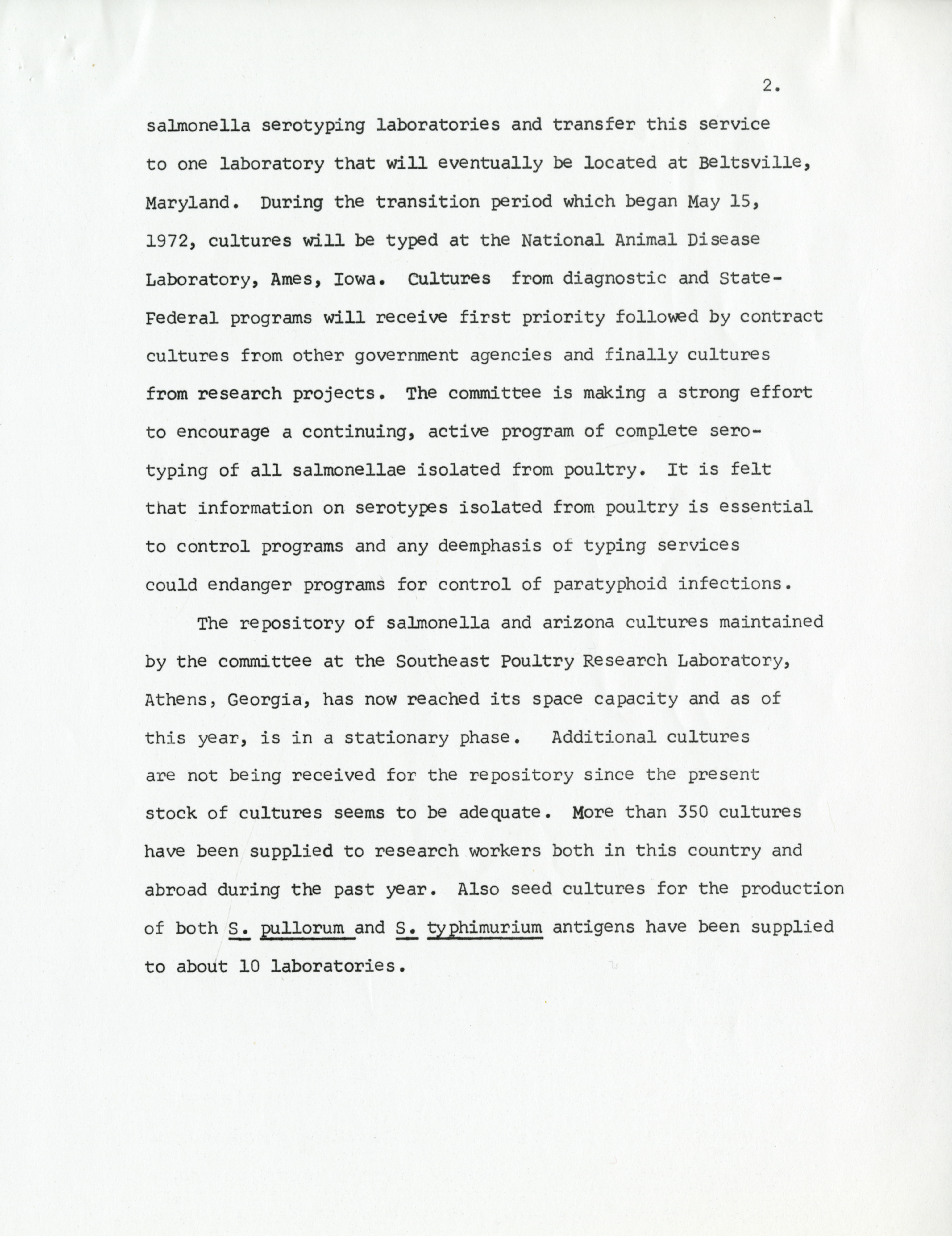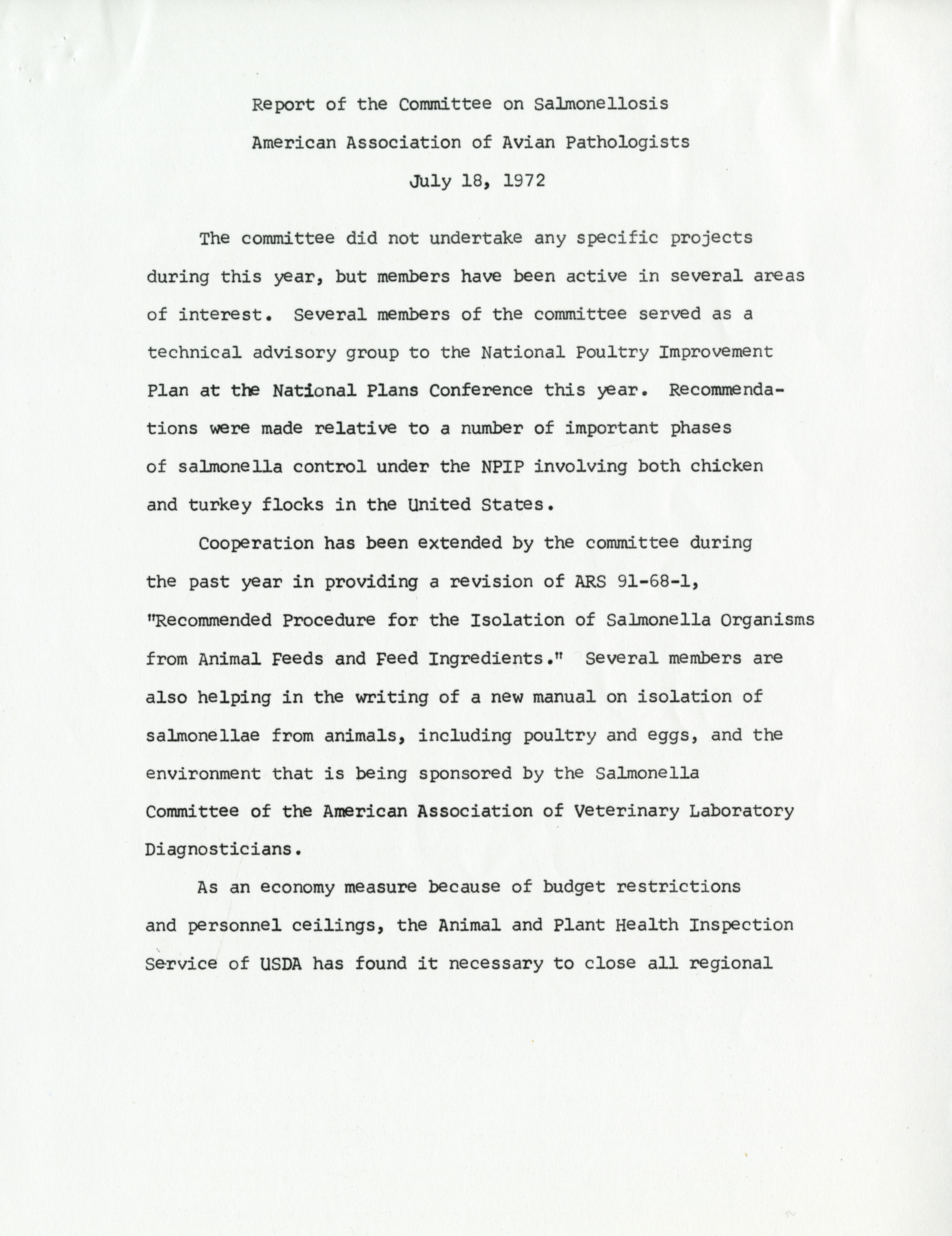 - "AAAP report of the salmonellosis committee, July 18, 1972", American Association of Avian Pathologists Collection, Iowa State University Library Digital Collections