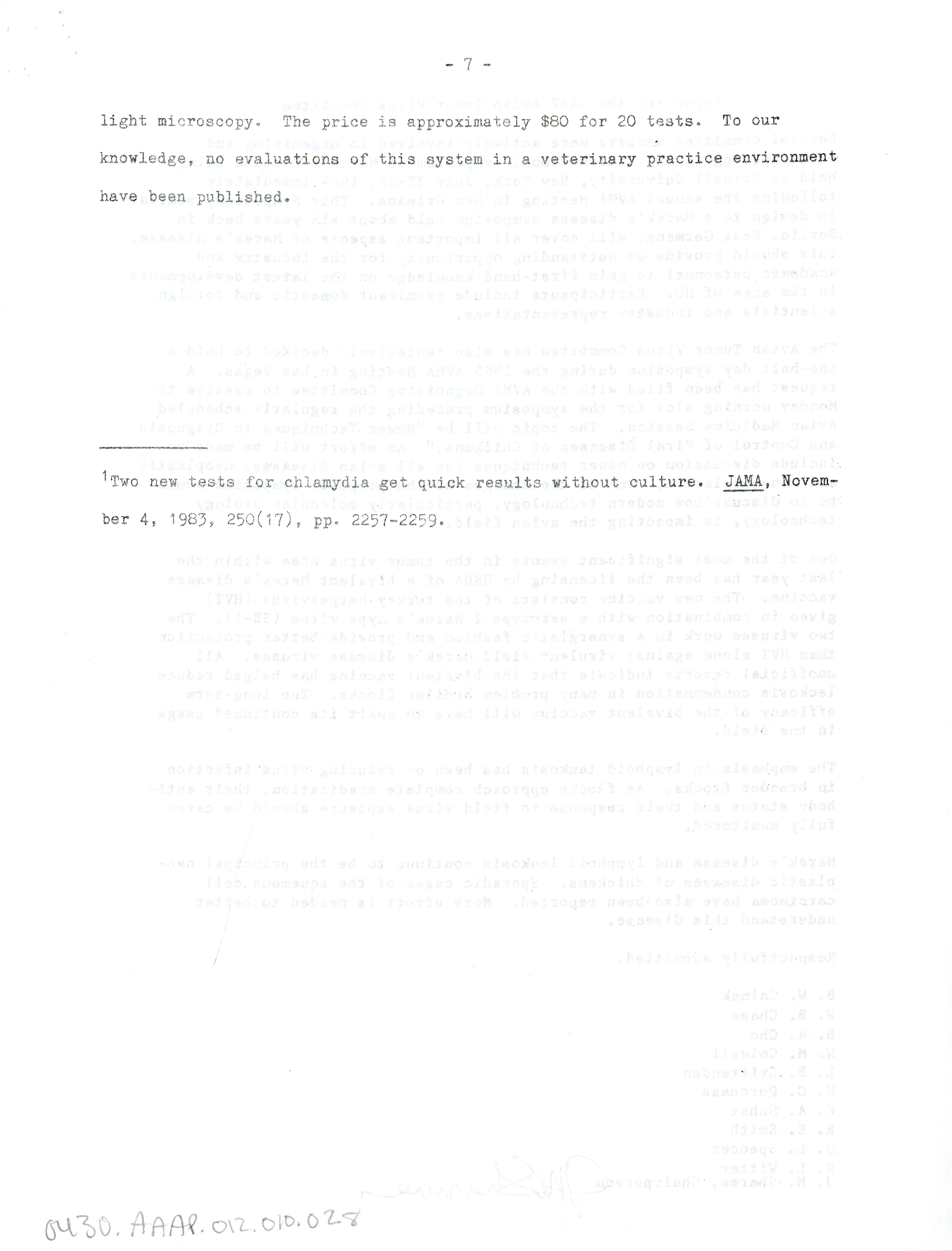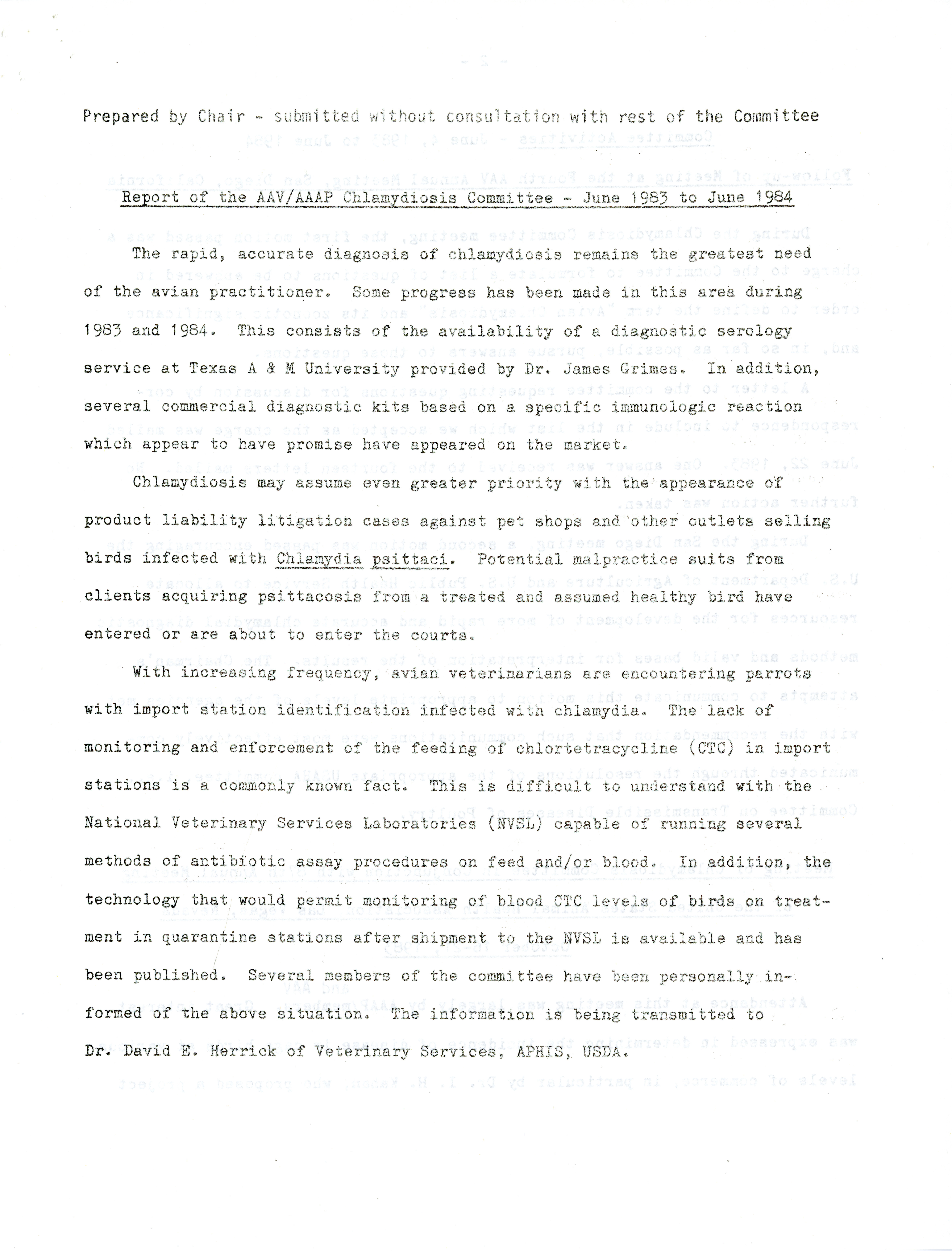 AAAP report of the AAV/AAAP chlamydiosis committee, June 1983 - June 1984 Item Info