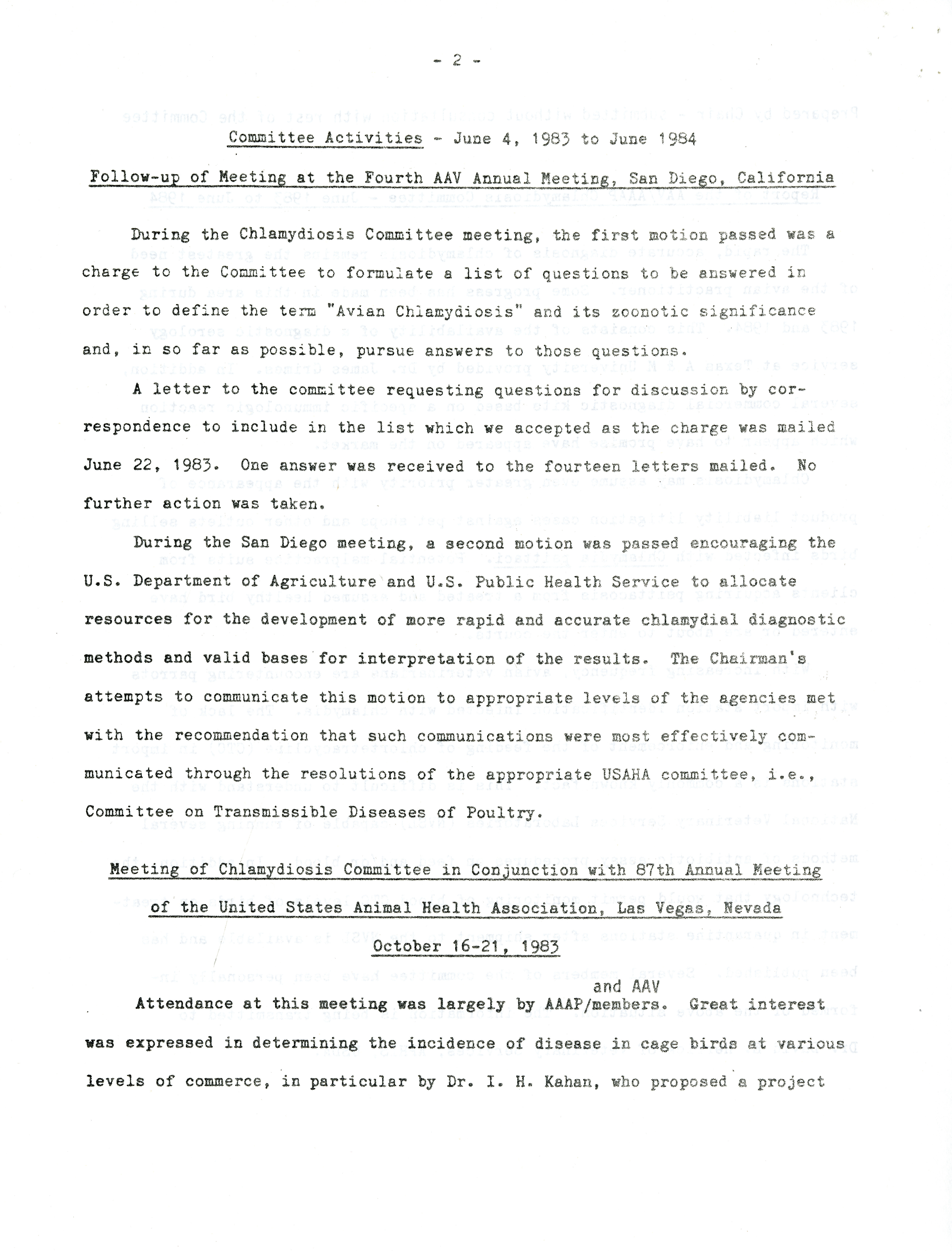 - AAAP report of the AAV/AAAP chlamydiosis committee, June 1983 - June 1984