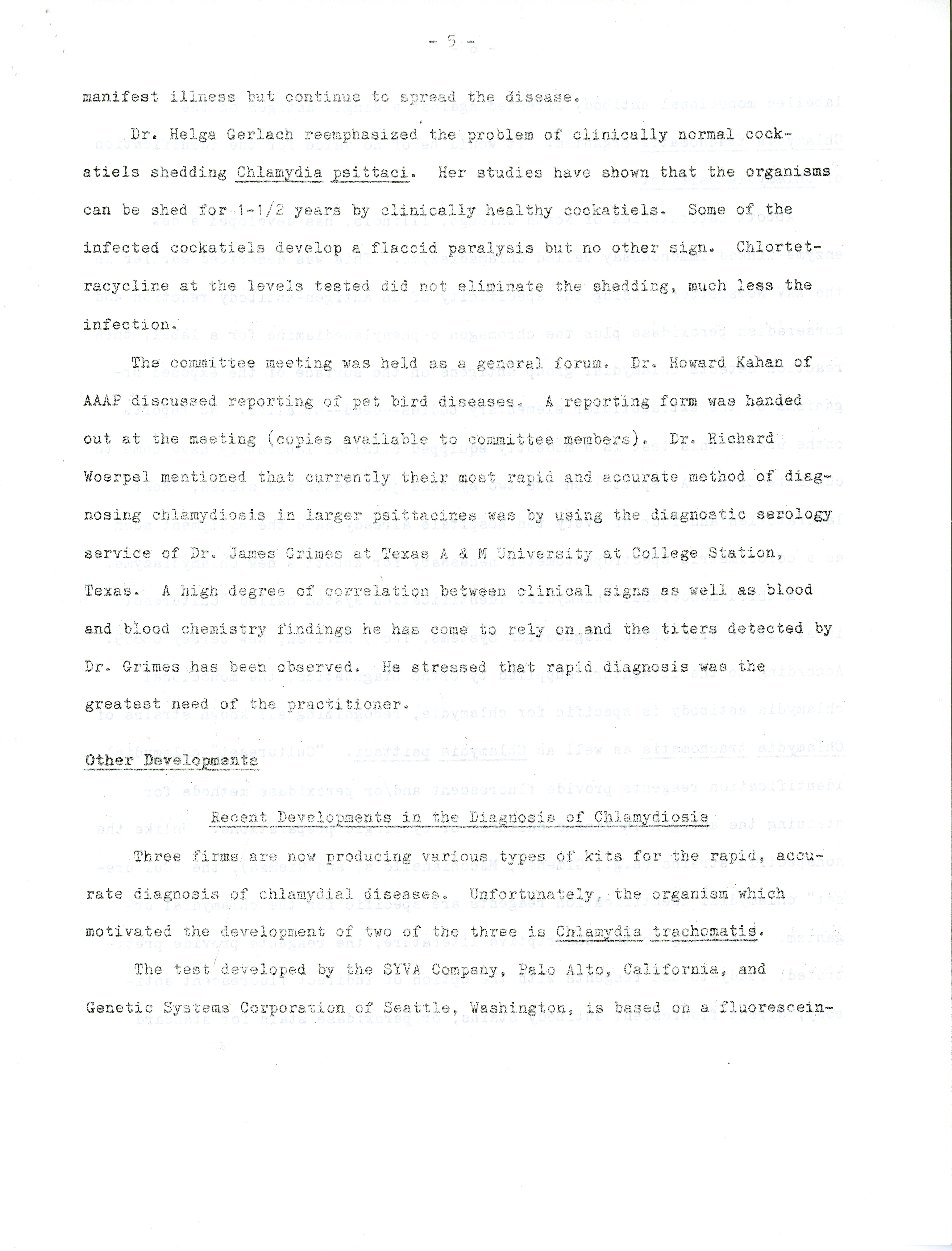 - "AAAP report of the AAV/AAAP chlamydiosis committee, June 1983 - June 1984", American Association of Avian Pathologists Collection, Iowa State University Library Digital Collections
